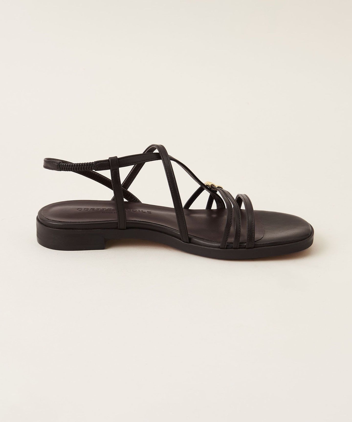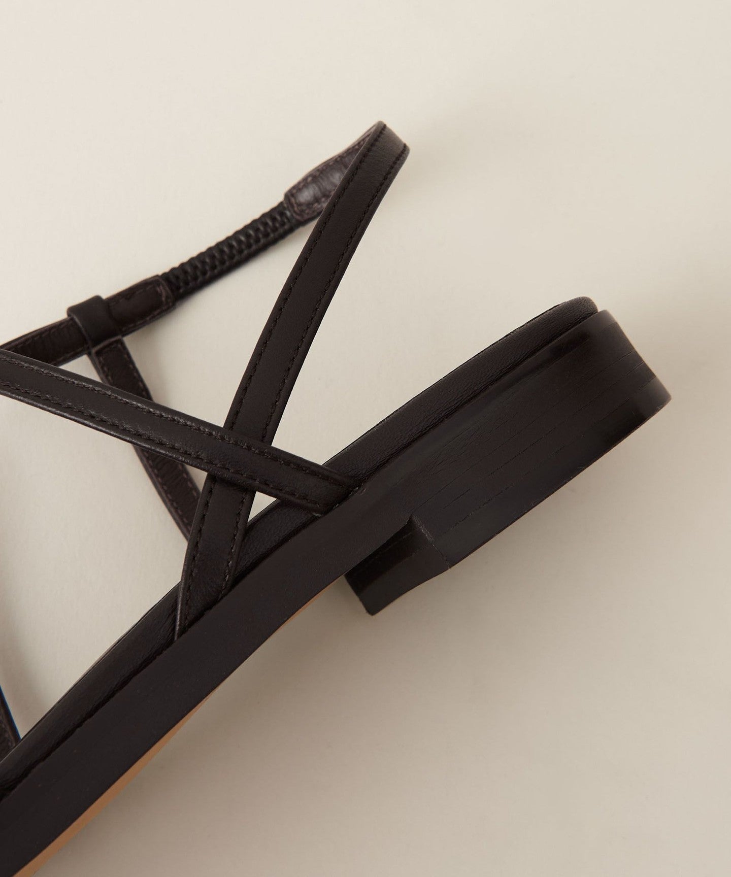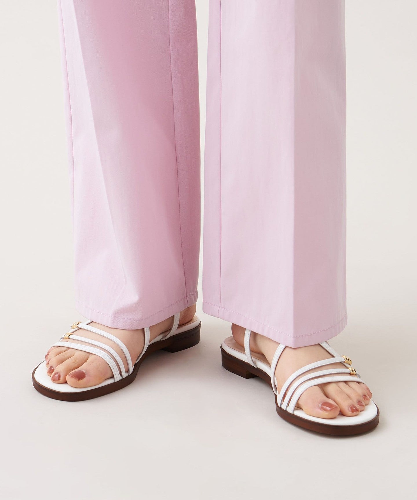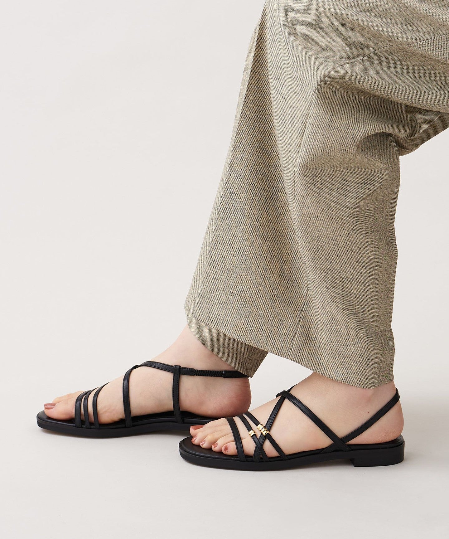 These sandals feature a thin leather cord adorned with small, rounded metal beads, adding a subtle, elegant sheen.