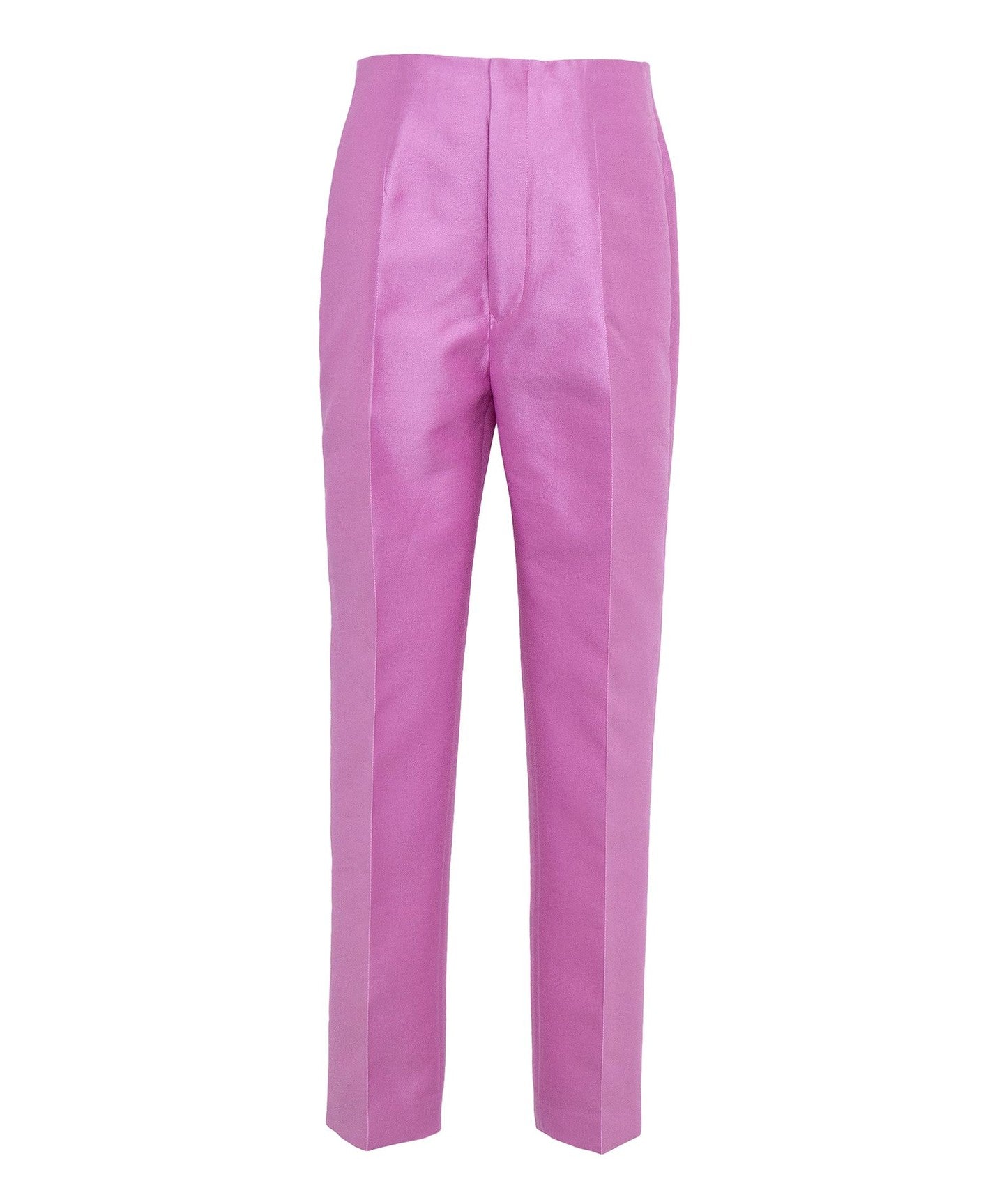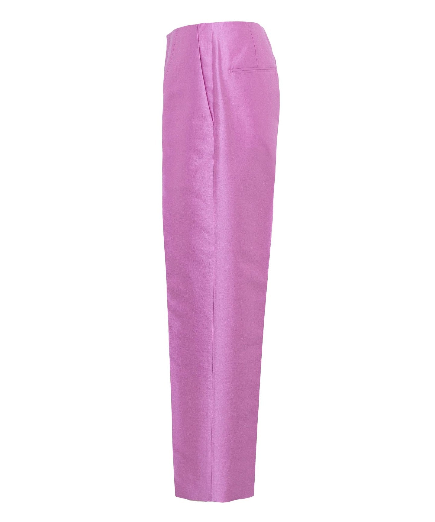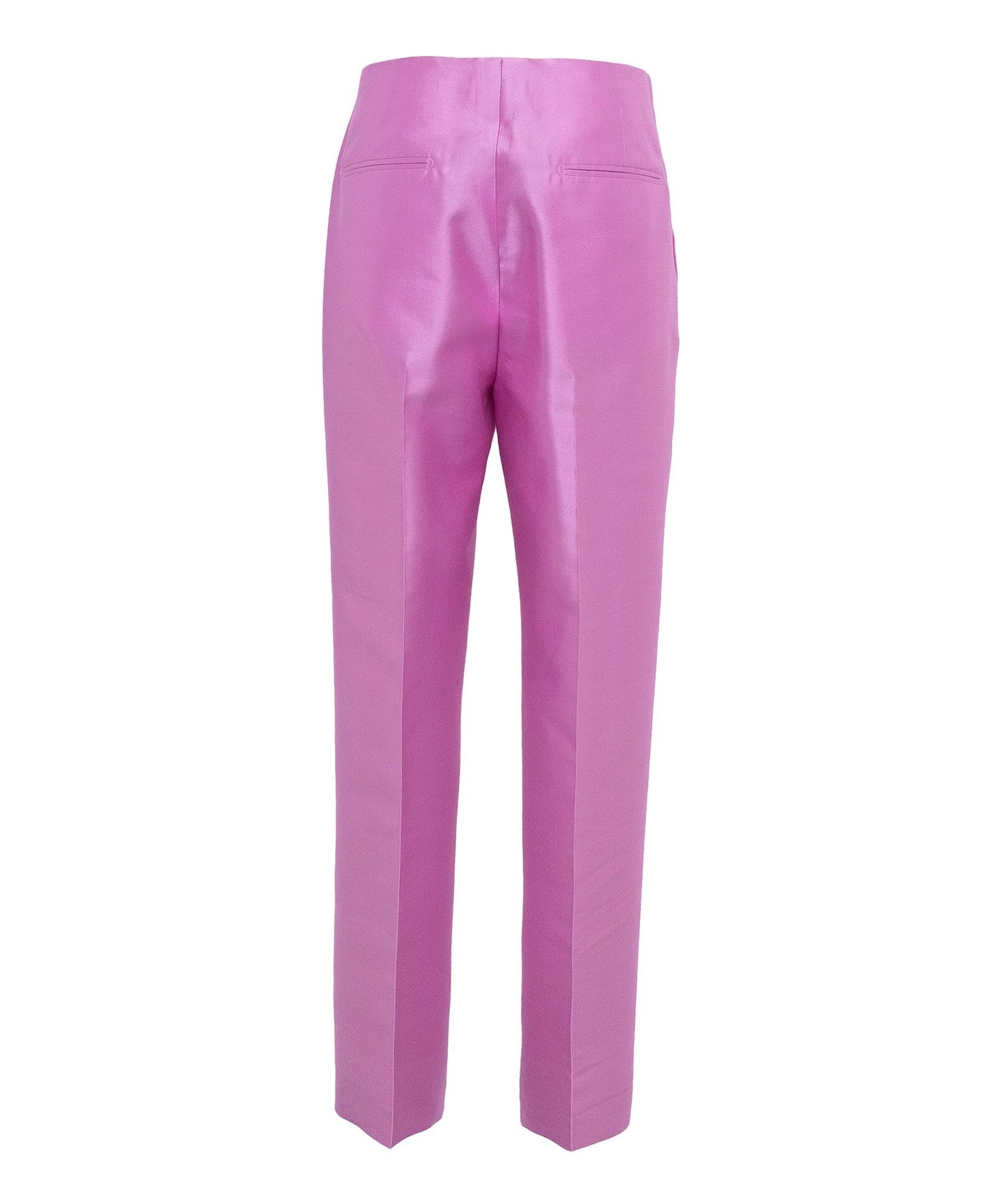 Tapered pants with a glossy texture and vibrant fuchsia pink coloring. PANTS .