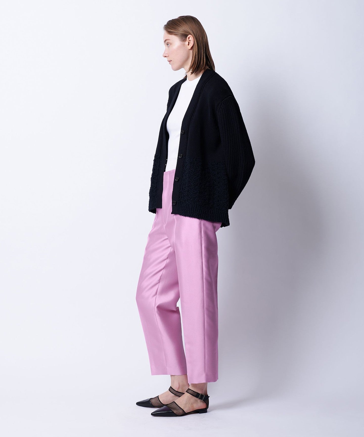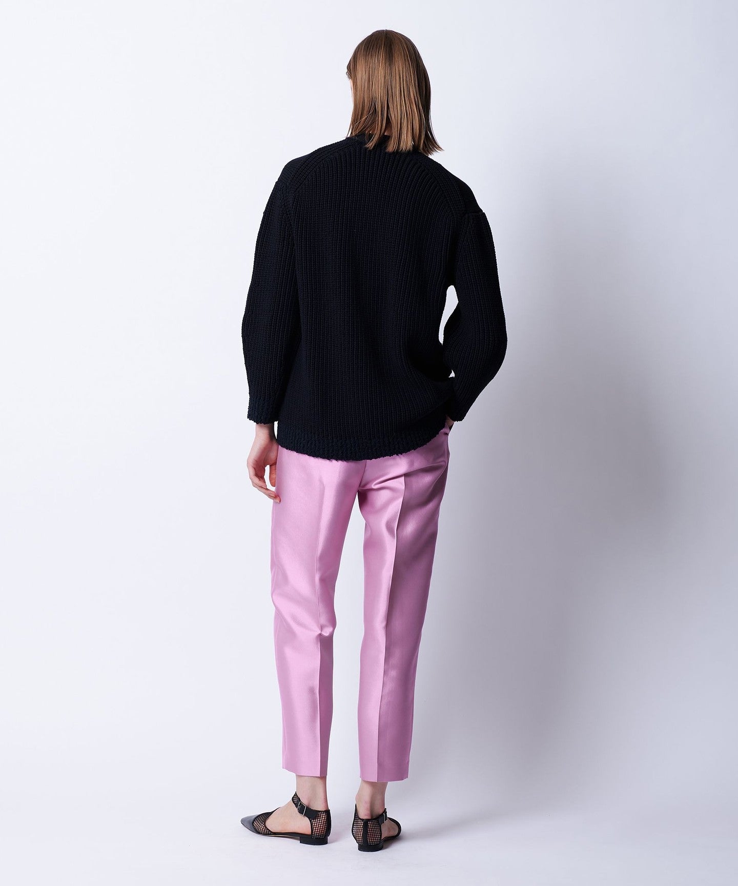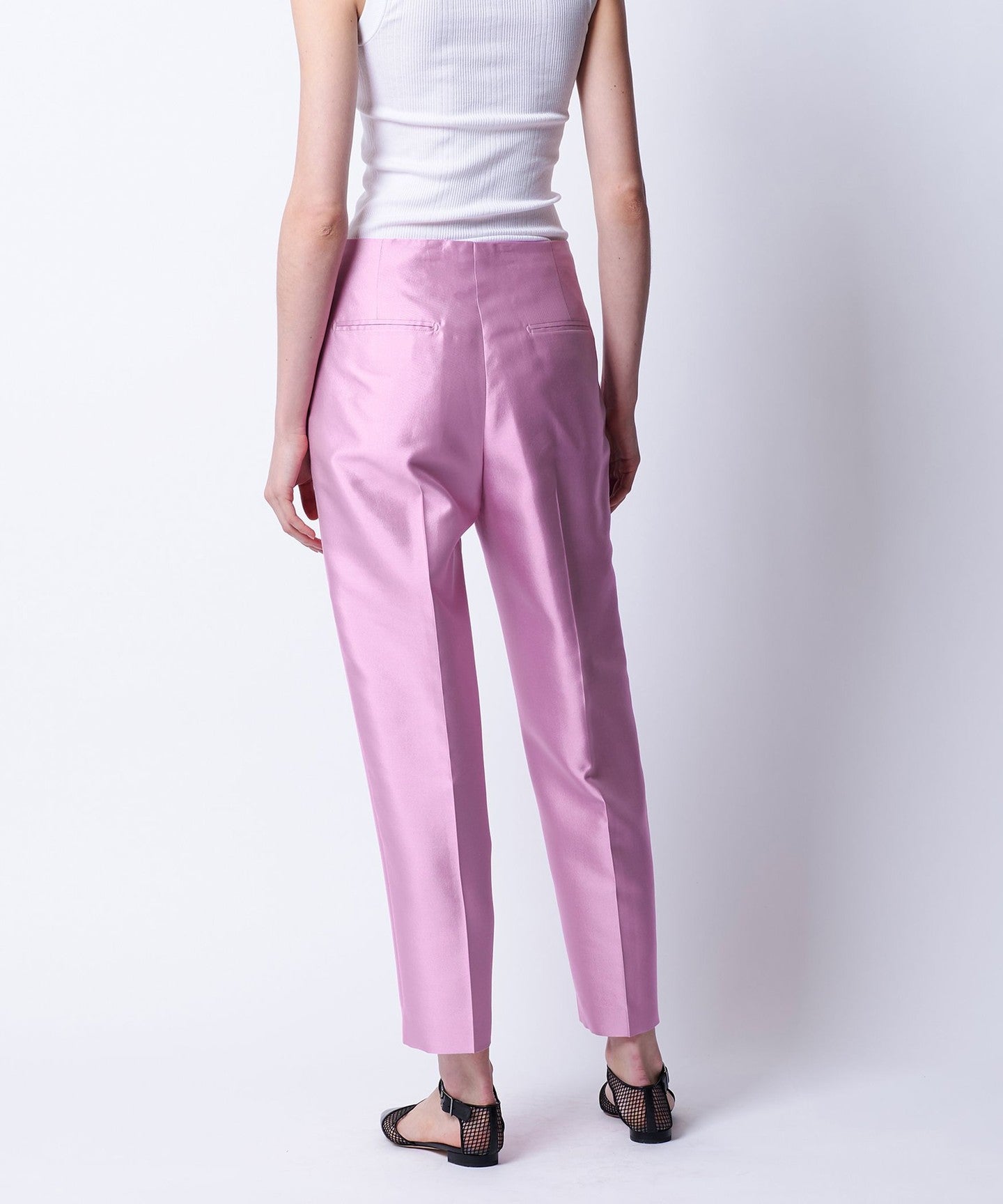 Tapered pants with a glossy texture and vibrant fuchsia pink coloring. PANTS .
