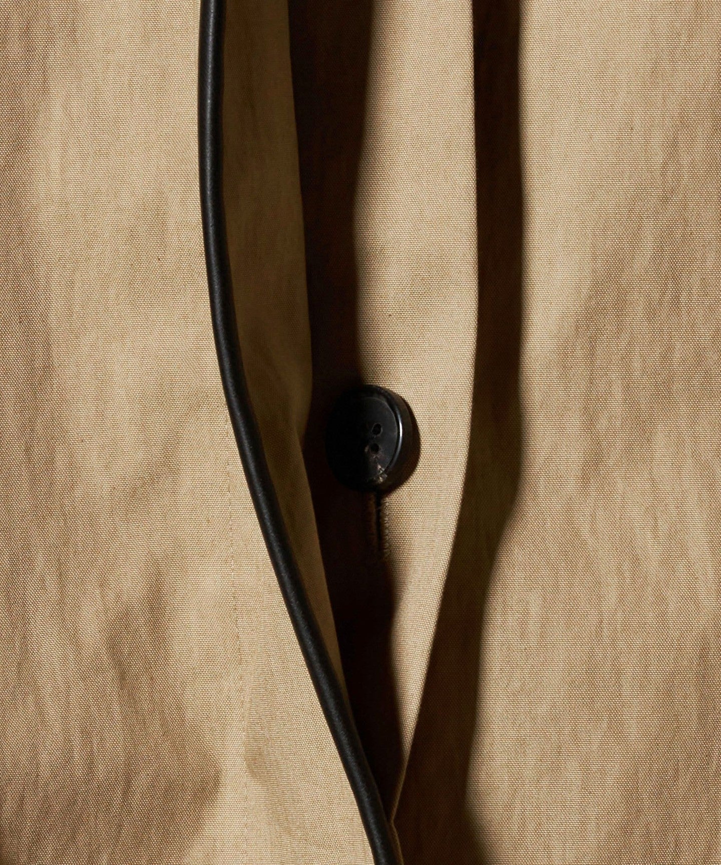 It features a tent line that widens towards the hem, making it a voluminous yet lightweight piece to wear.