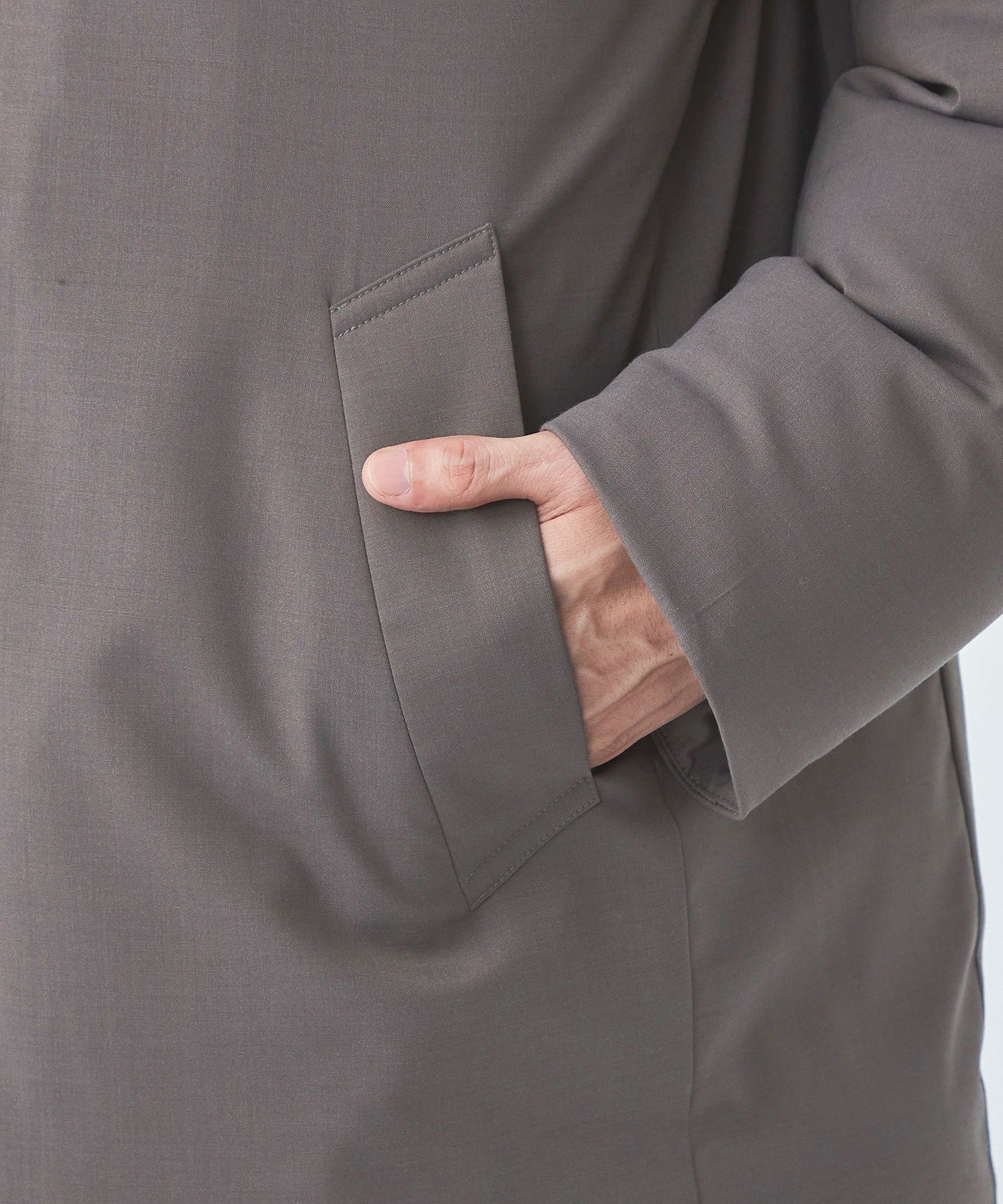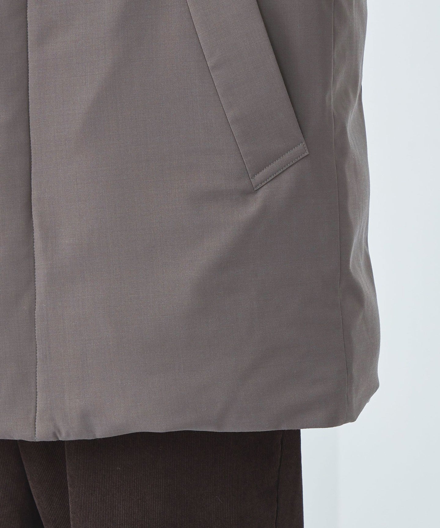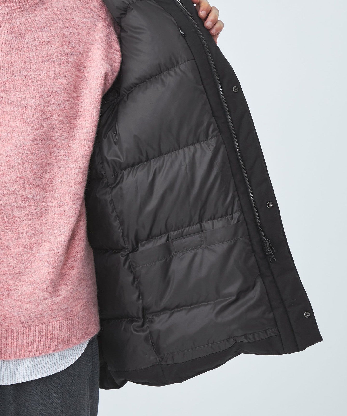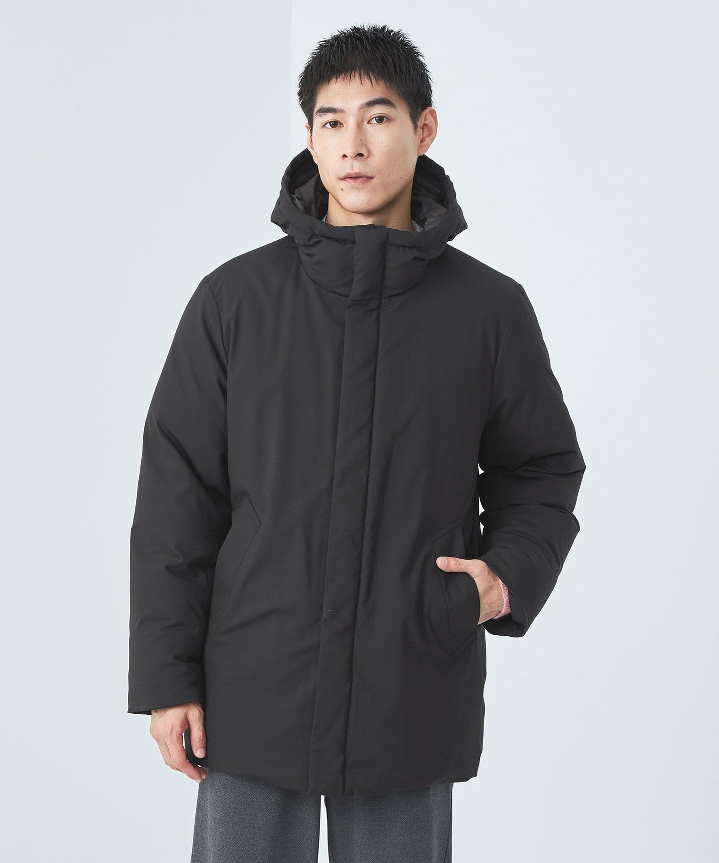 Although it is a hooded coat, the clean surface made from a blend of fur creates a relaxed, sophisticated style.