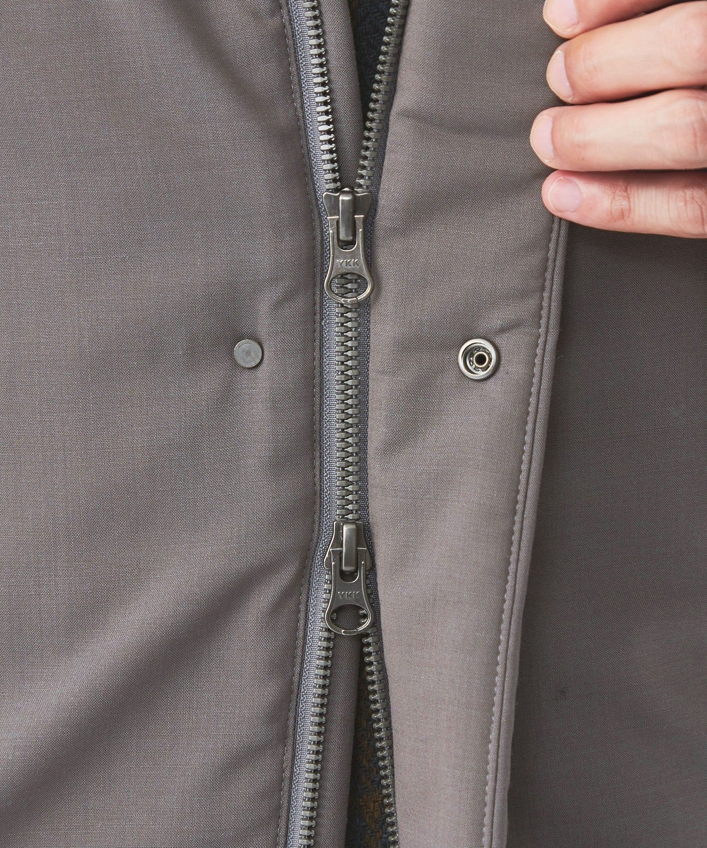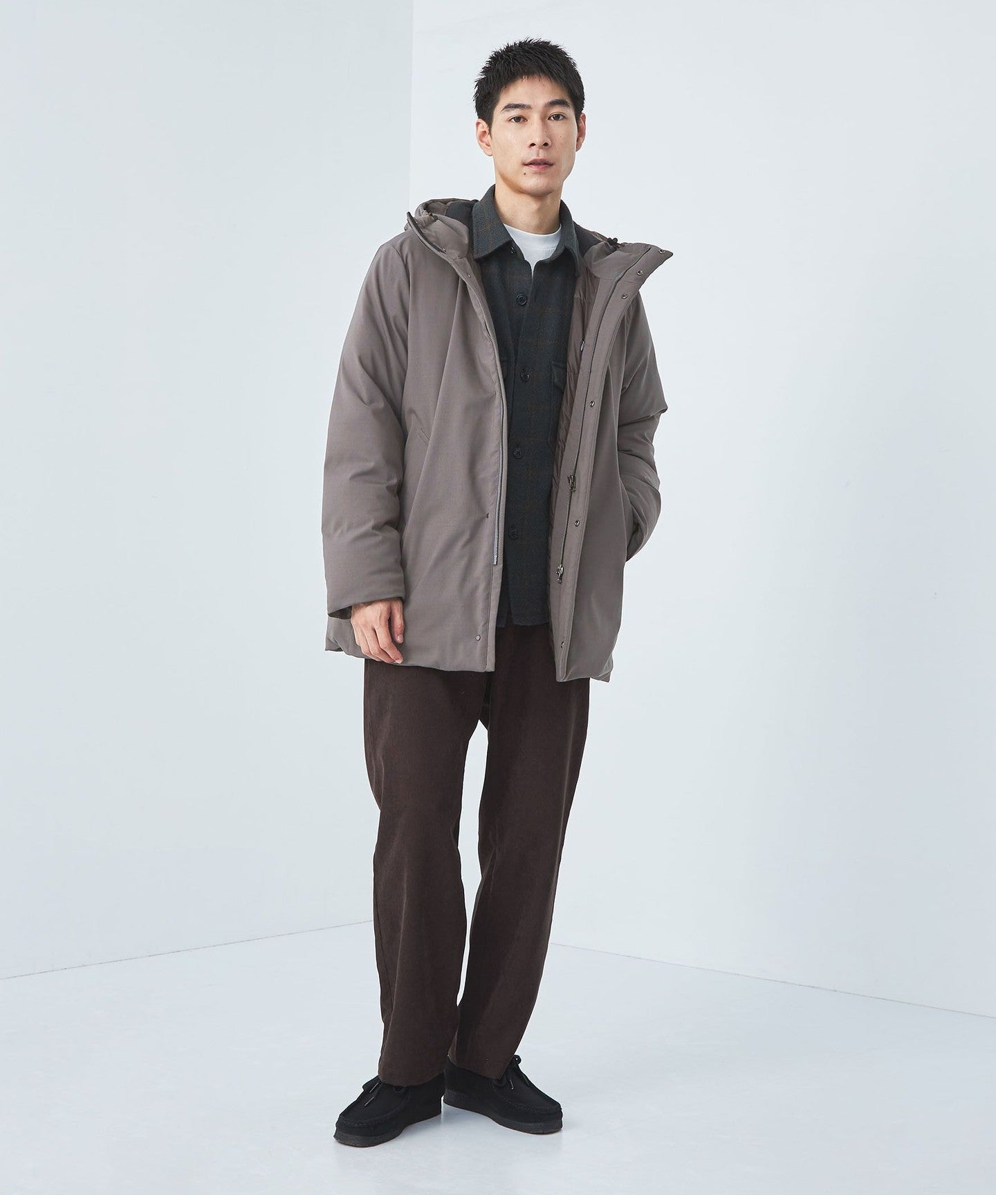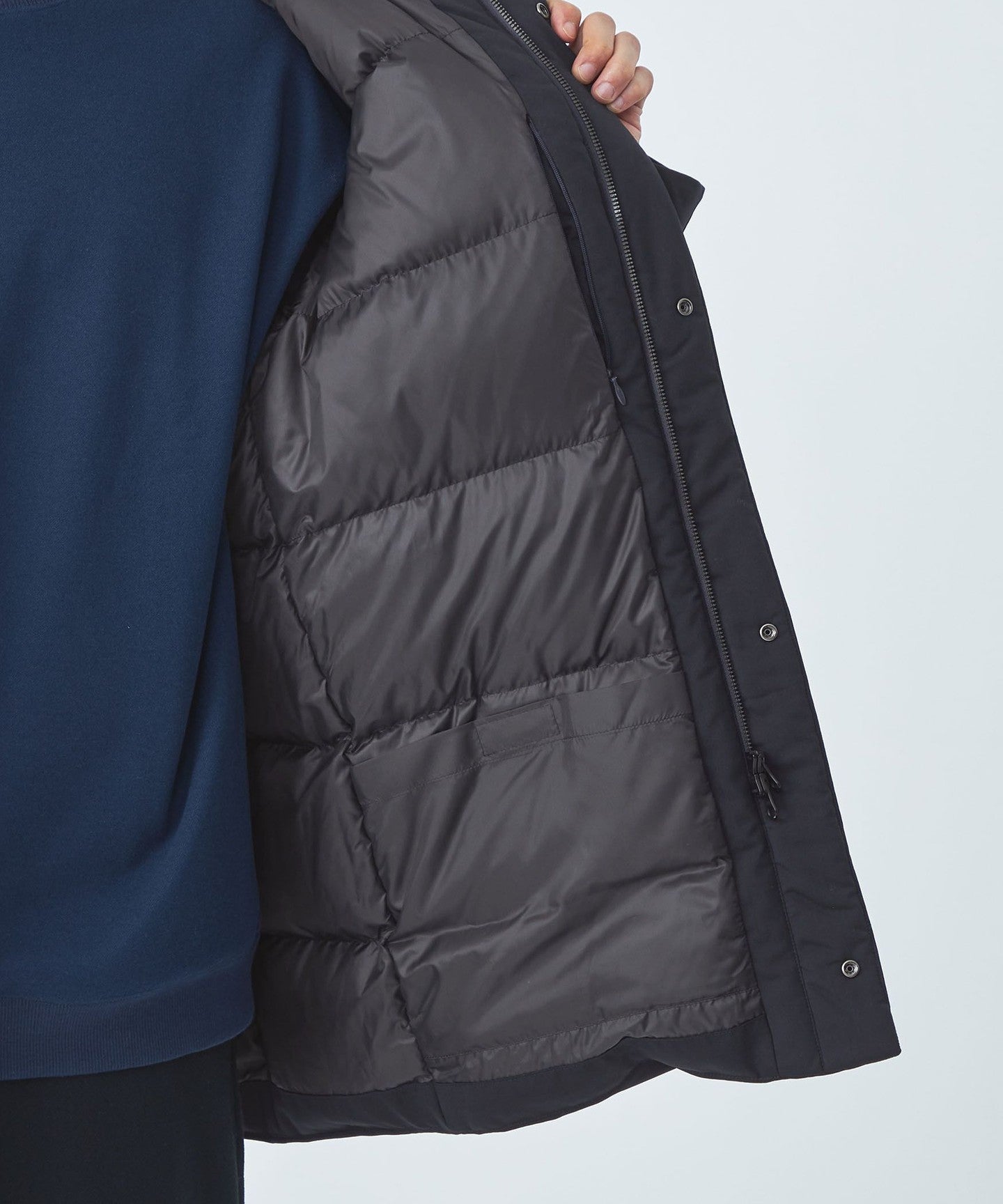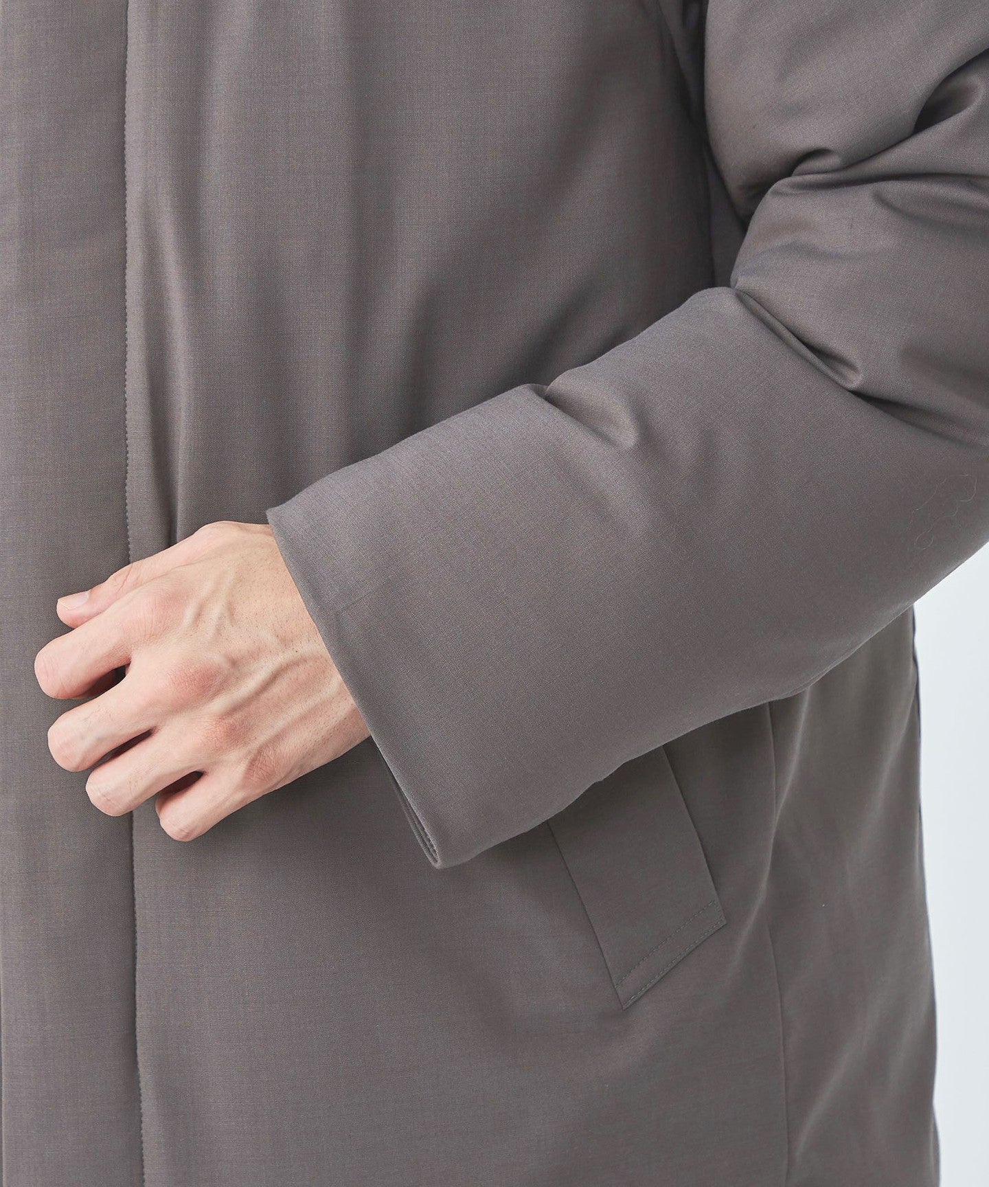 Although it is a hooded coat, the clean surface made from a blend of fur creates a relaxed, sophisticated style.