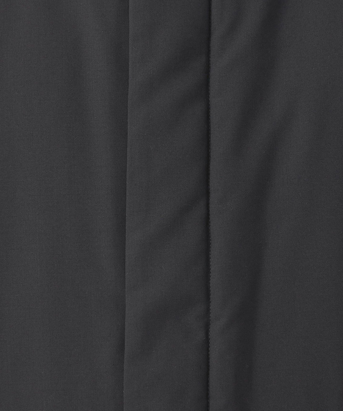 It is mid-length, covering the length of the jacket, and has a clean, minimalist design.