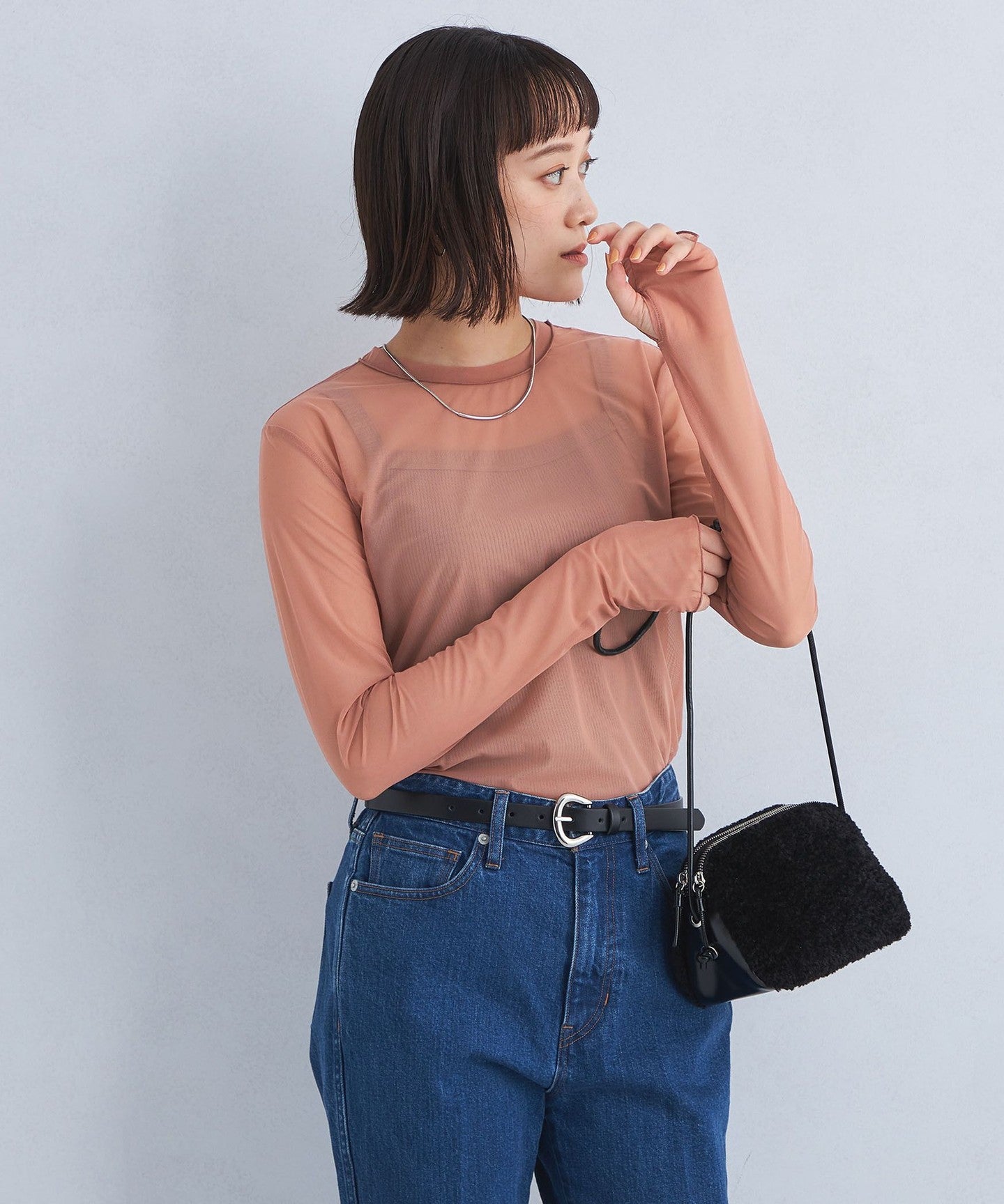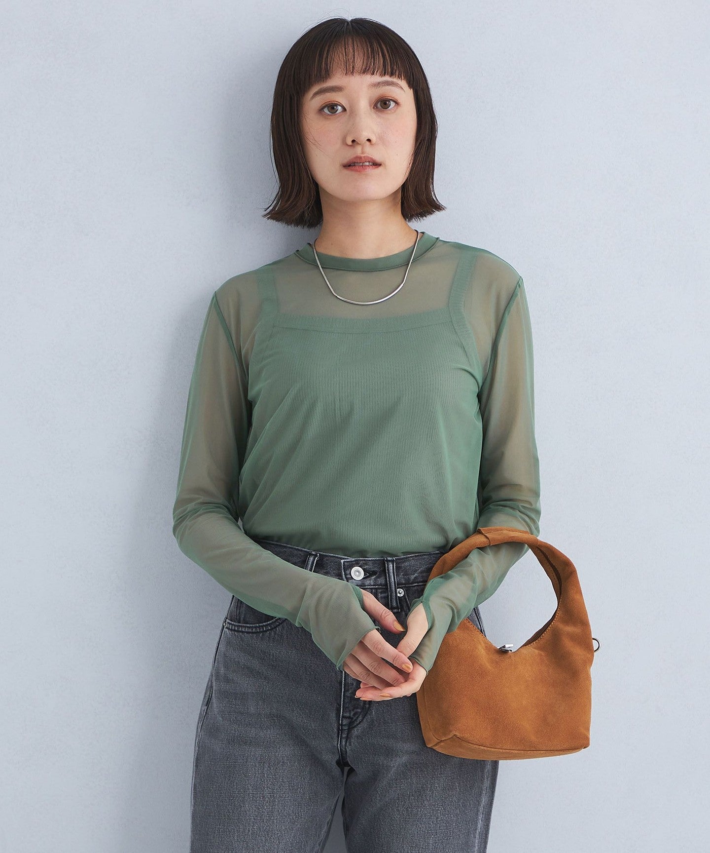 Made of fine mesh material, this piece gives an elegant impression without being too casual.