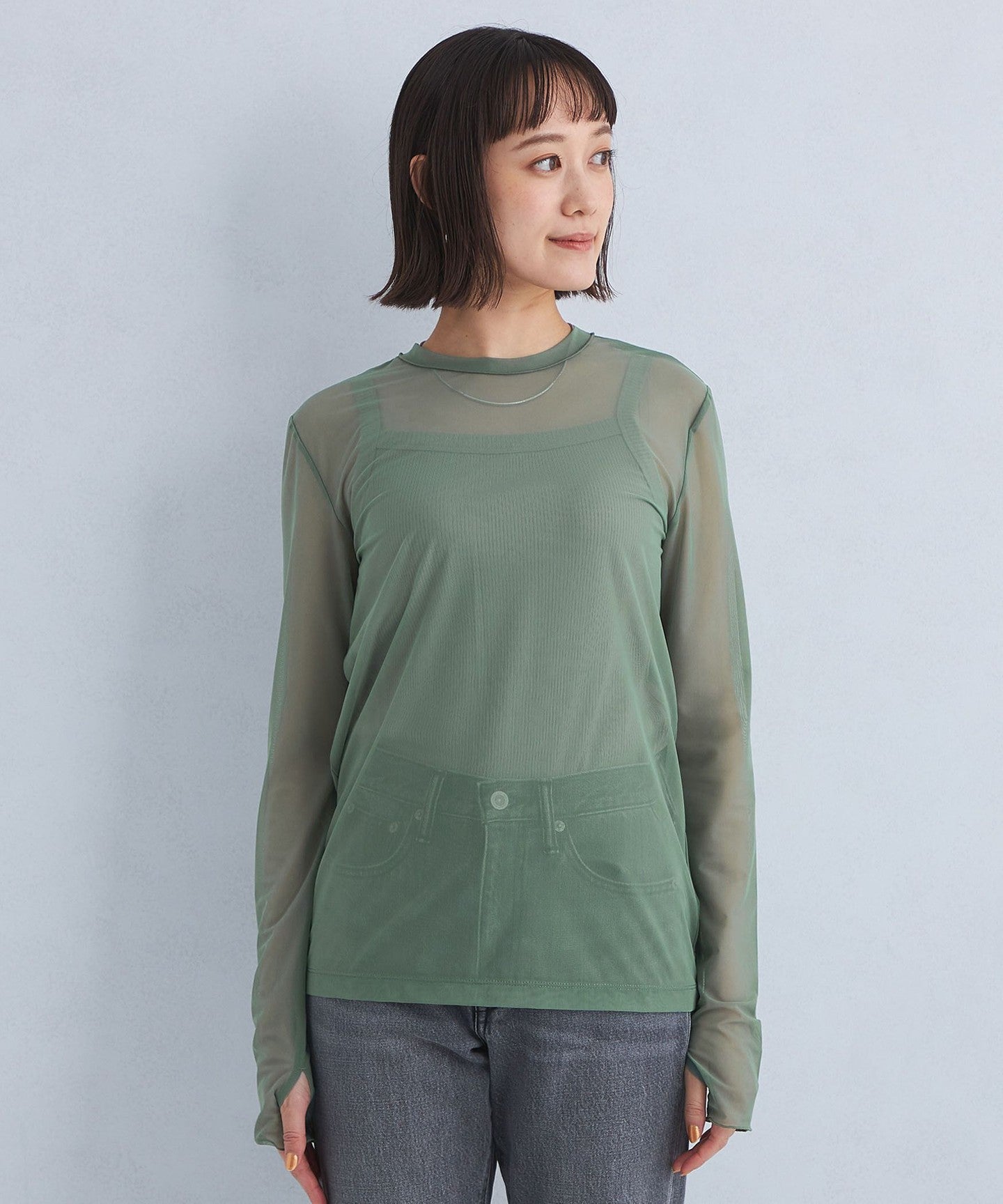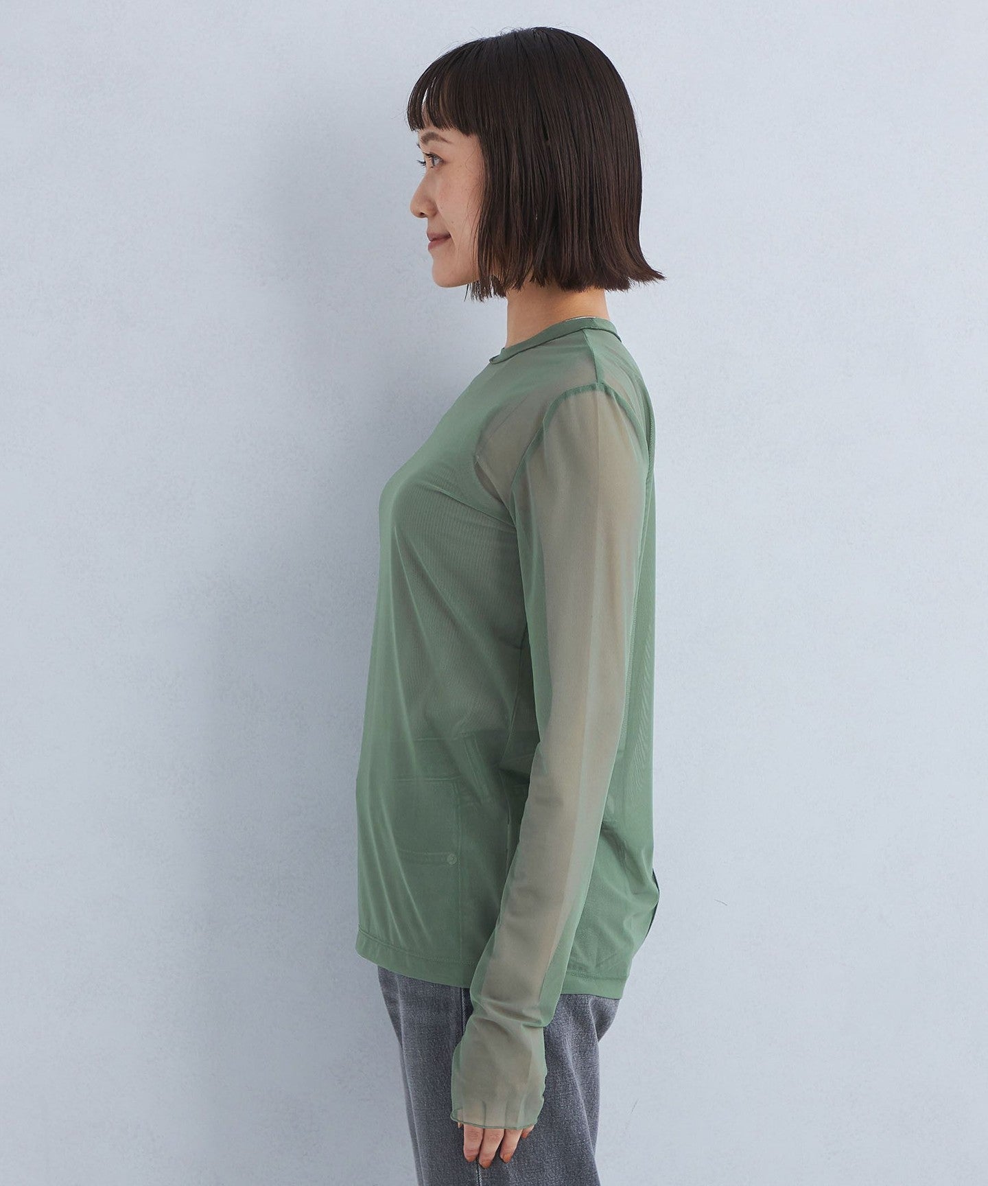 High mesh tulle long sleeve pullover