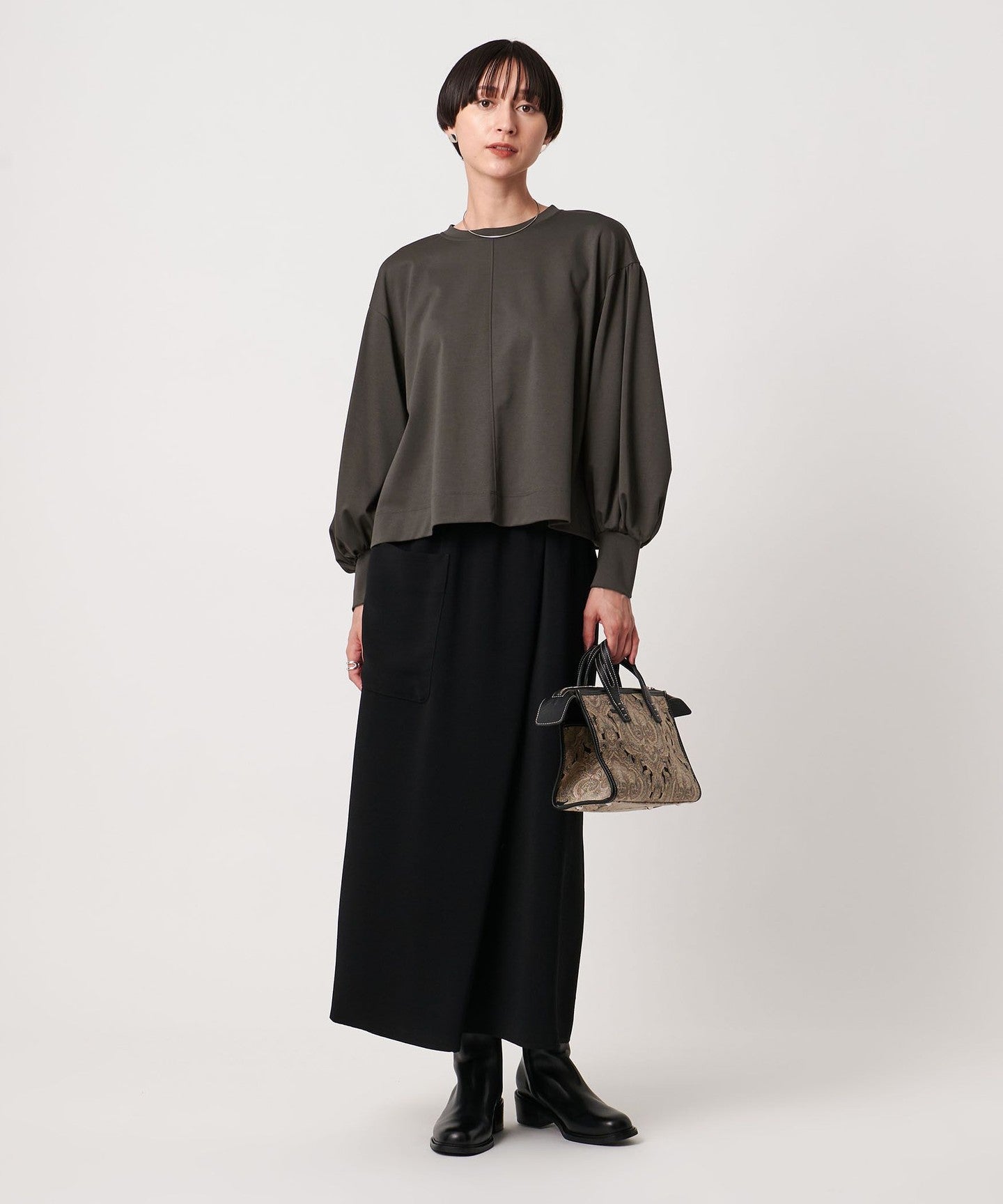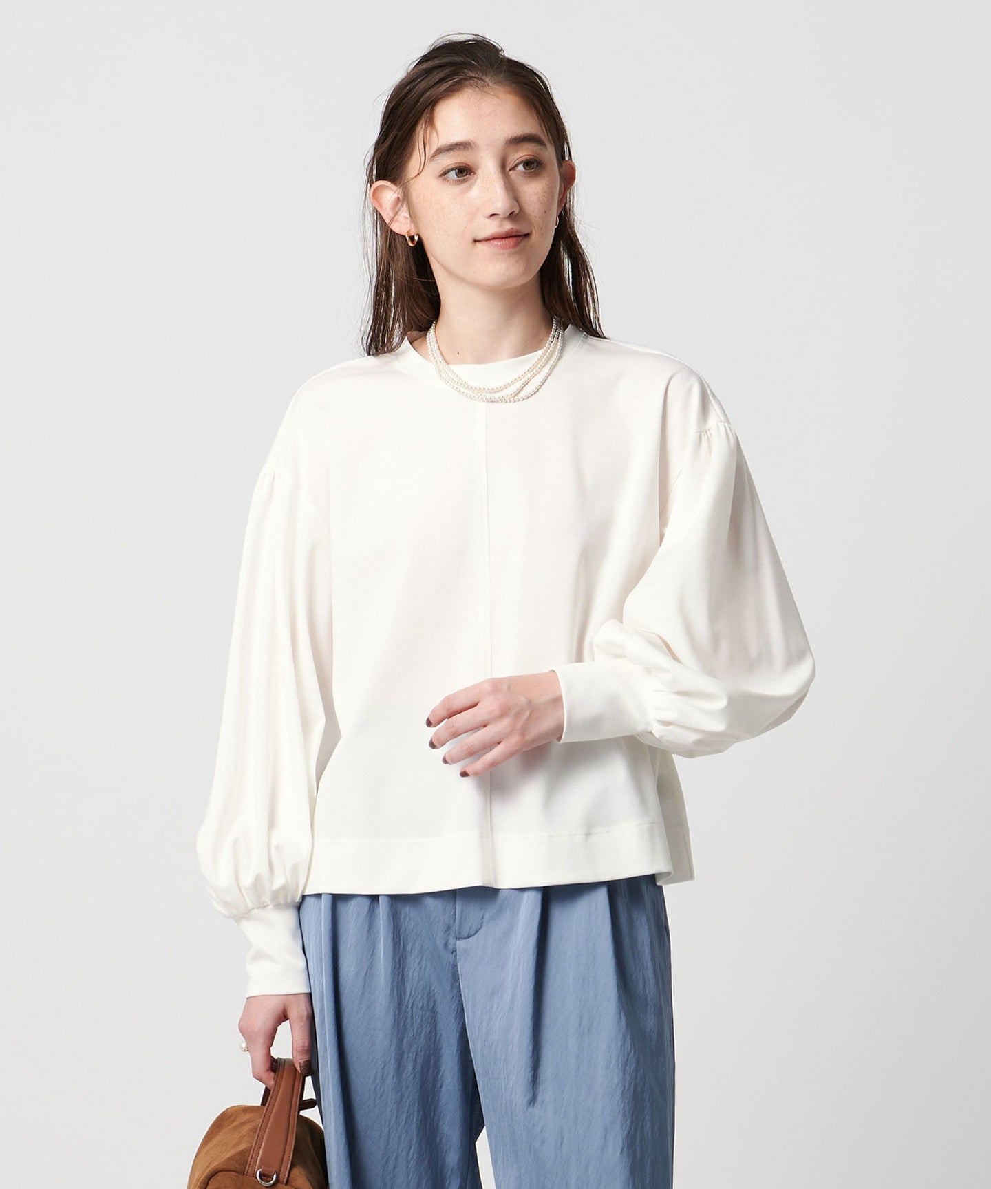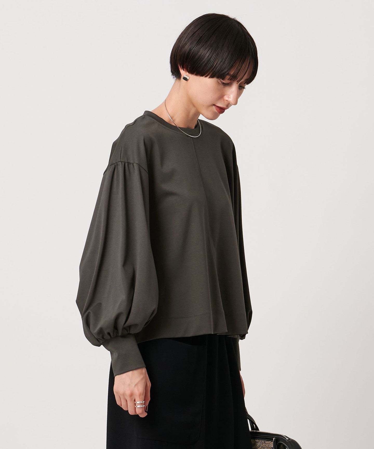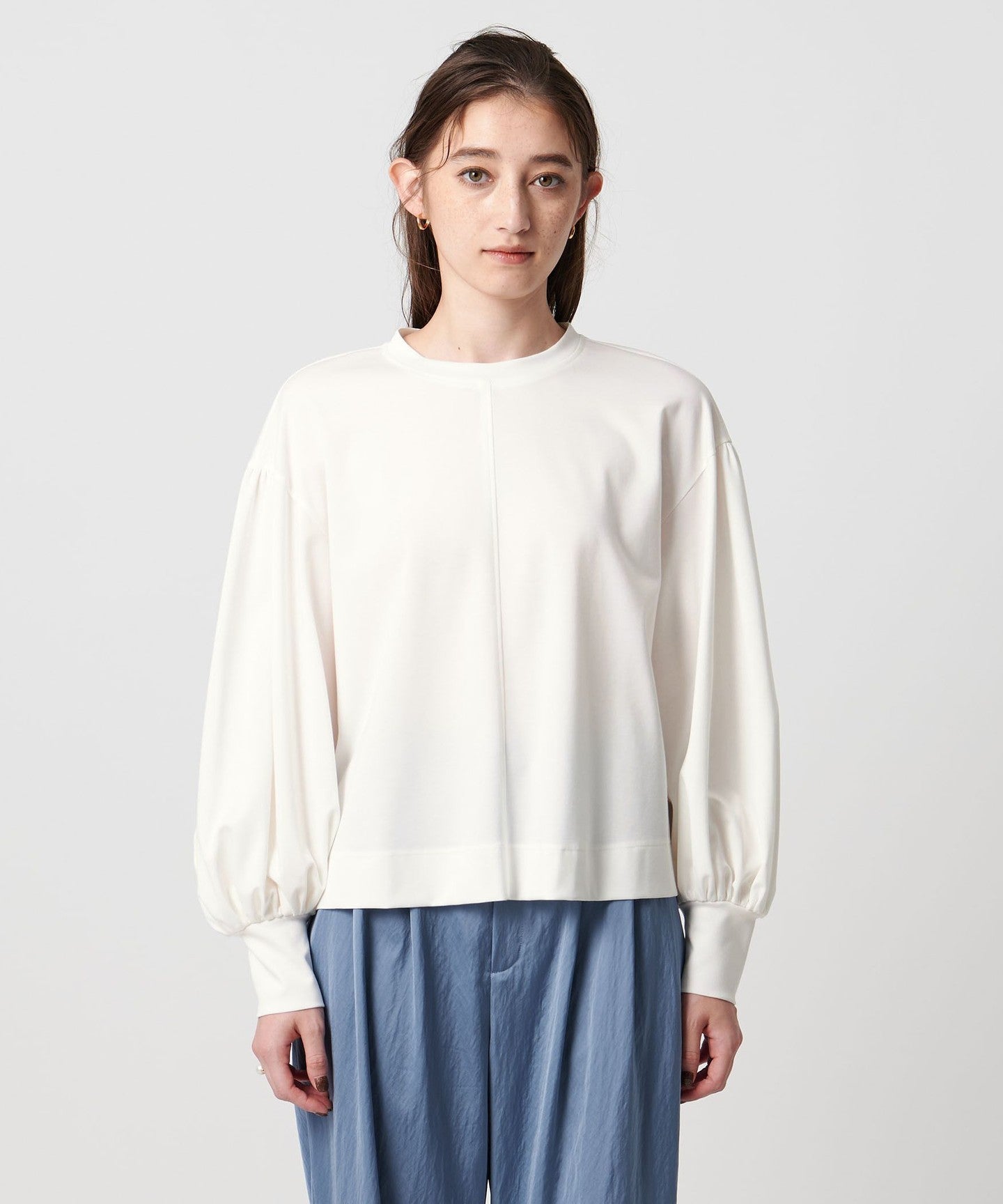 A gorgeous cut-and-sew top with voluminous balloon sleeves