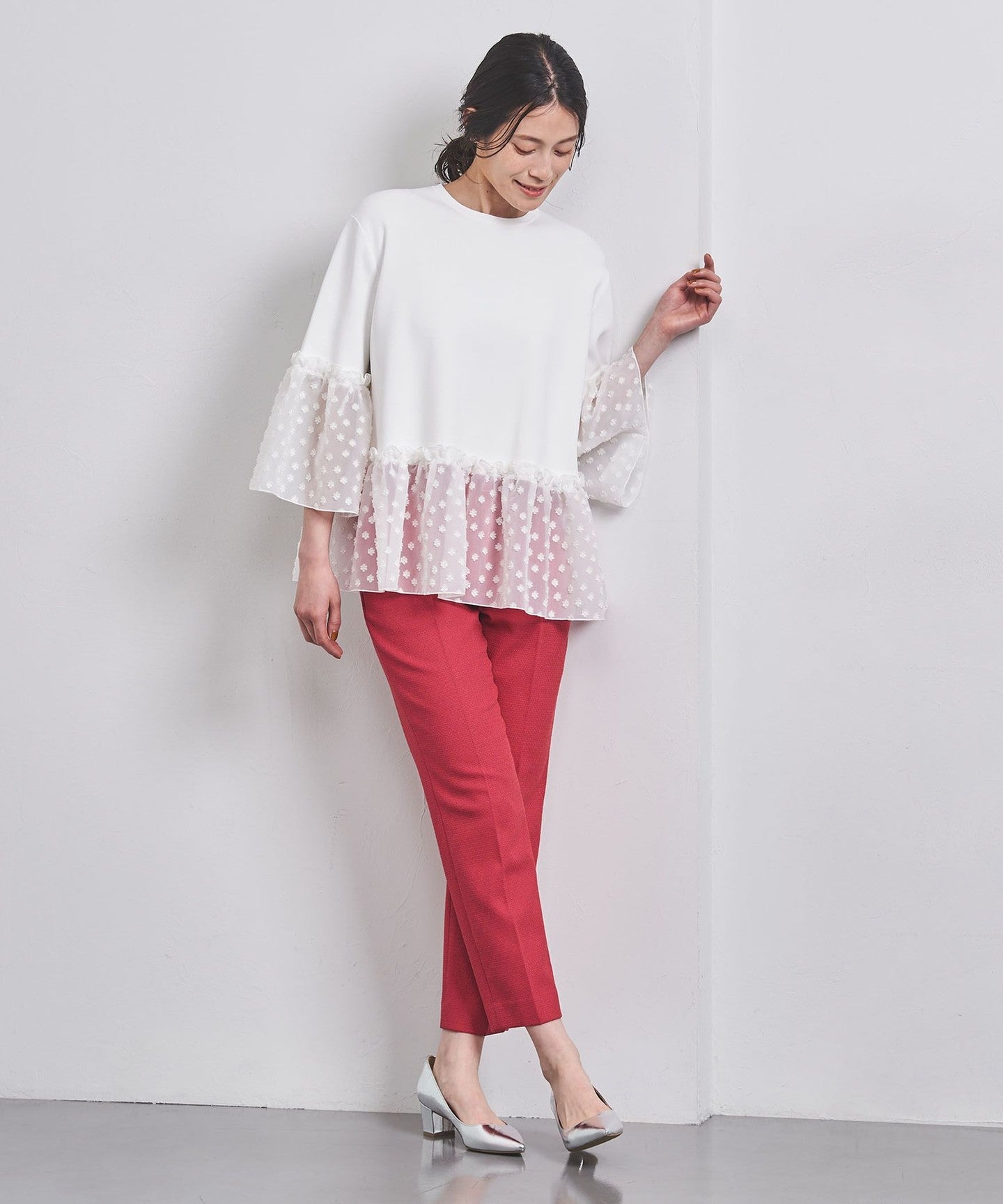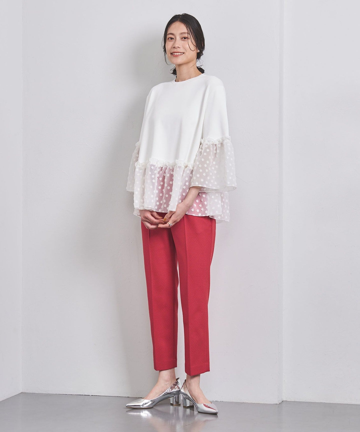 The slightly shorter length that shows off your ankles gives a light impression, and allows for a wide range of footwear arrangements, such as with heeled pumps or flat shoes.