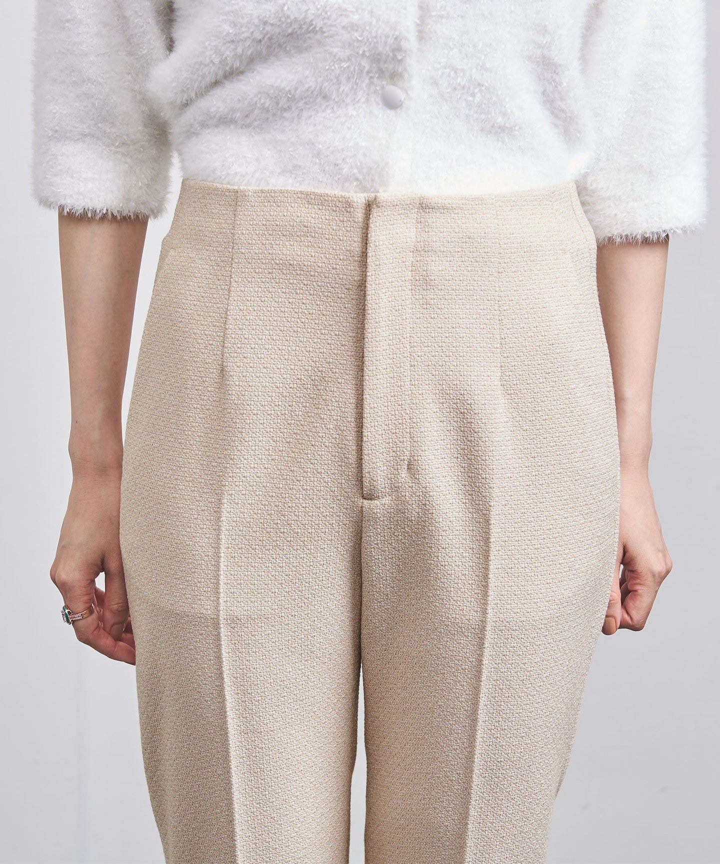This material is made from yarn with a tweed-like mixed feel, giving it a look that is not too casual.