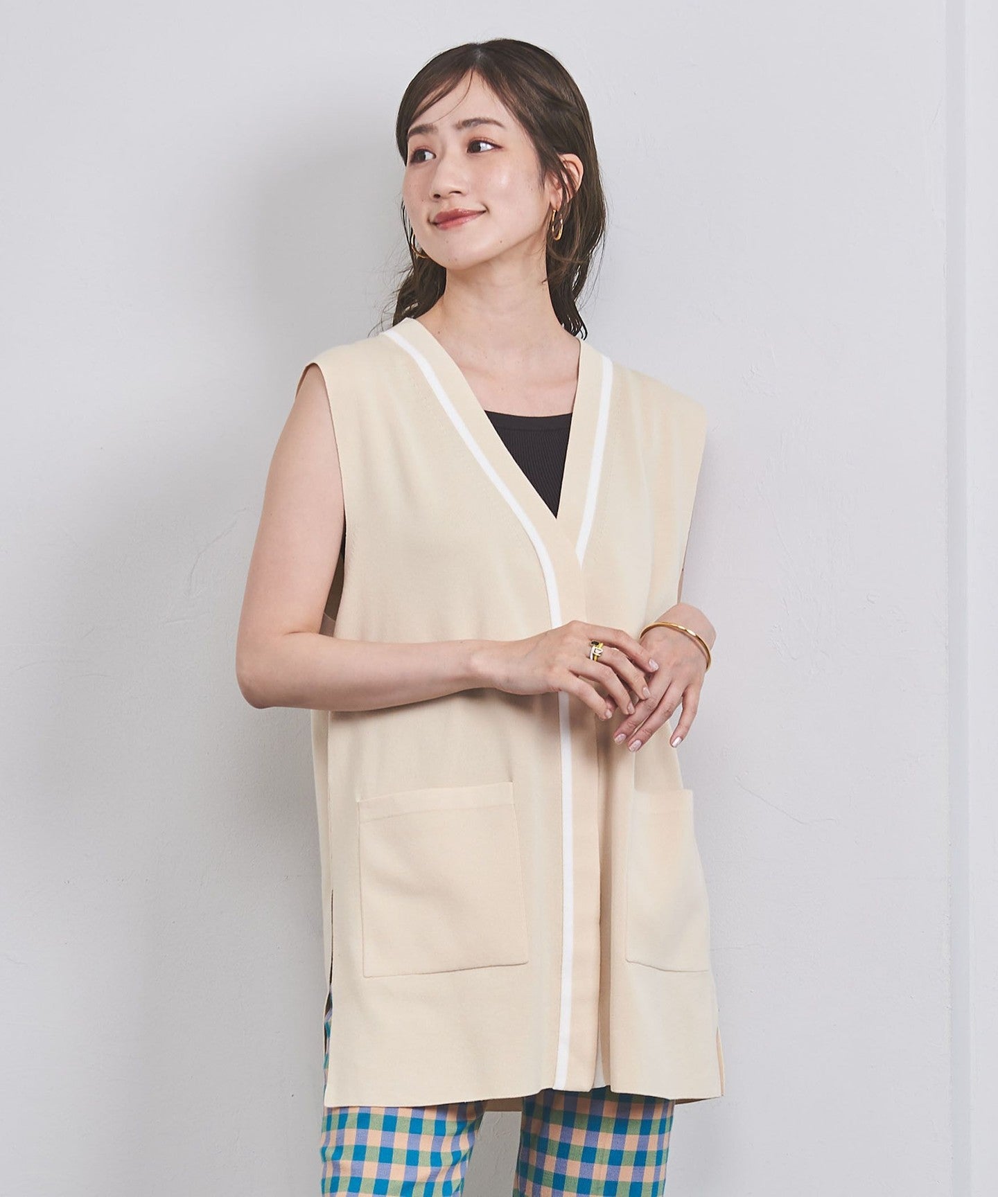 We recommend pairing it with a cut-and-sew or shirt as an inner layer, or wearing it casually with the front open.
