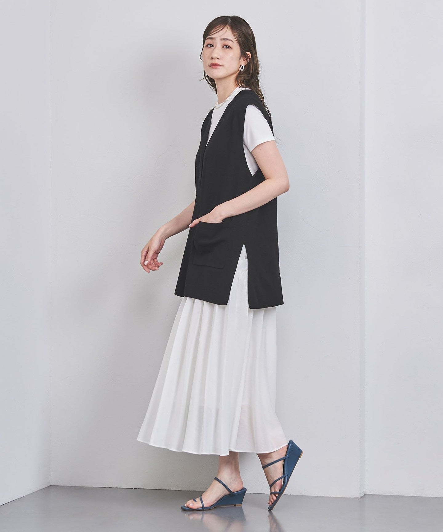 The all-knit fabric does not show the body lines, and is characterized by its refreshing and light feel.
