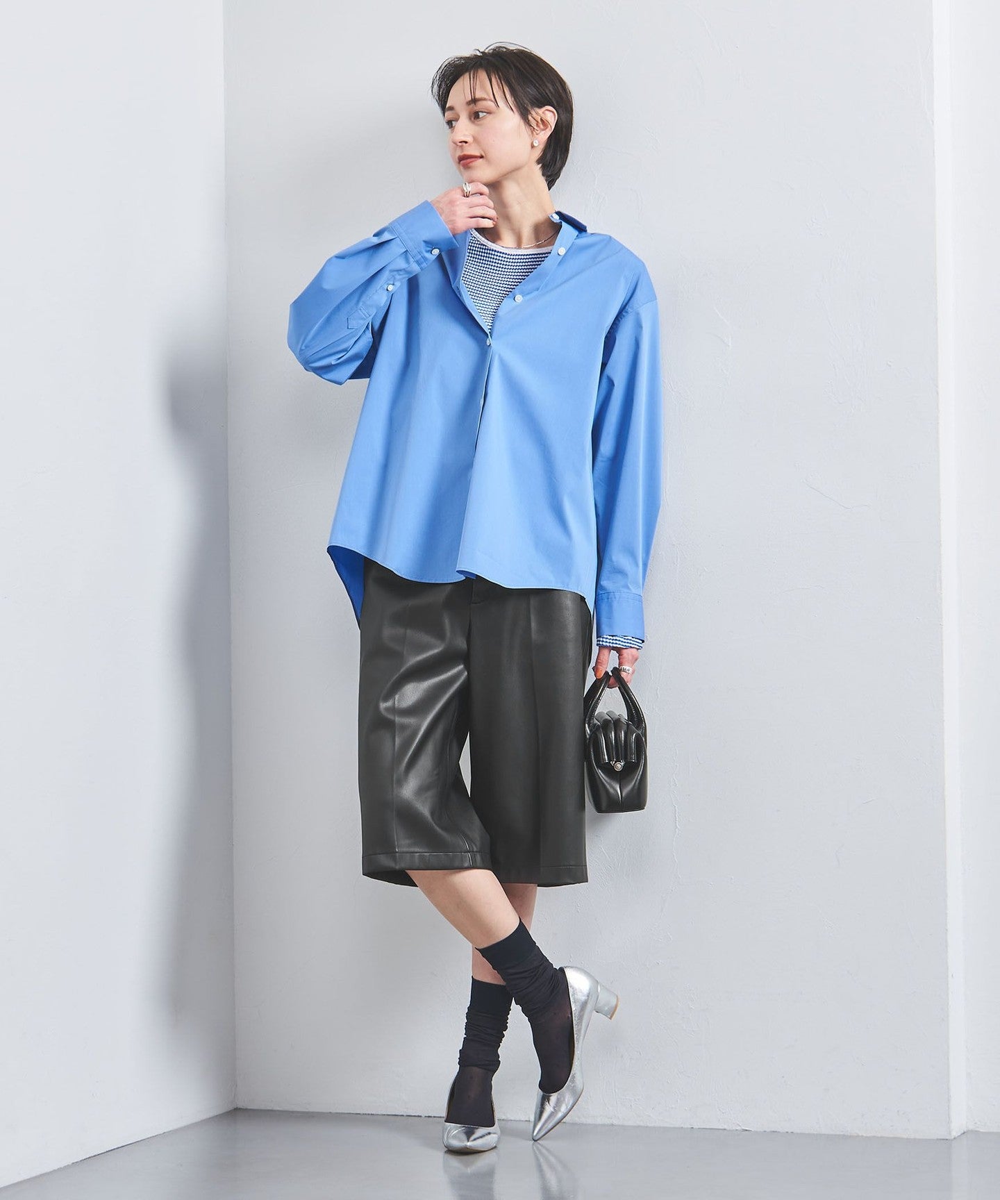 It can be worn as a set with a bustier from the same series, and can also be worn with a frilled blouse for a sweeter look, or paired with a logo T-shirt for a more casual look.