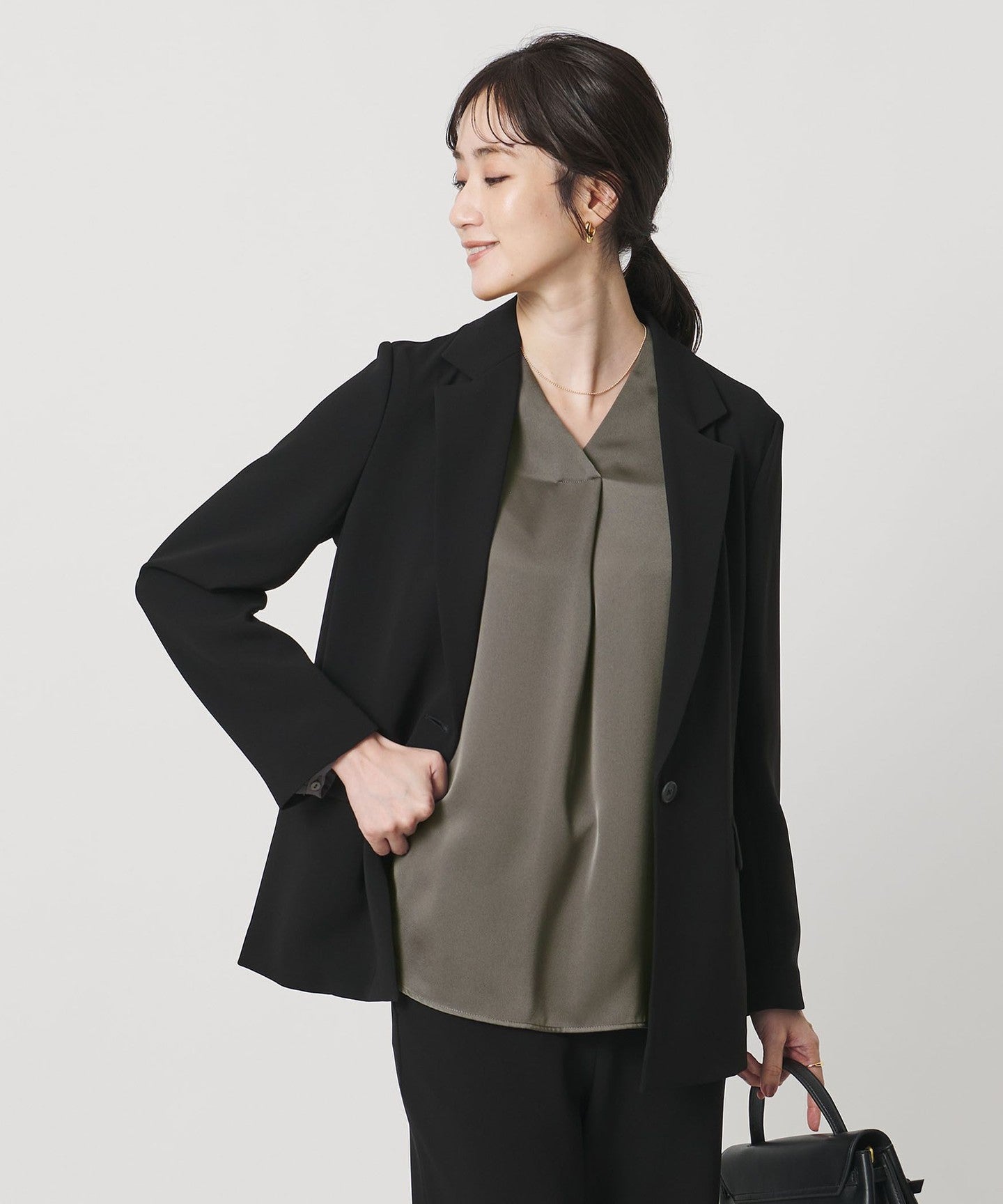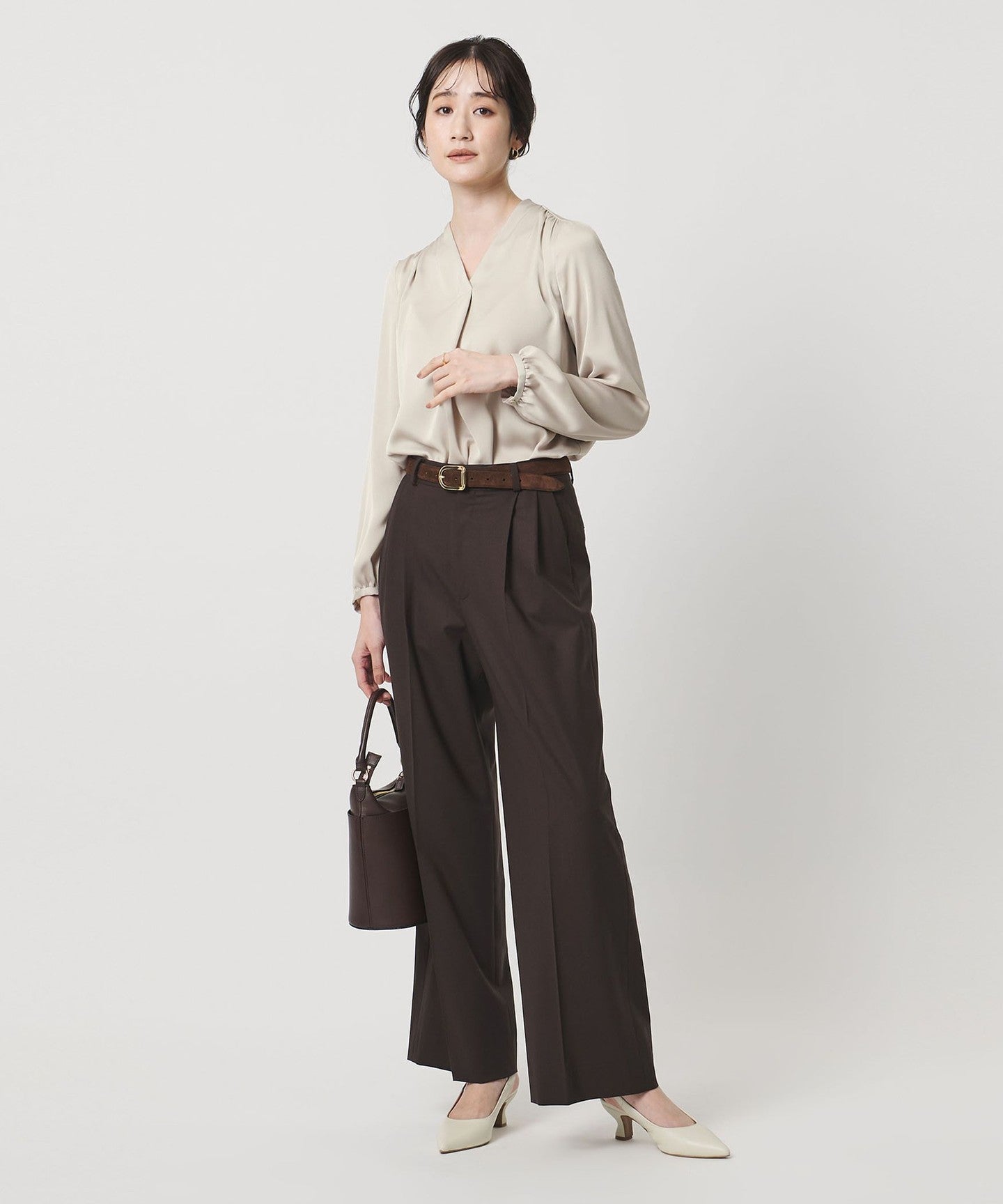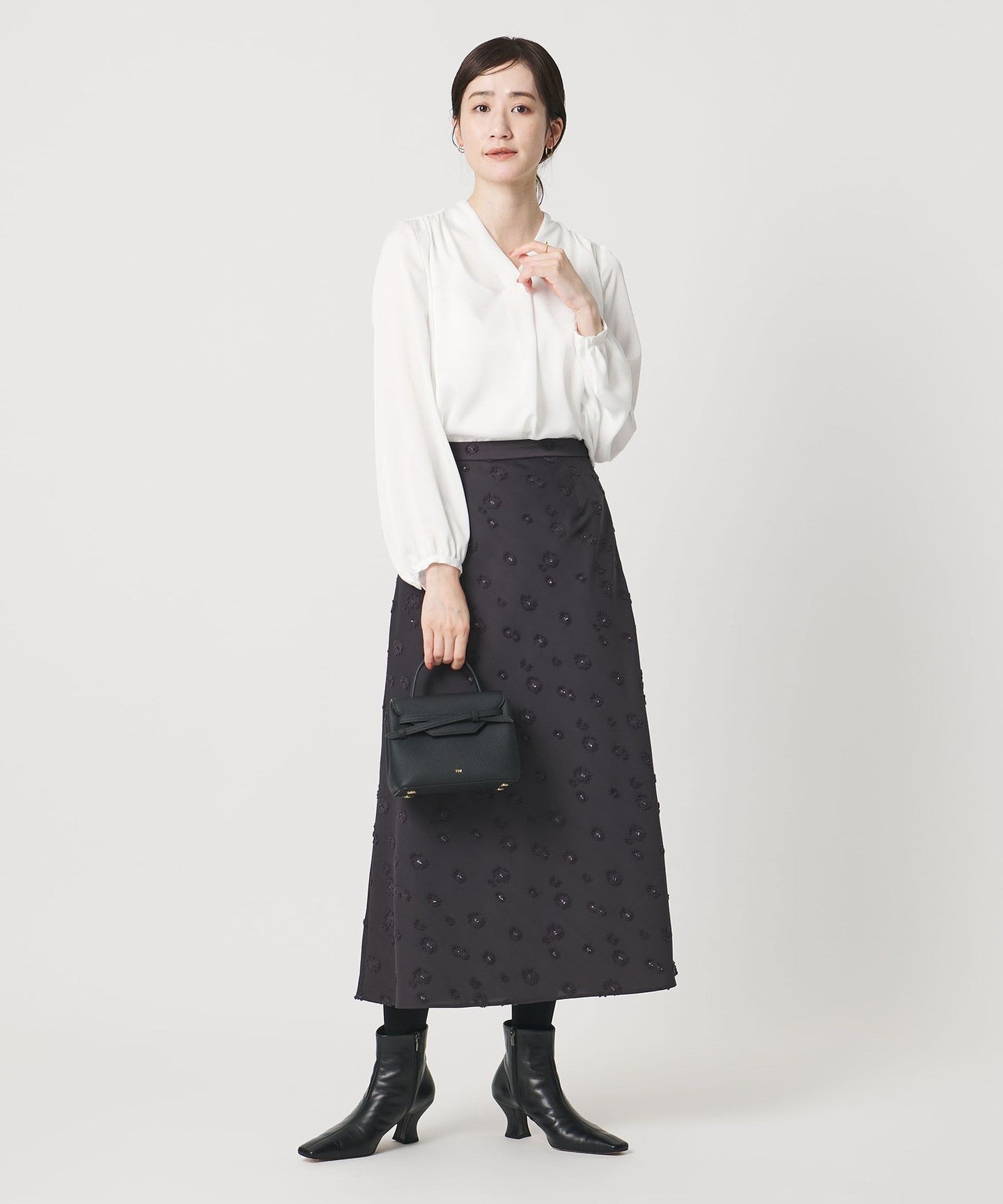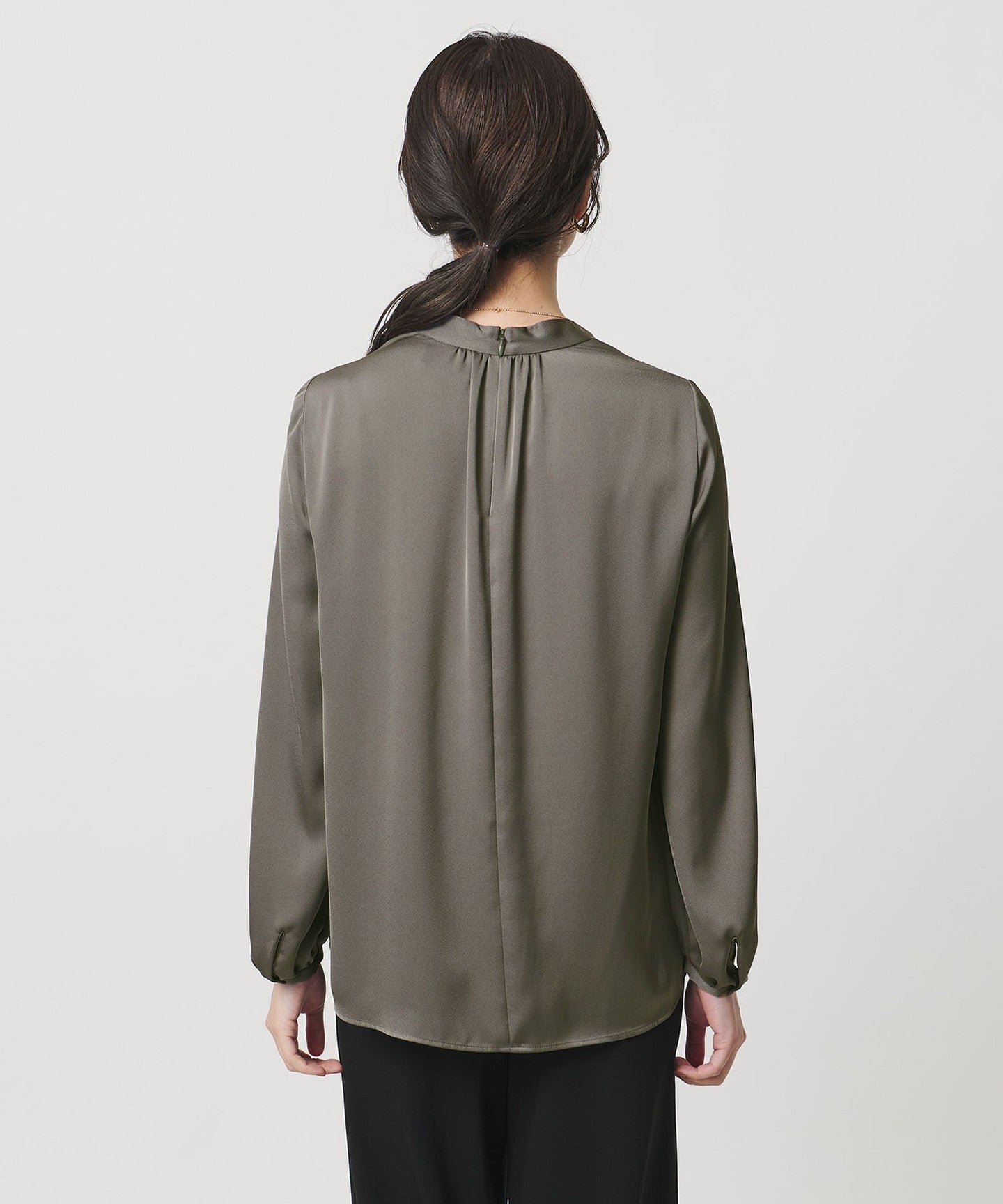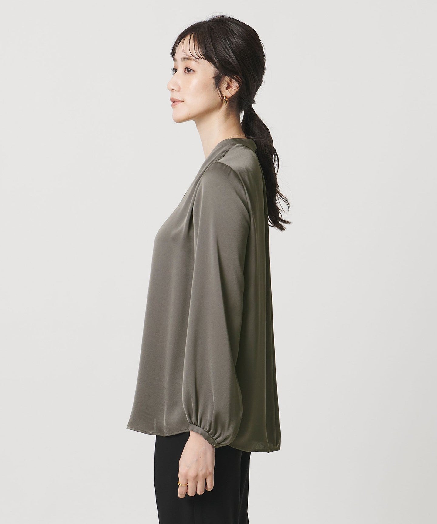 This blouse features a V-neck that beautifully accentuates the collarbone, creating a feminine impression.
