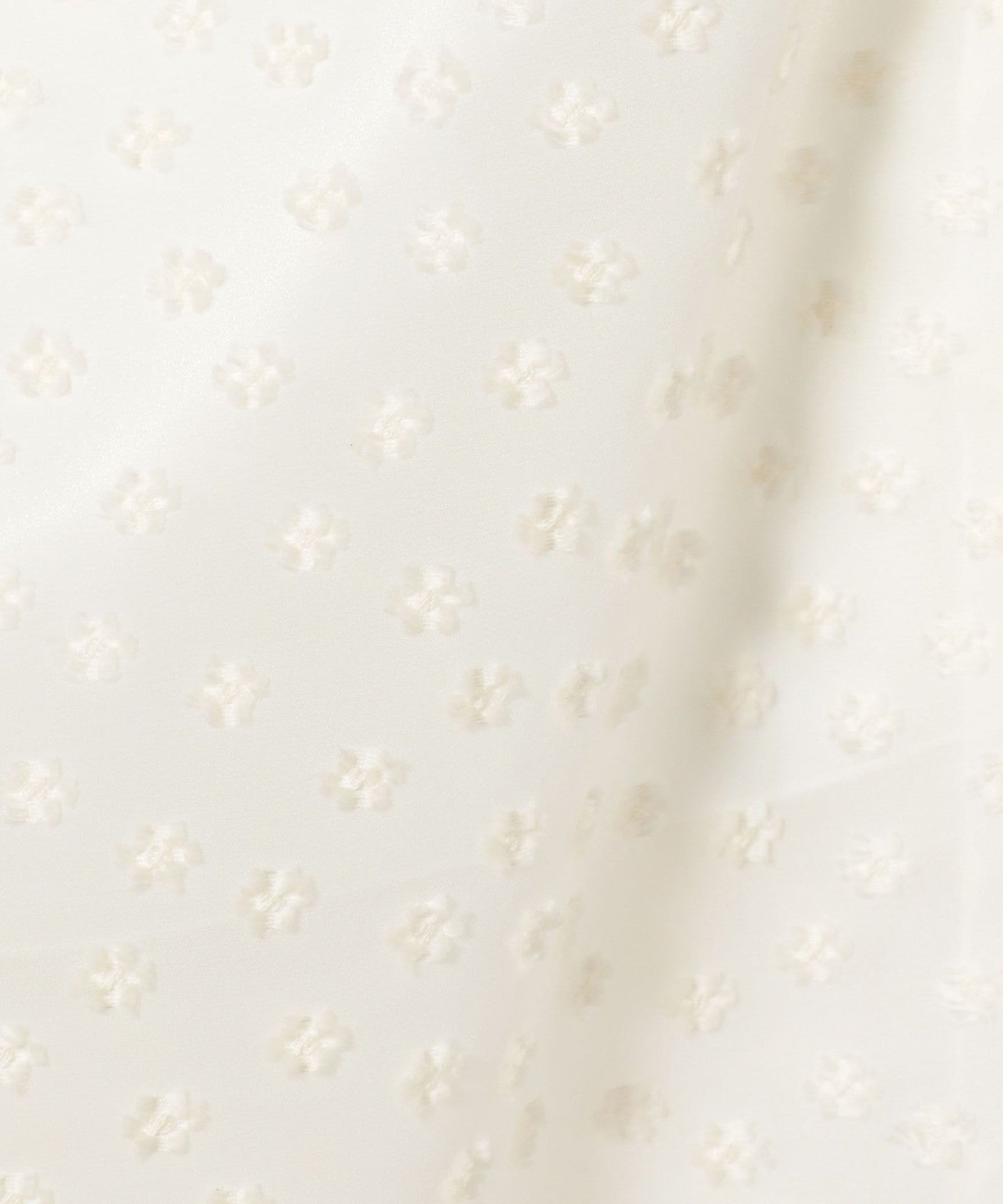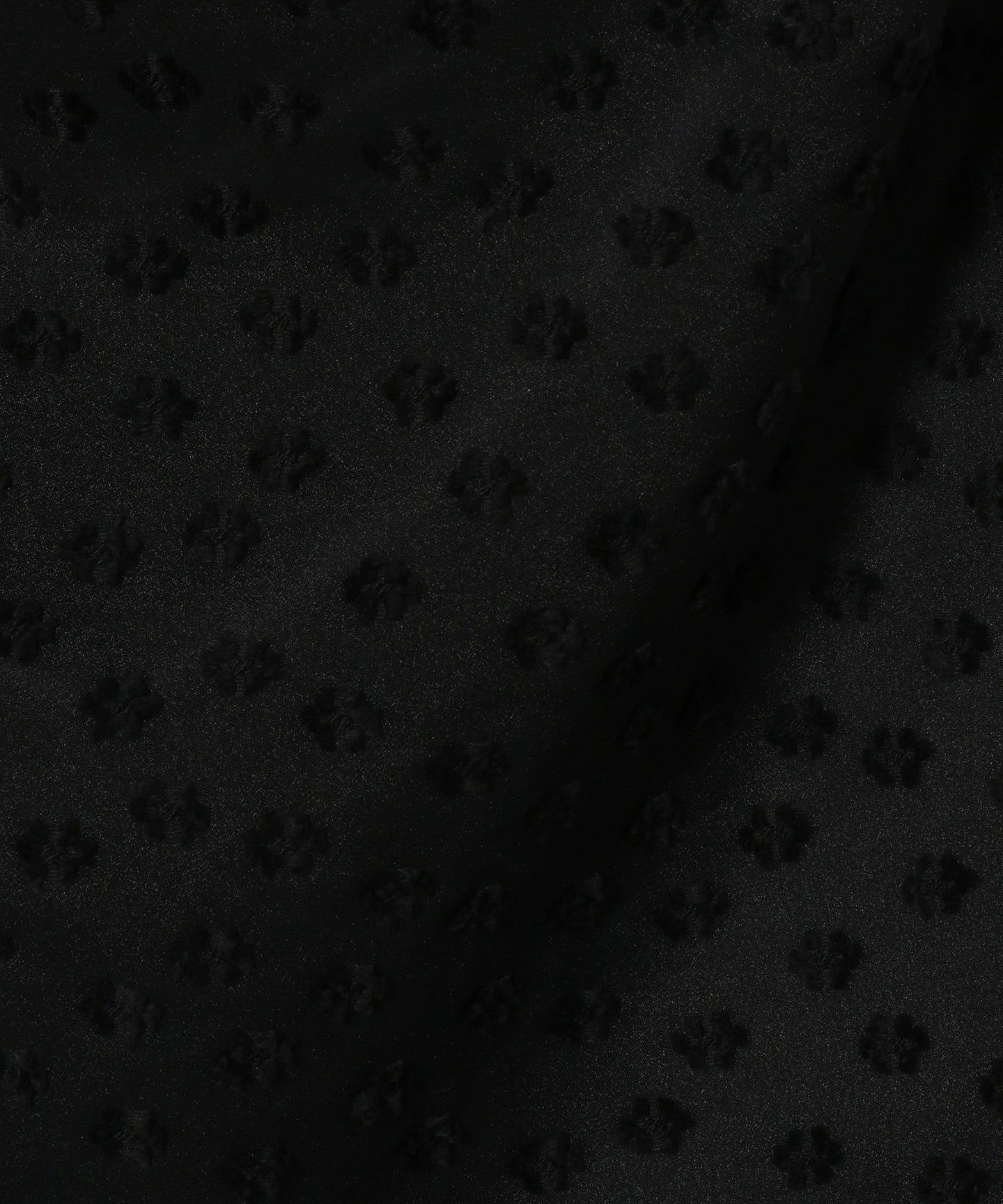 Jacquard fabric with a sheer base and a three-dimensional dot pattern woven into it.