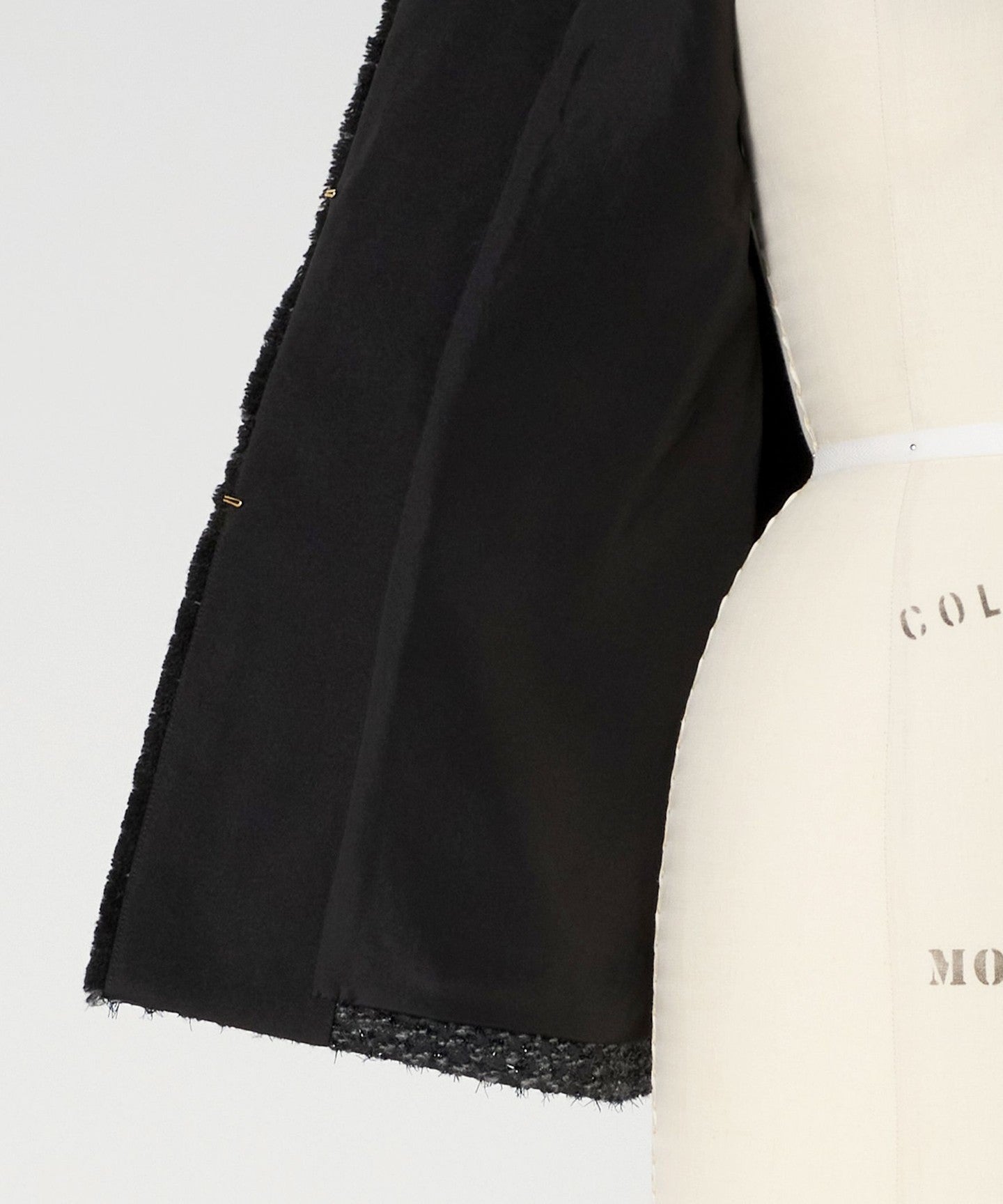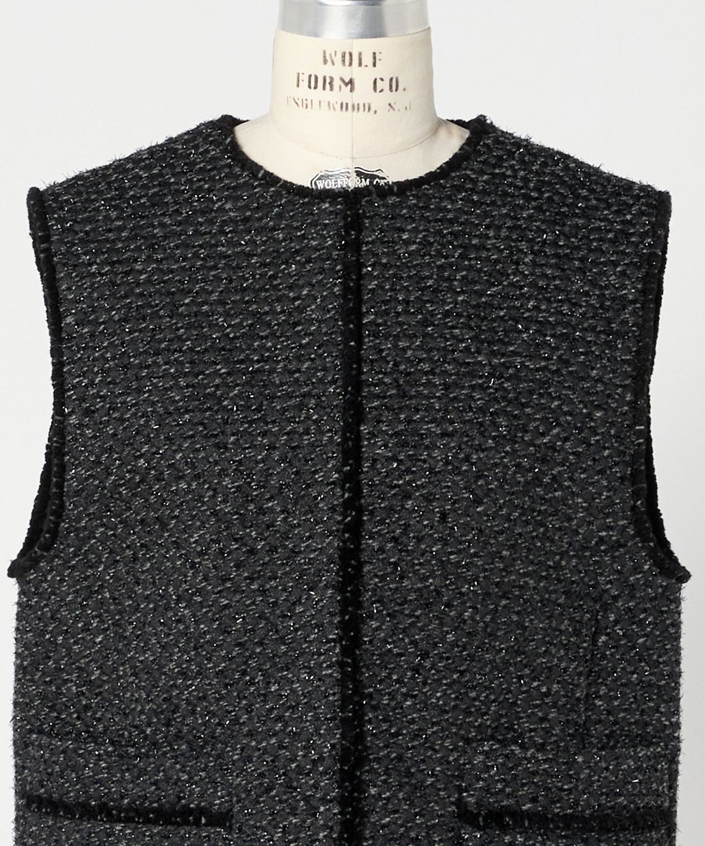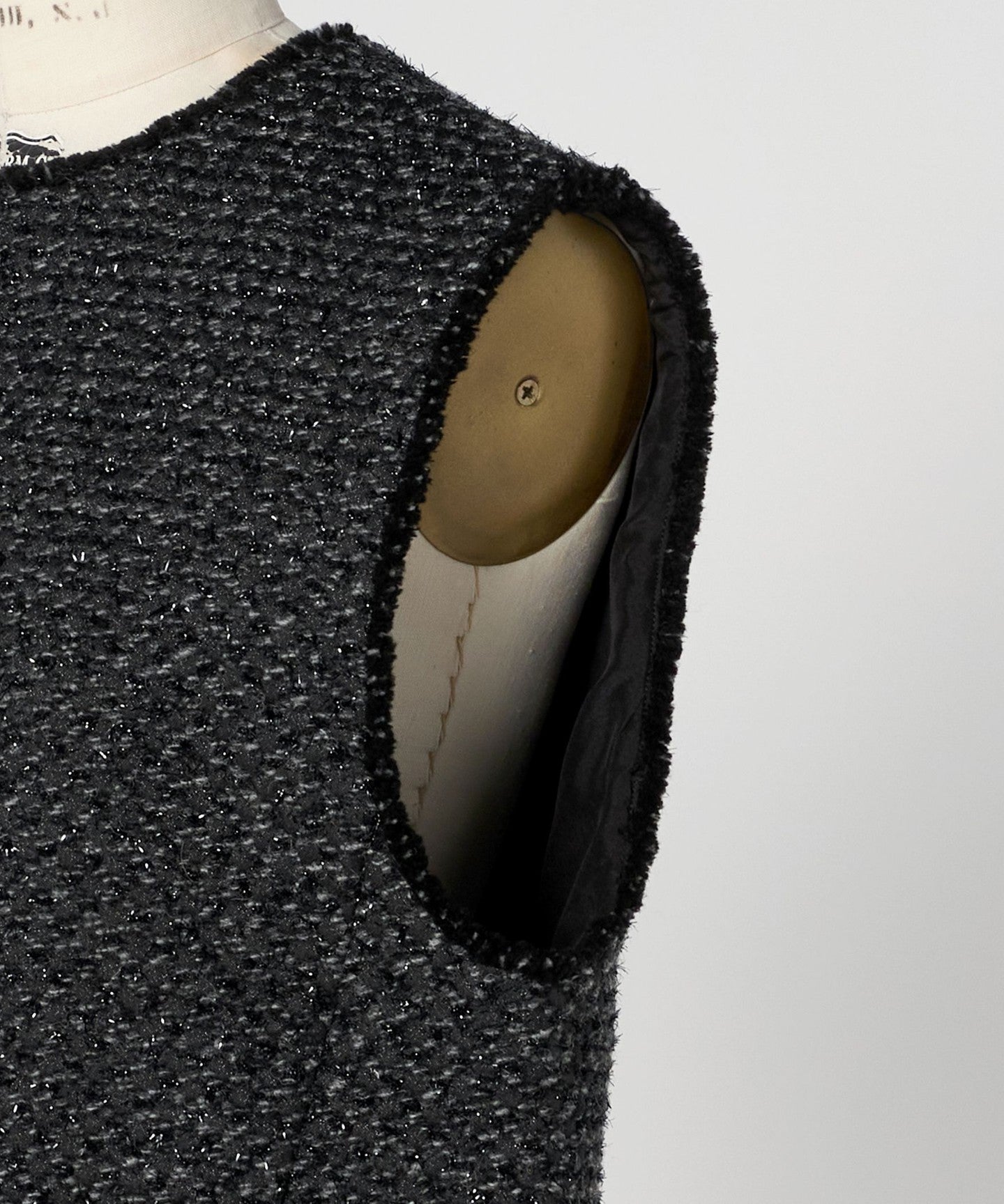 A sleeveless jacket that exudes chic yet elegant elegance.