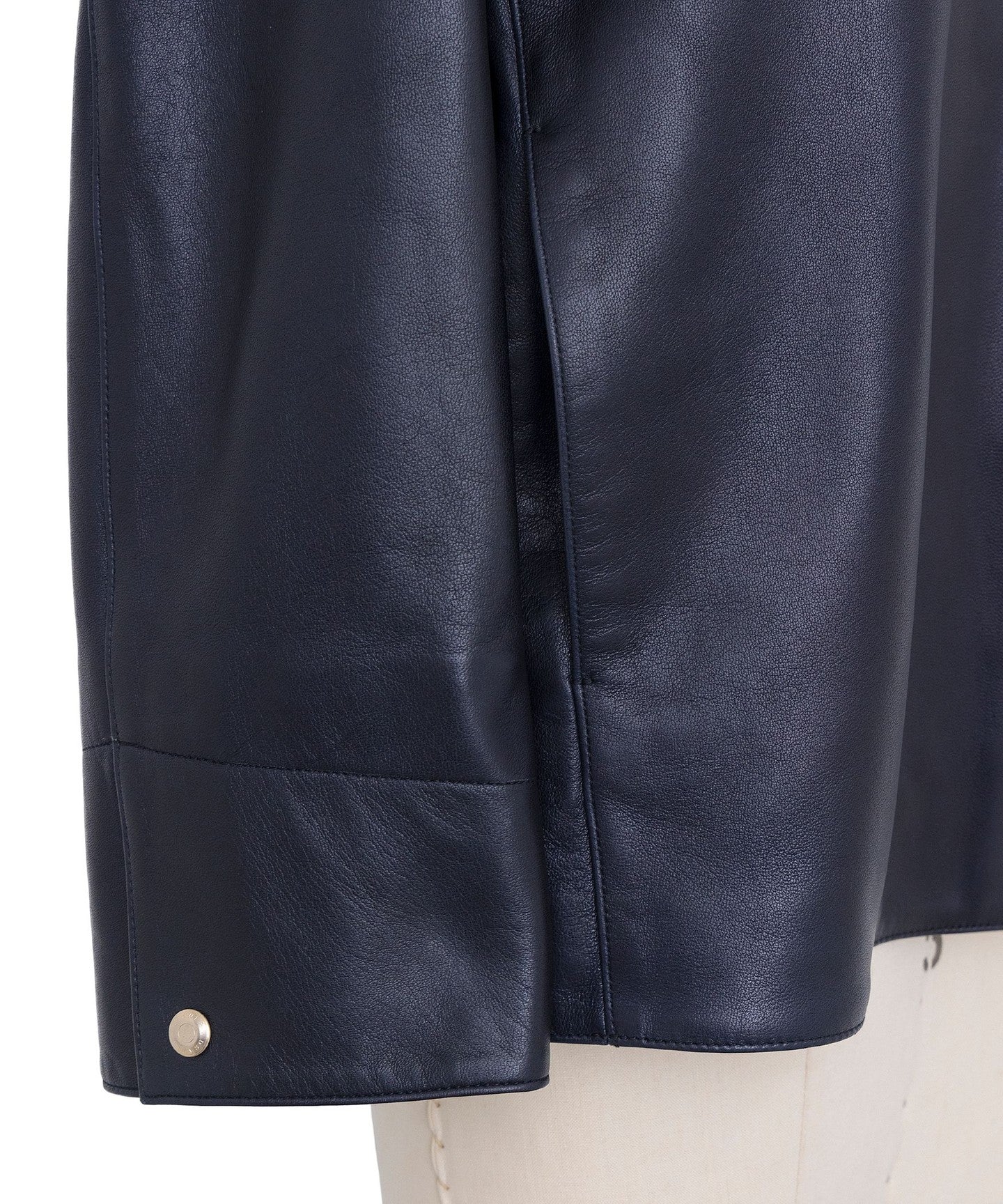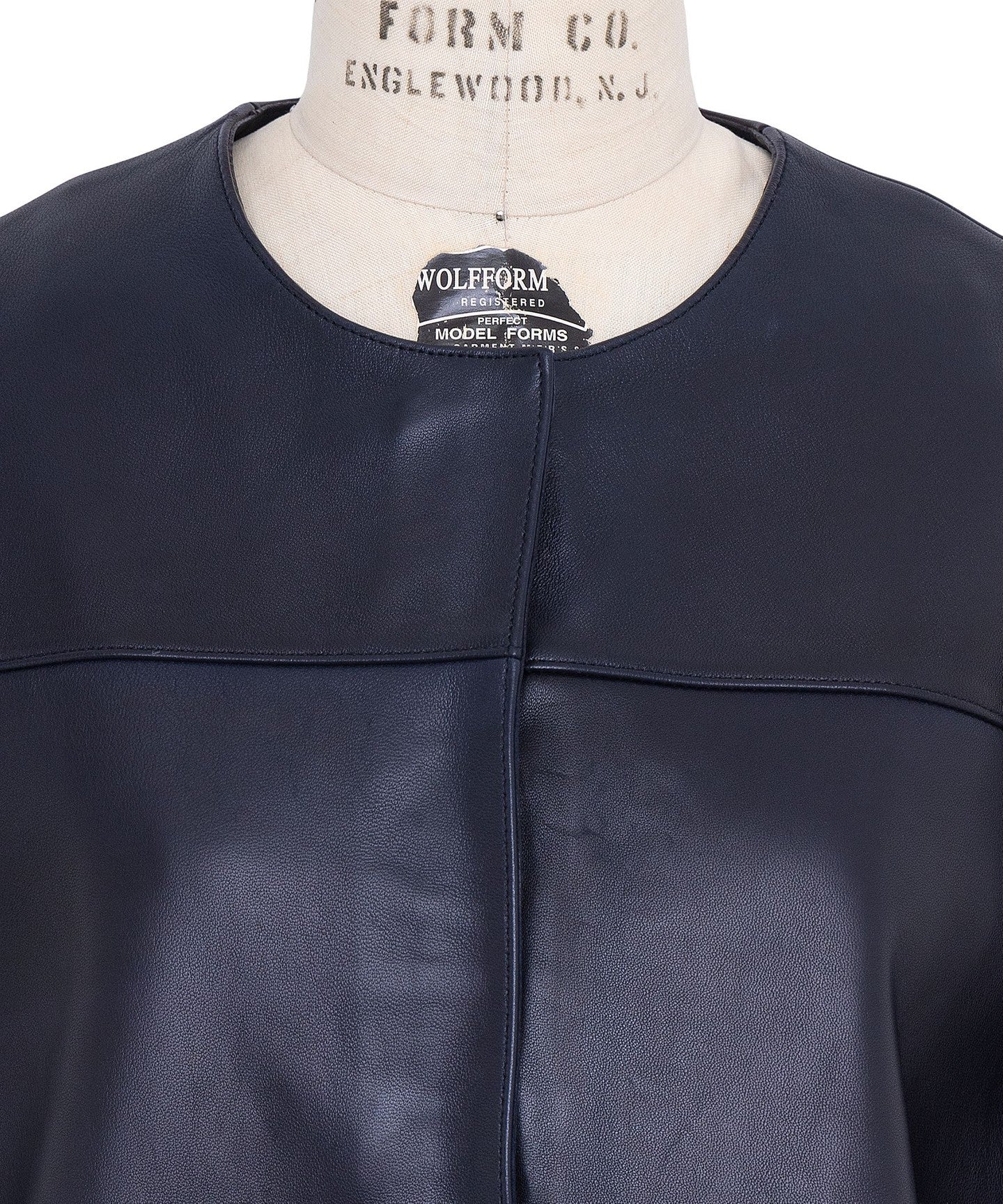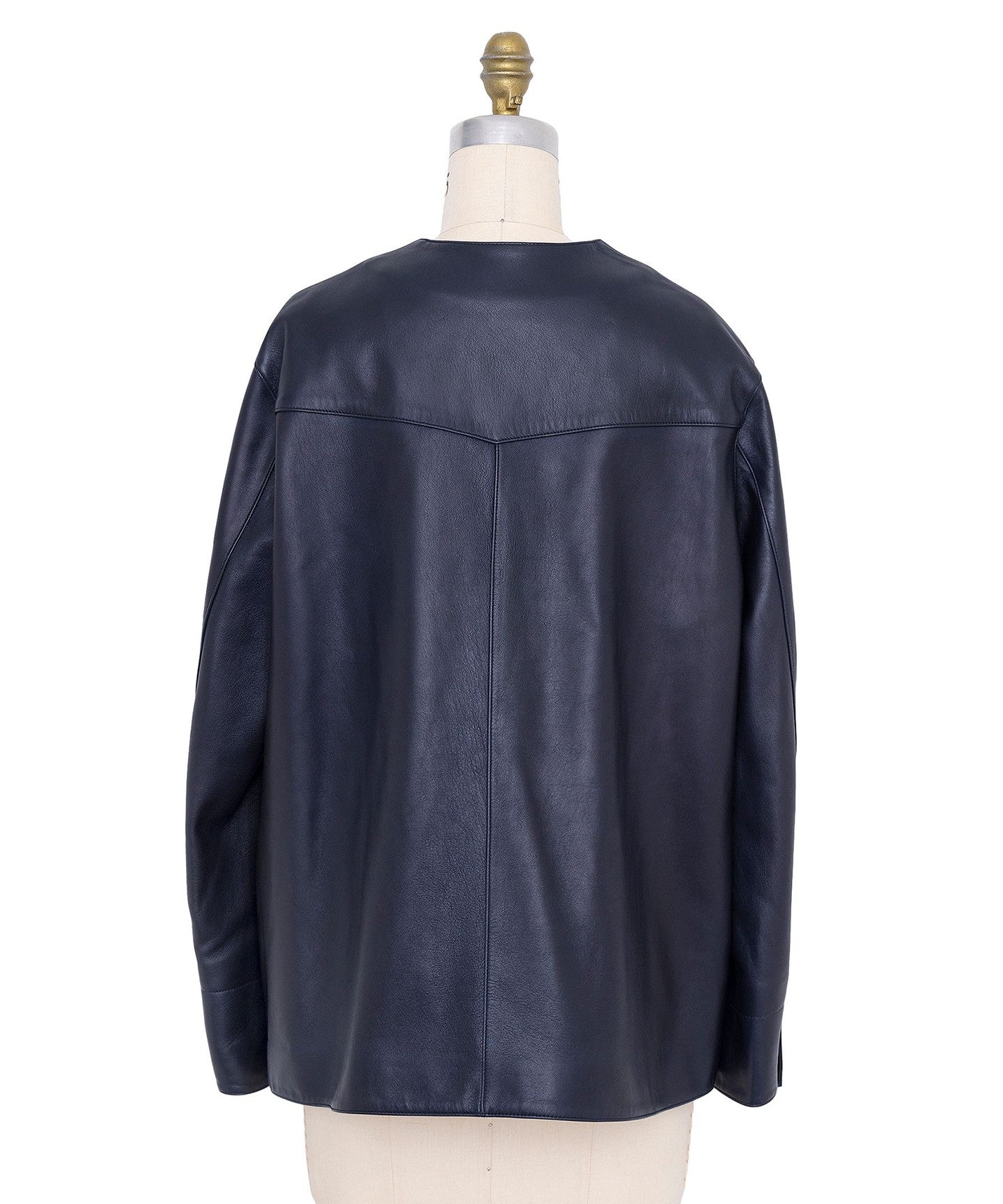 This leather jacket's minimalist design, stripped of details, enhances its beauty.