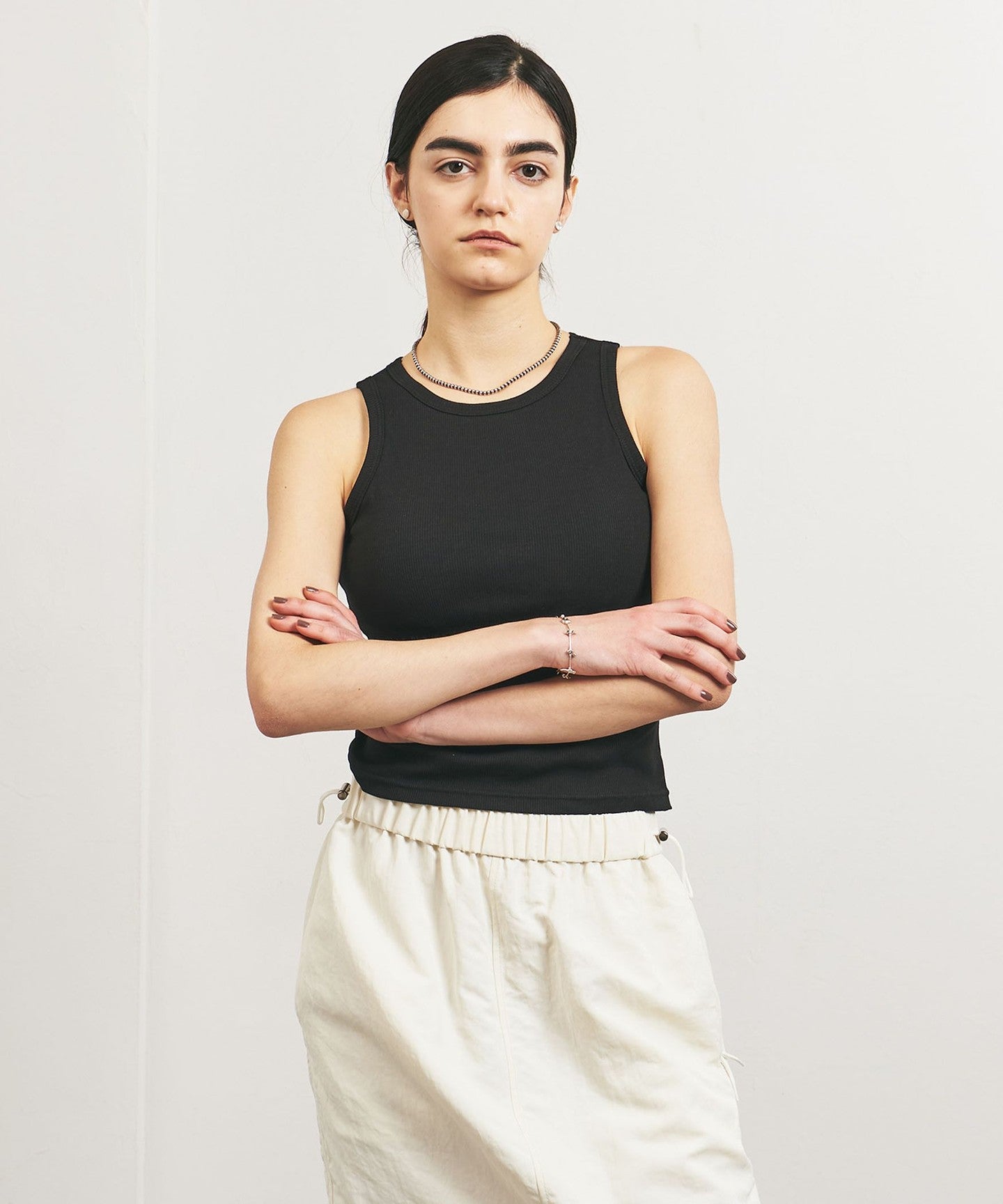 A tank top with cups that is perfect for active scenes as well as everyday use.