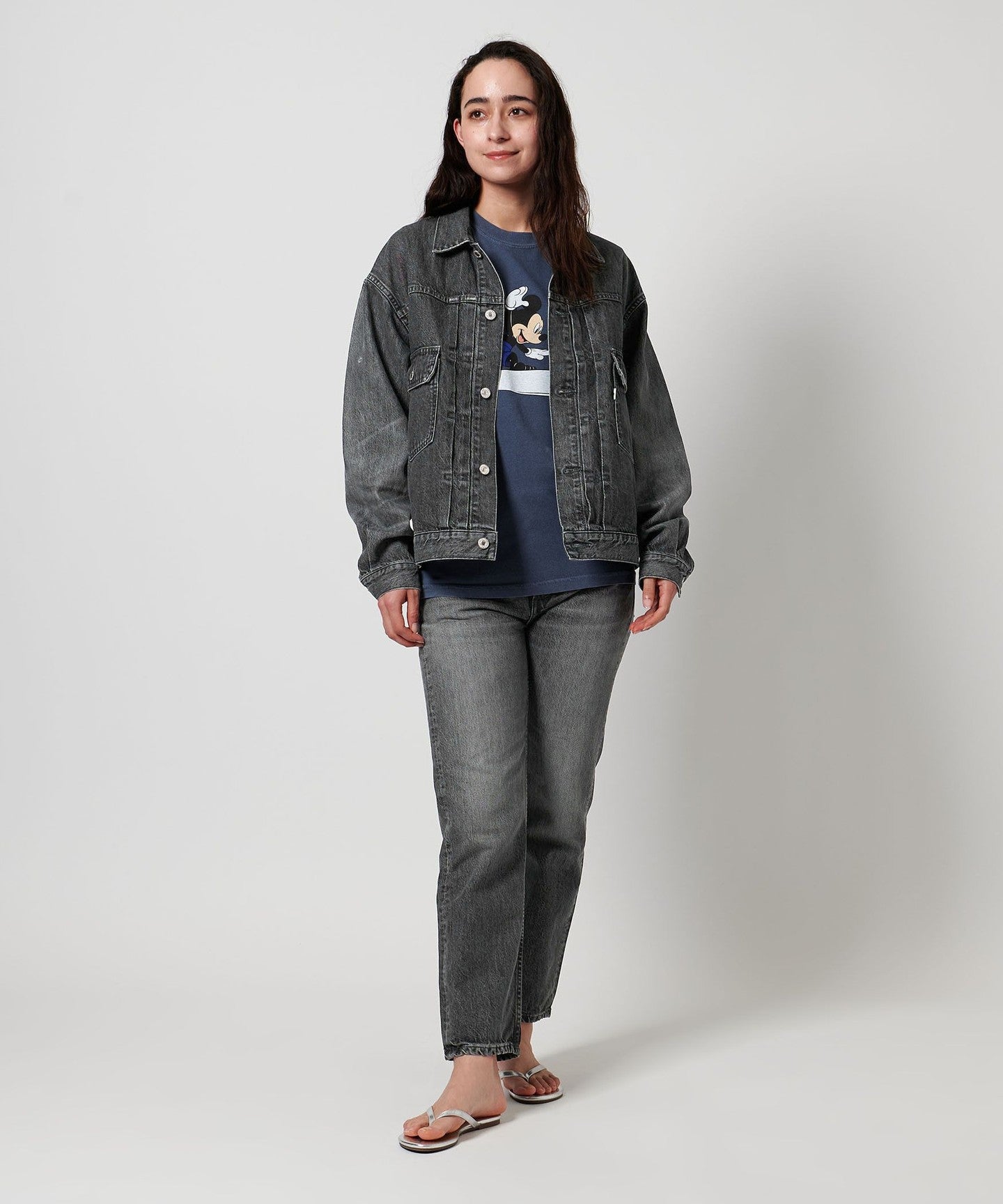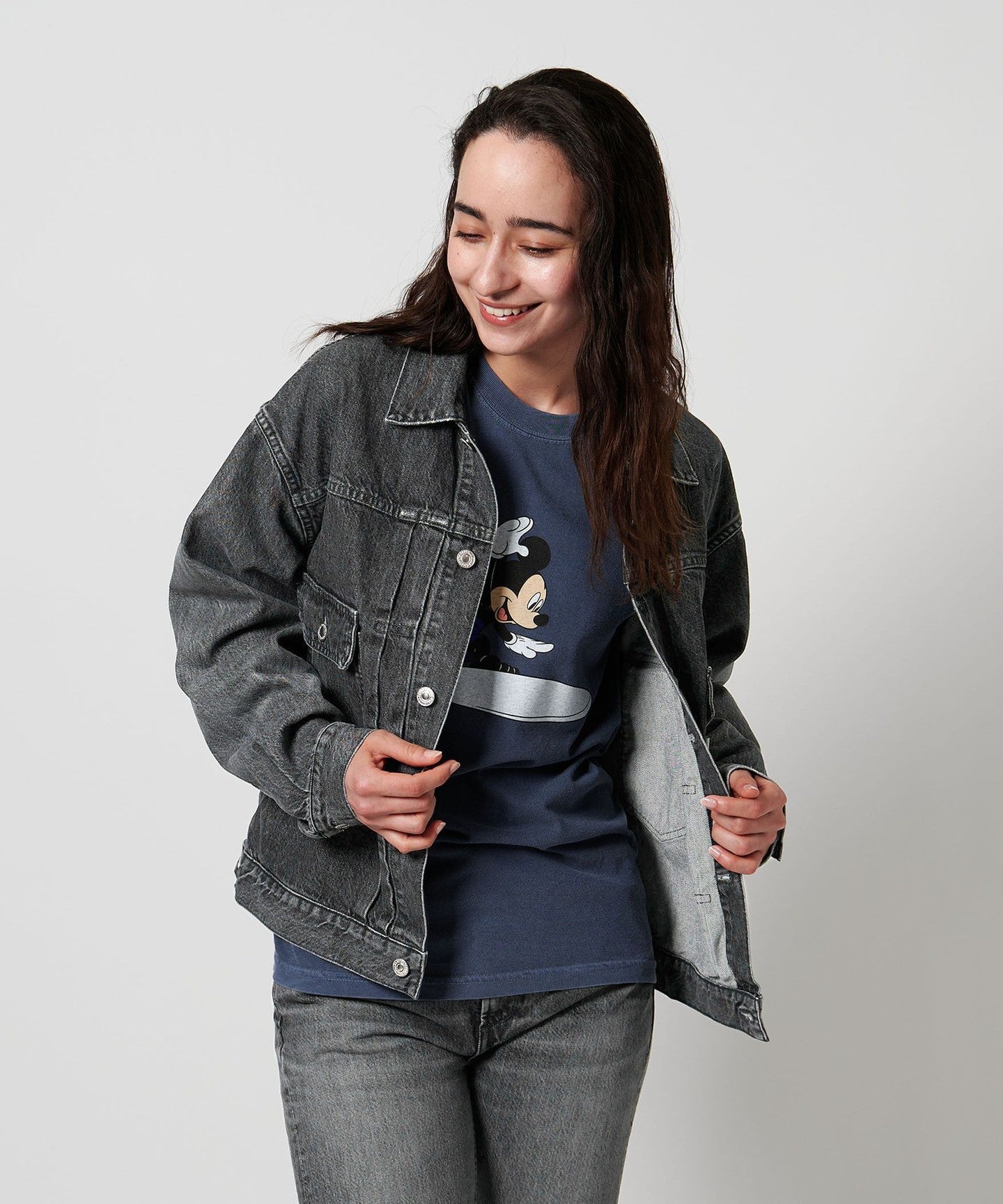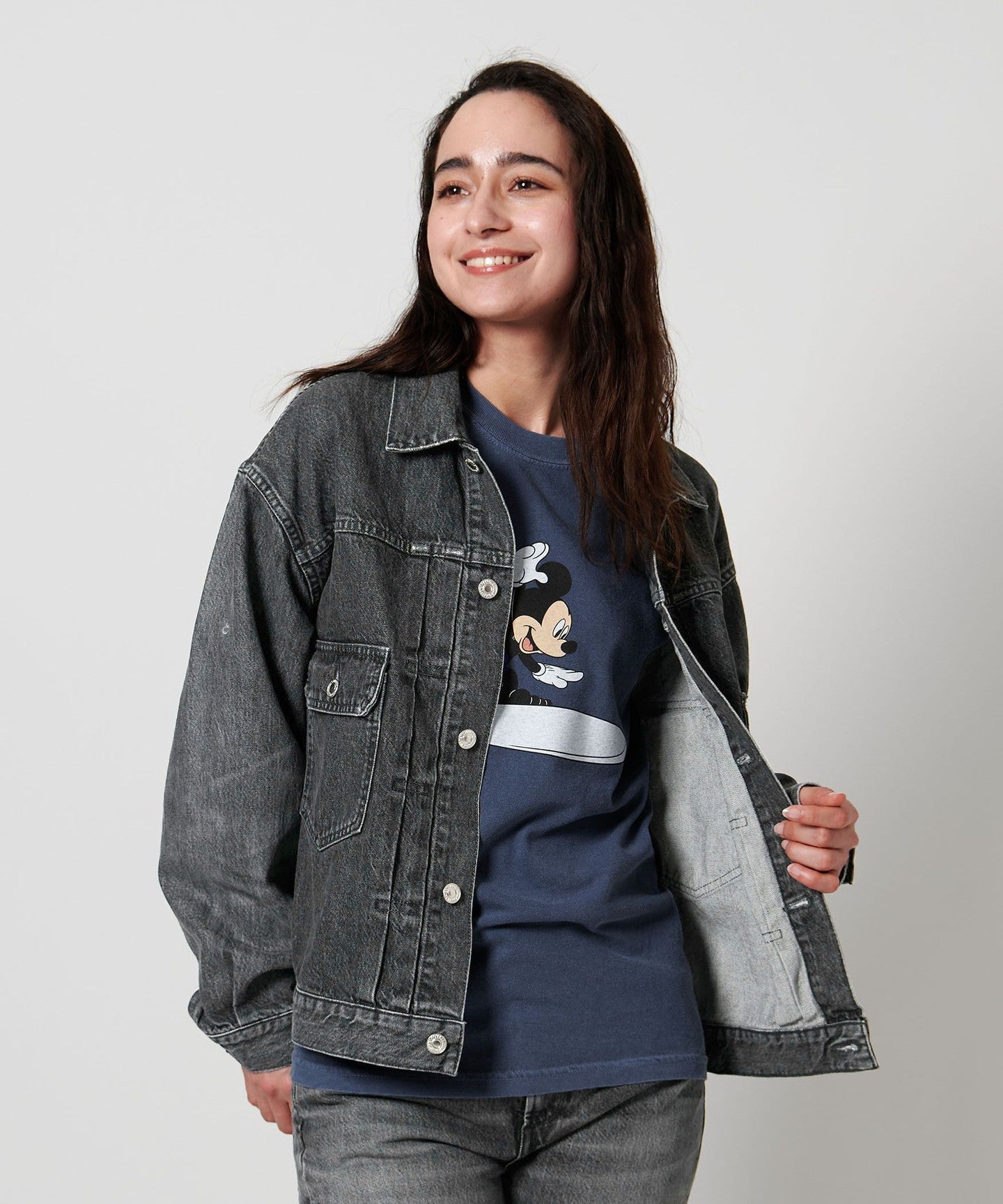 A denim jacket with a slightly used look, inspired by vintage styles from the 60s.