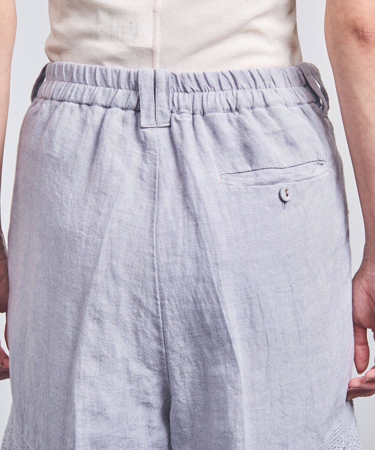 WHITE:表生地; 本体;麻100% レース部分;コットン ナイロン 裏生地;レーヨン100% LT.GRAY:表生地; 本体;麻100% レース部分;コットン ナイロン 裏生地;レーヨン100% |