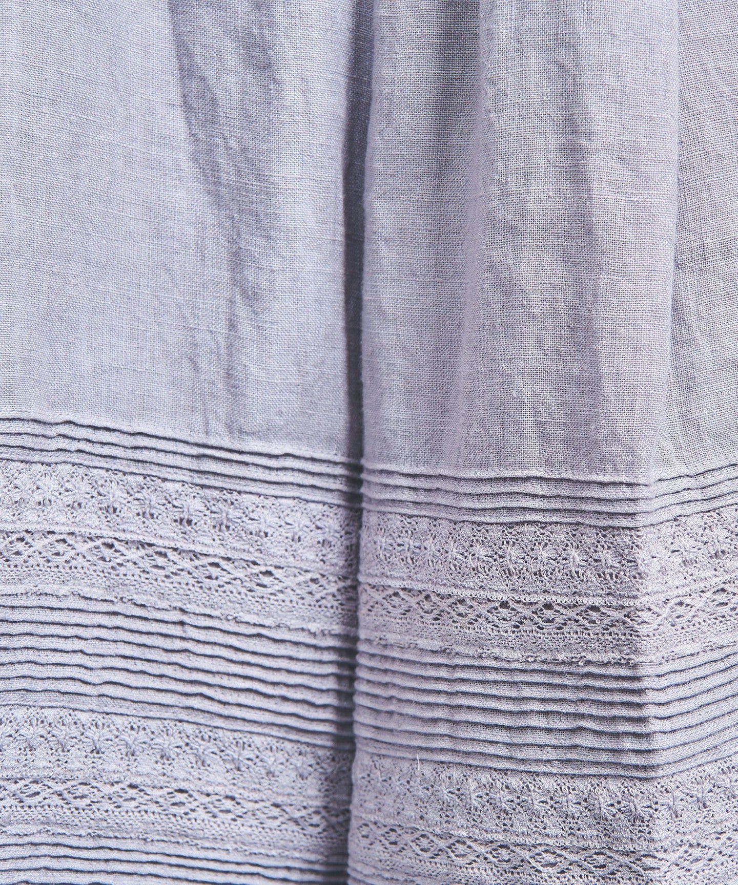 HEM The design is created by layering two types of lace with fine tucks.