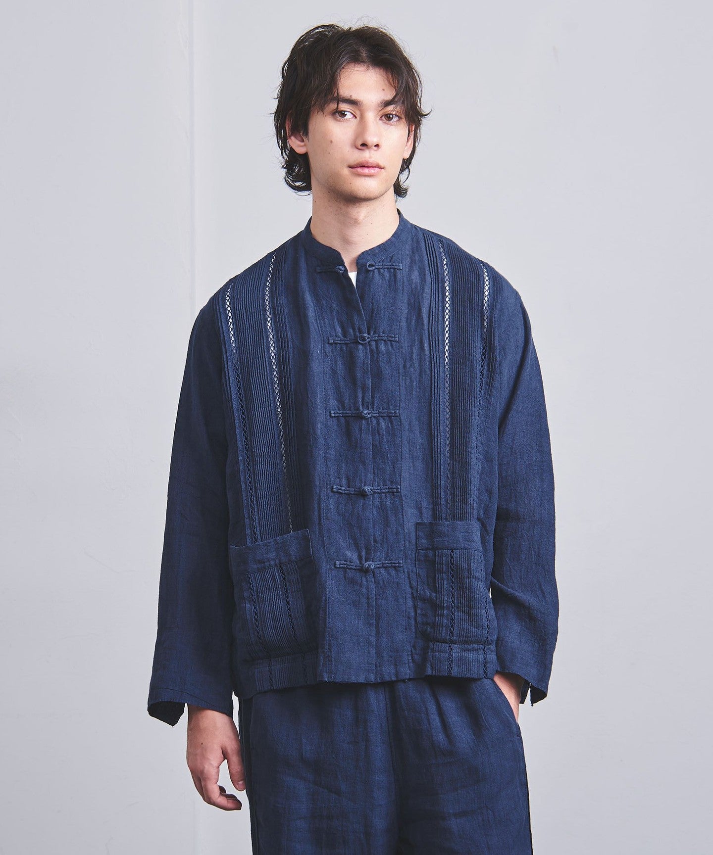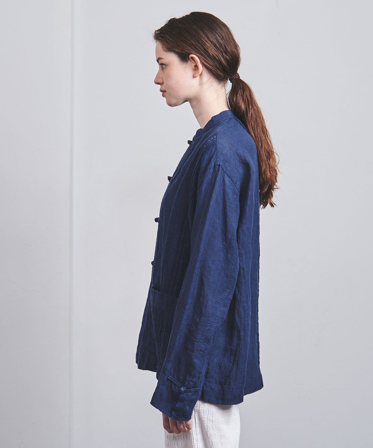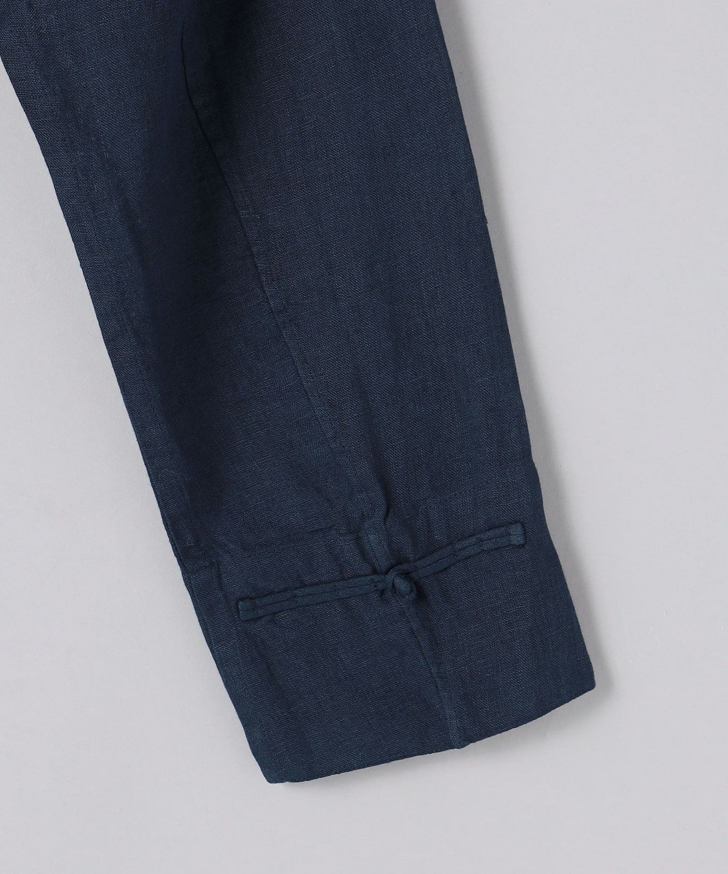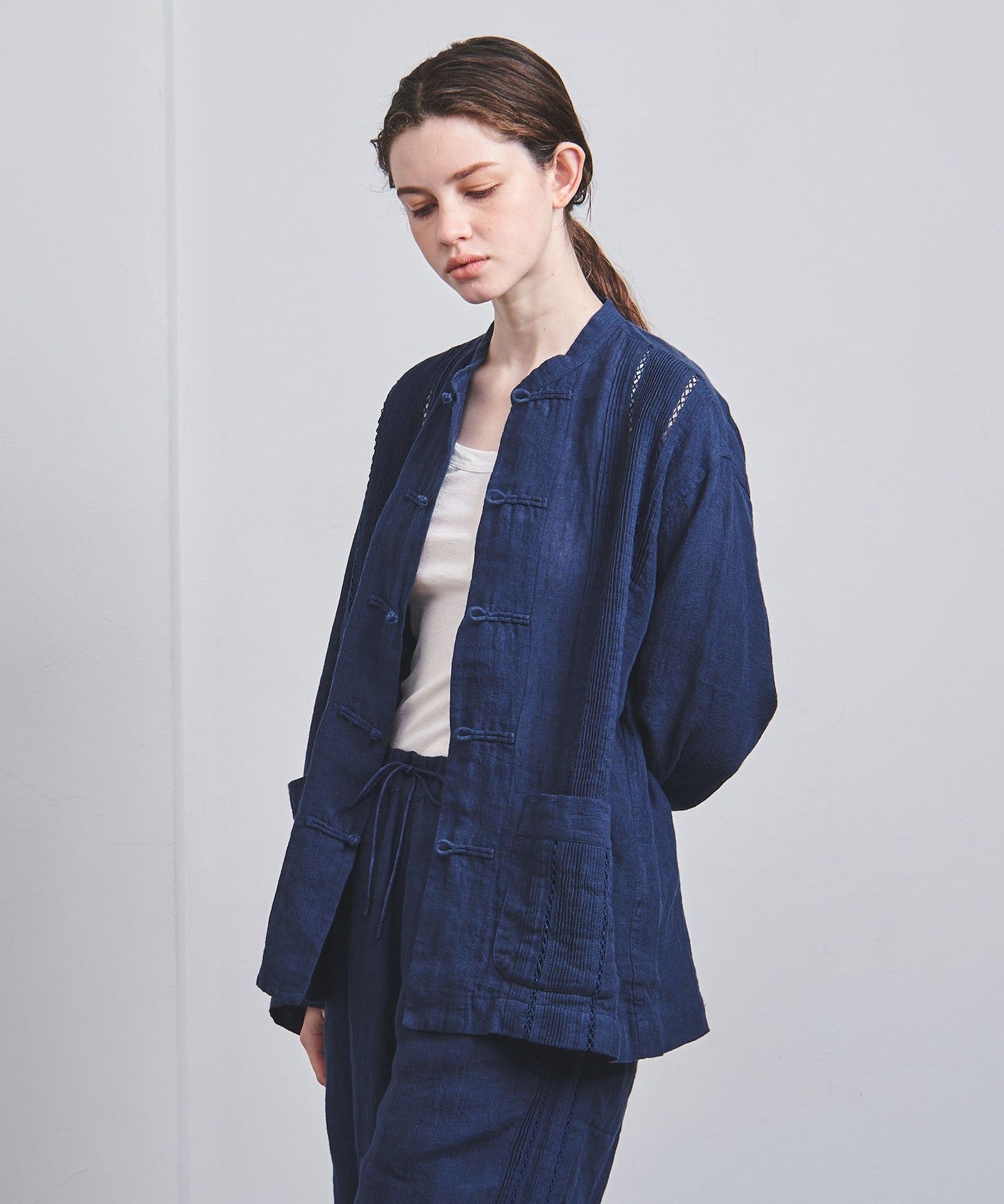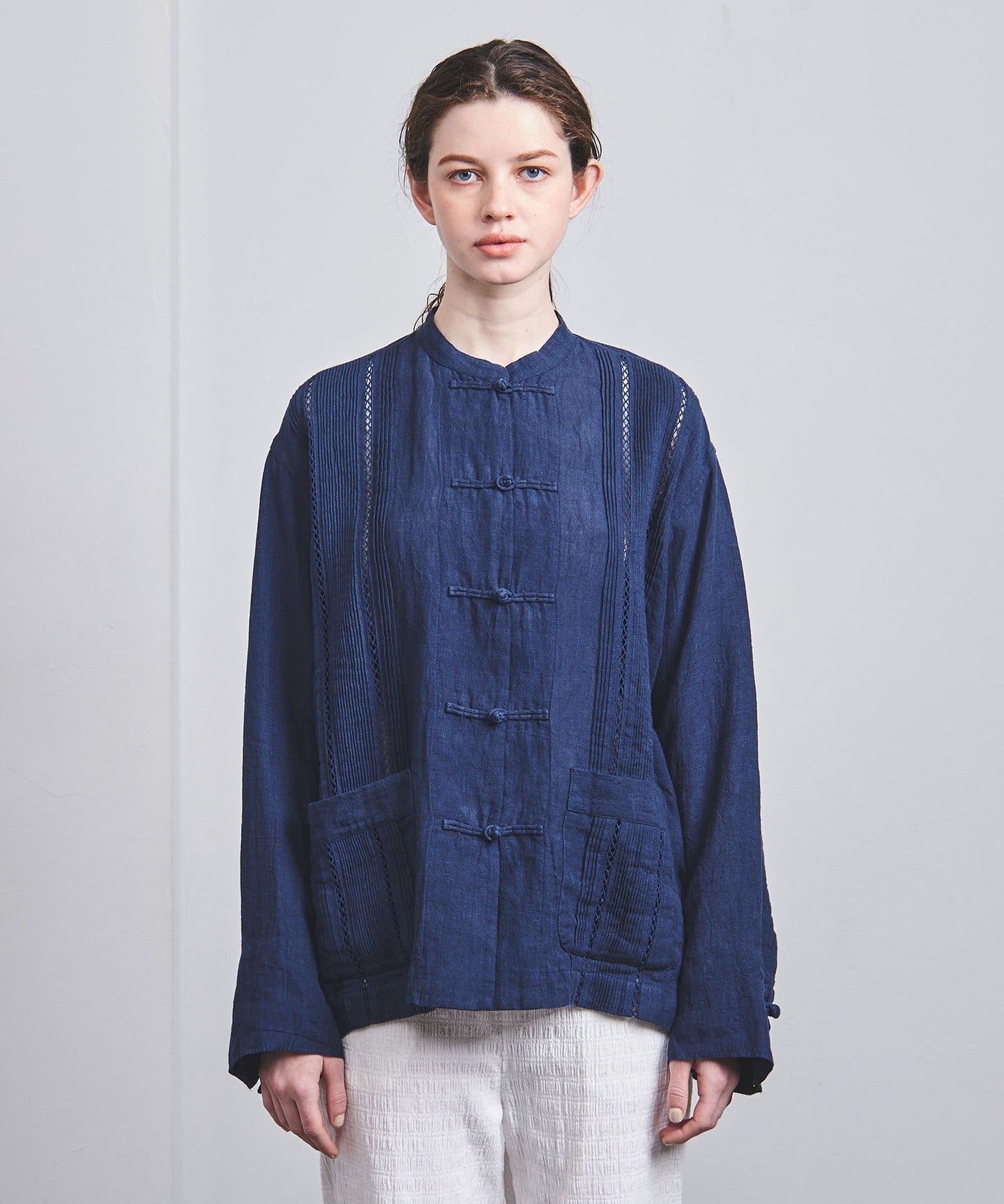 It allows the wind to pass through for a cool feeling, but is not too transparent when worn alone. We paid particular attention to the density of the material so that the luxurious volume of the fabric created by the tucks can be beautifully displayed.