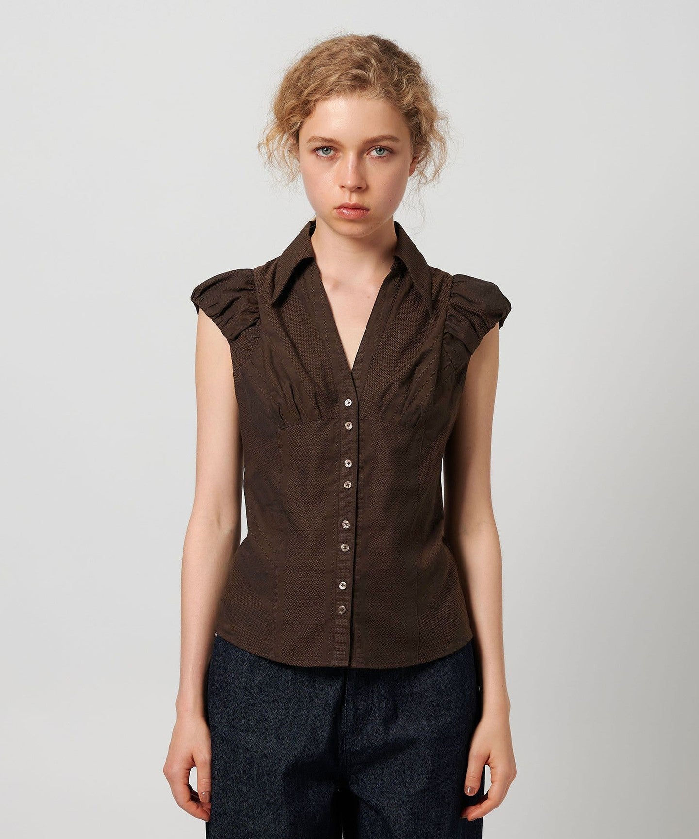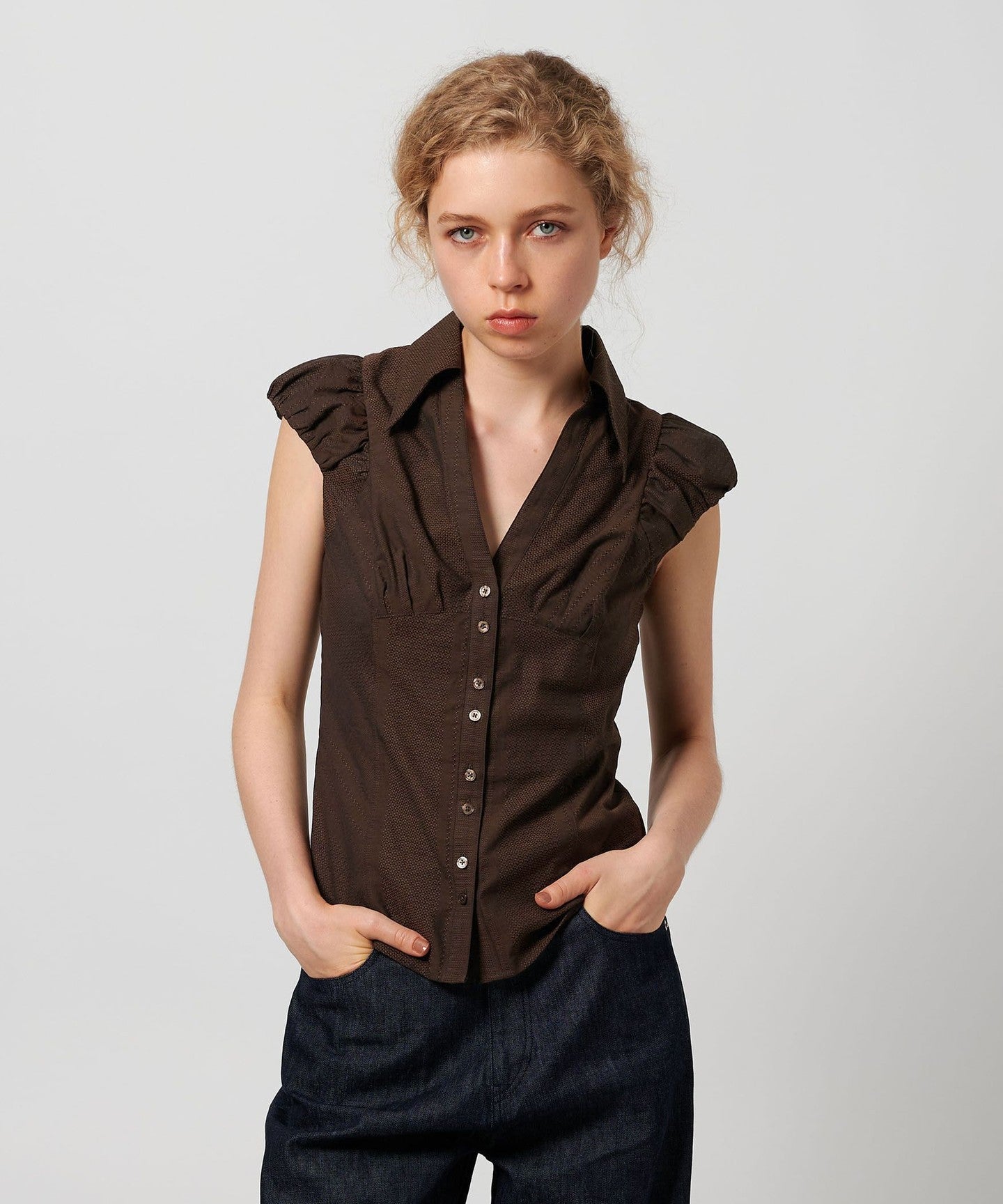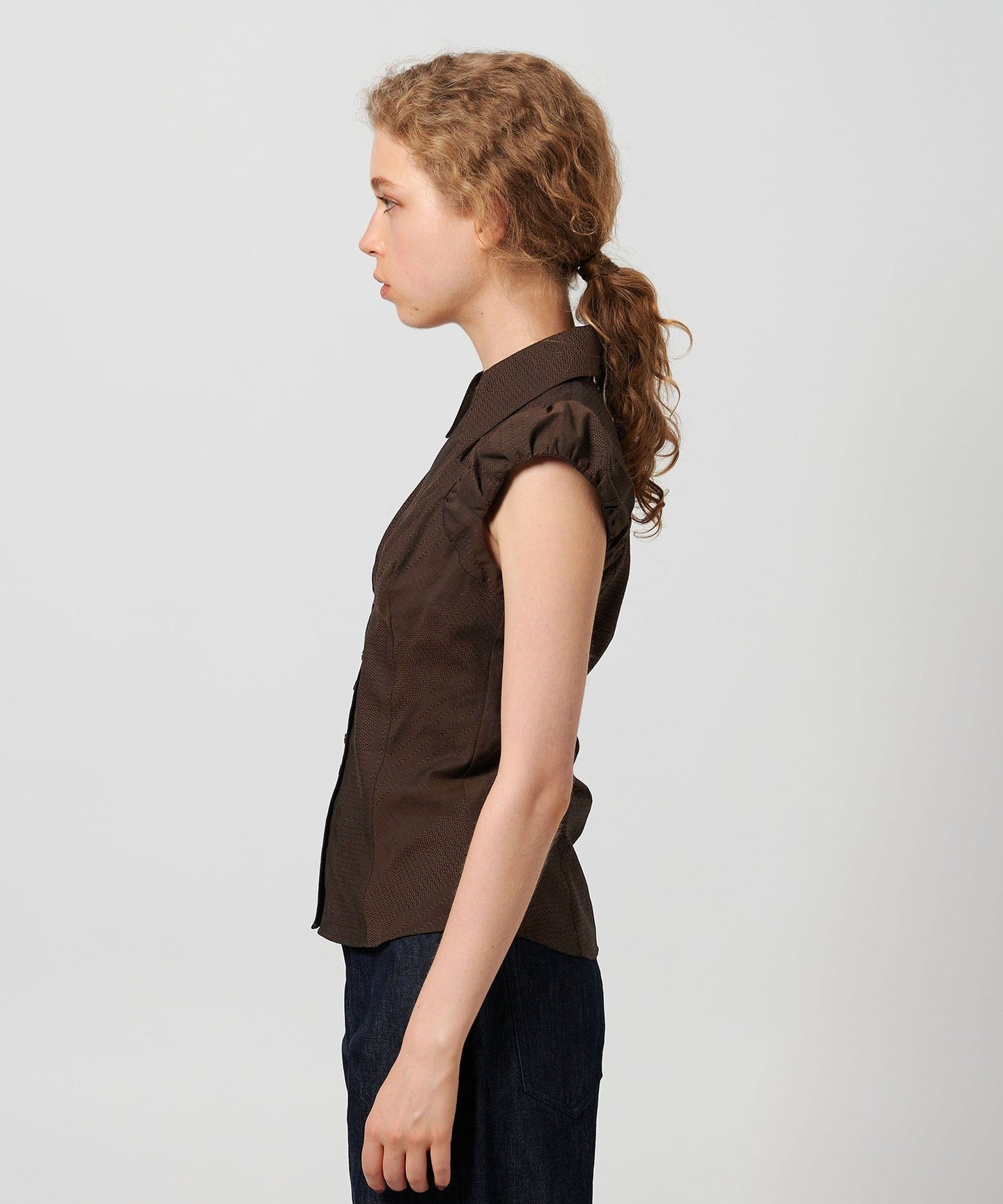 A shirt with a fitted silhouette that contours to the body line and is shaped around the waist.
