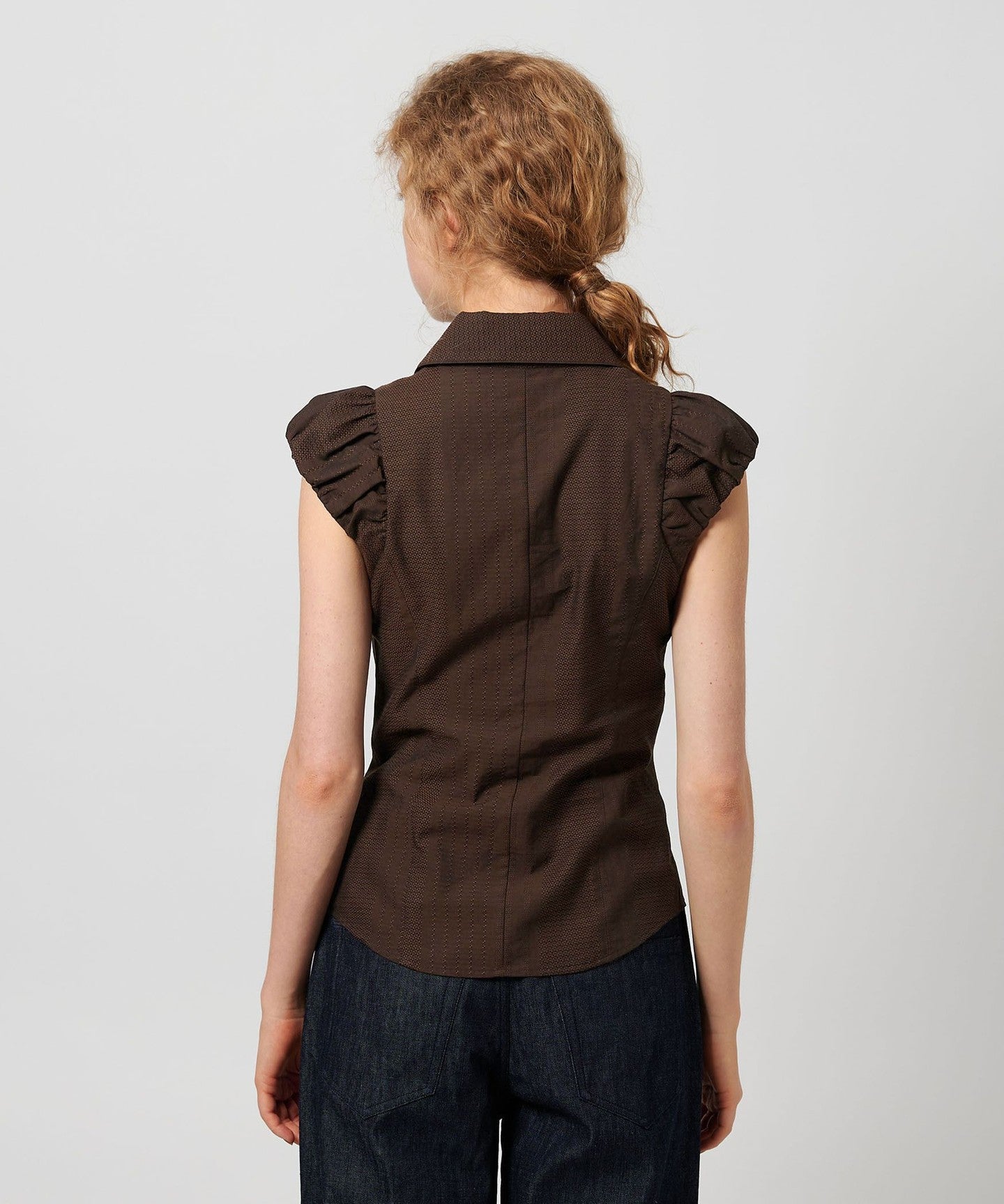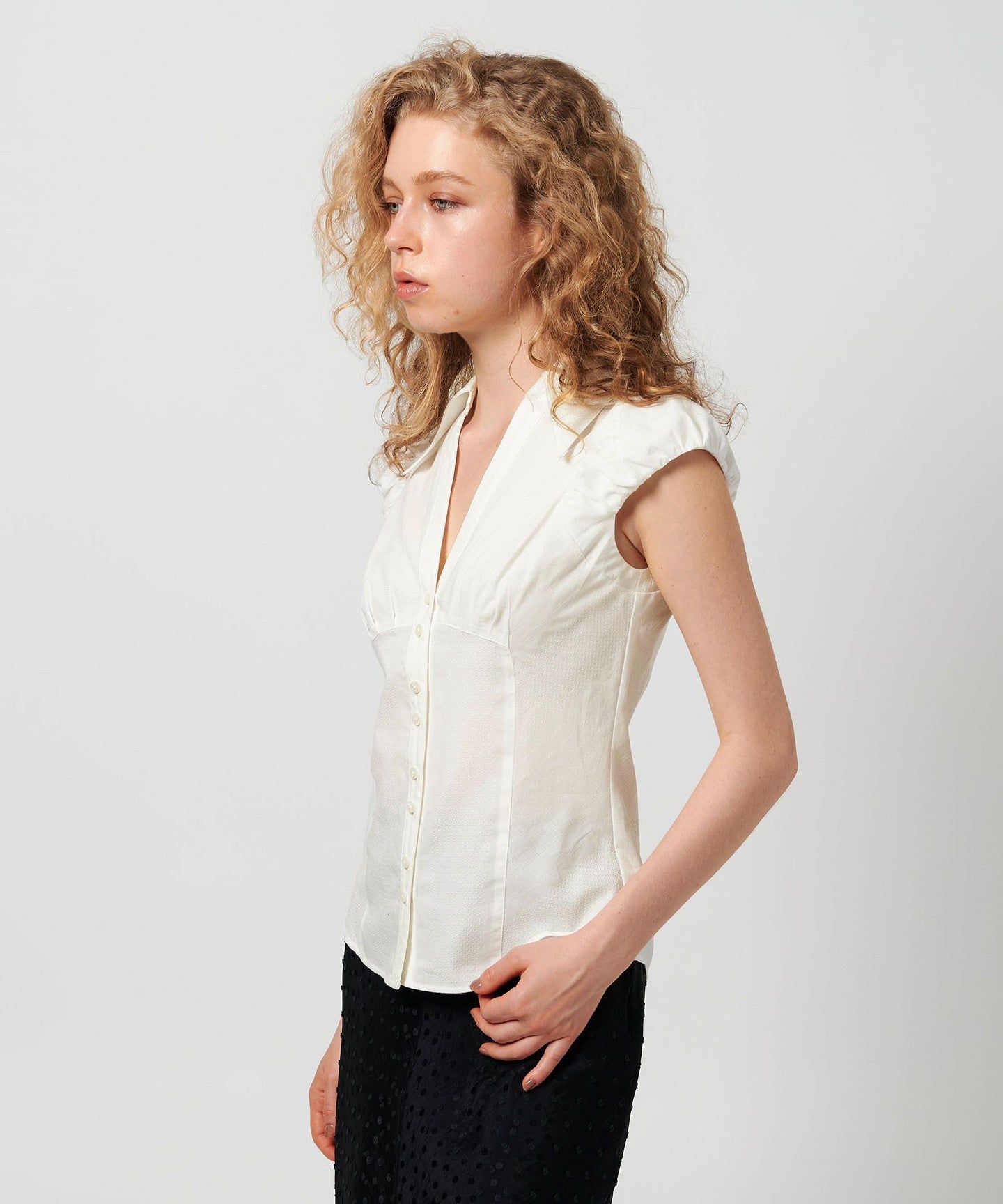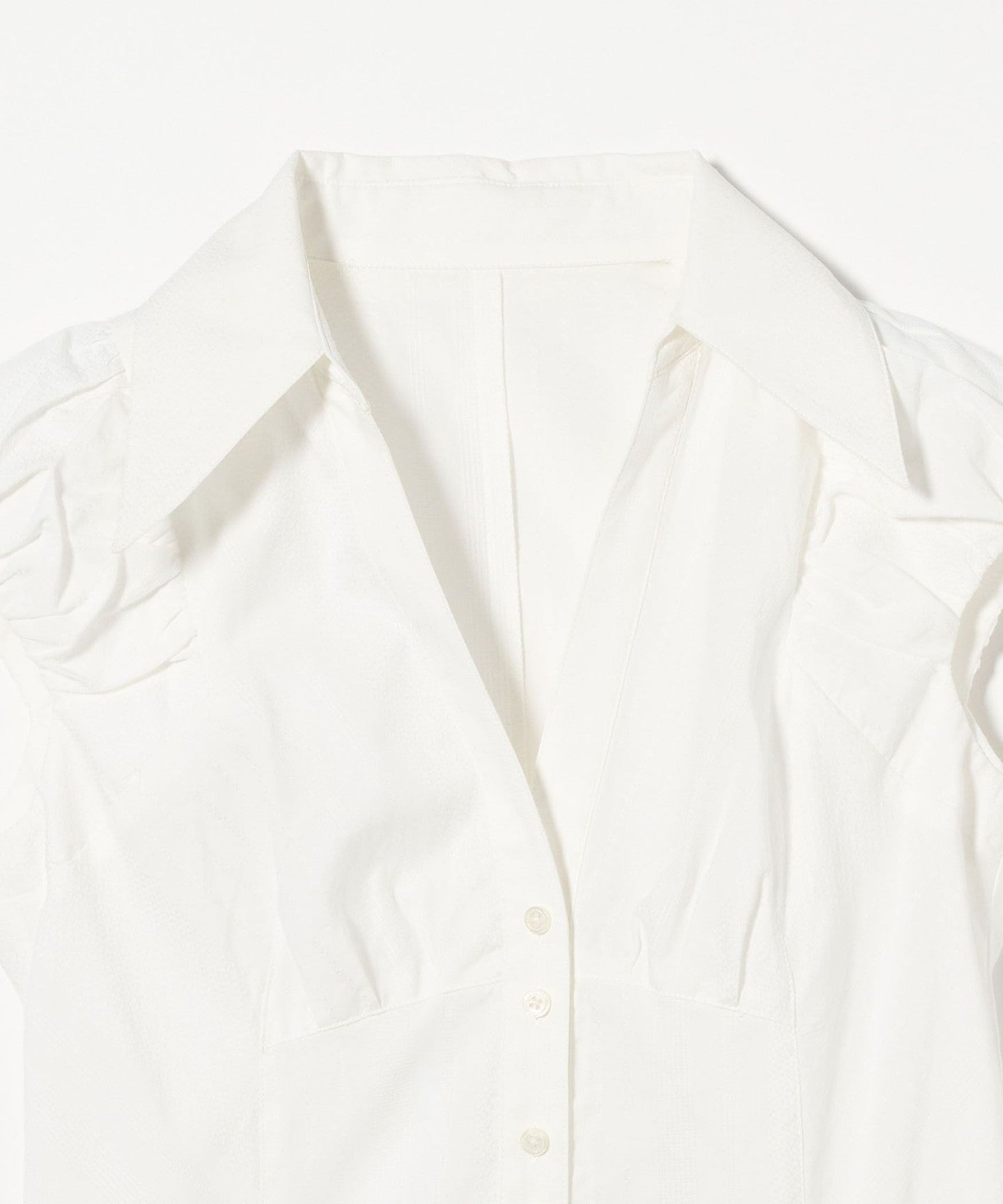 Another highlight is the compact gathered sleeves that accentuate the body silhouette.