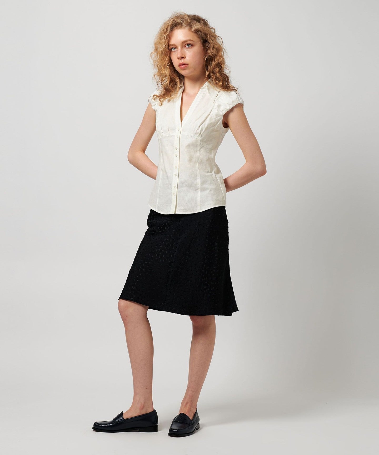 To avoid being too sweet, leave the buttons at the neck and hem open to show some skin for a healthy look.