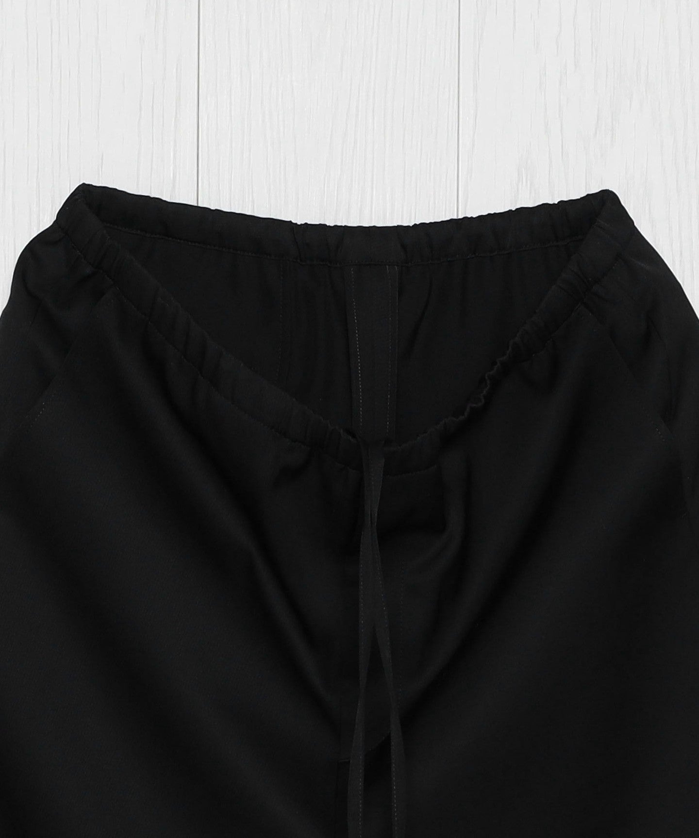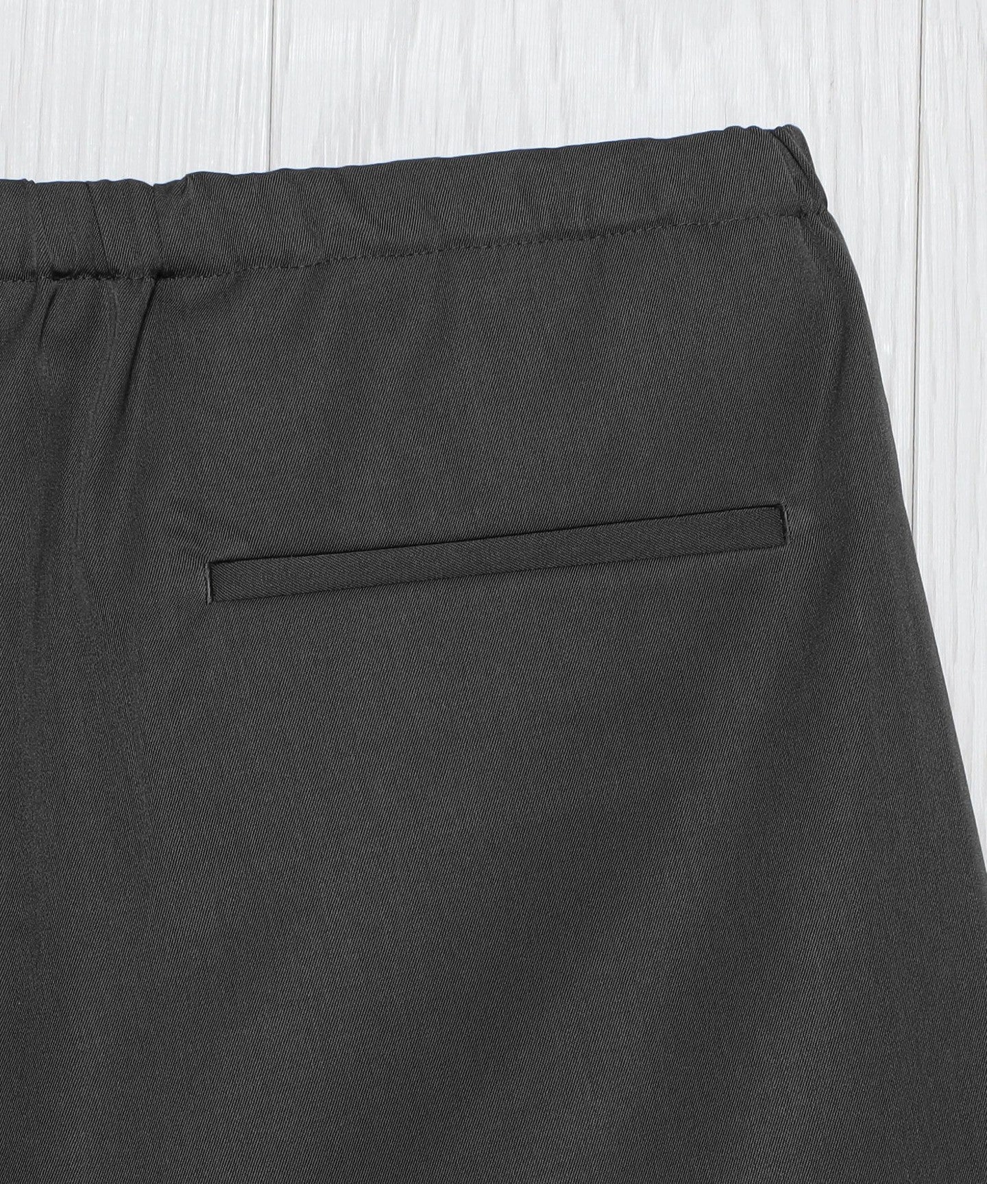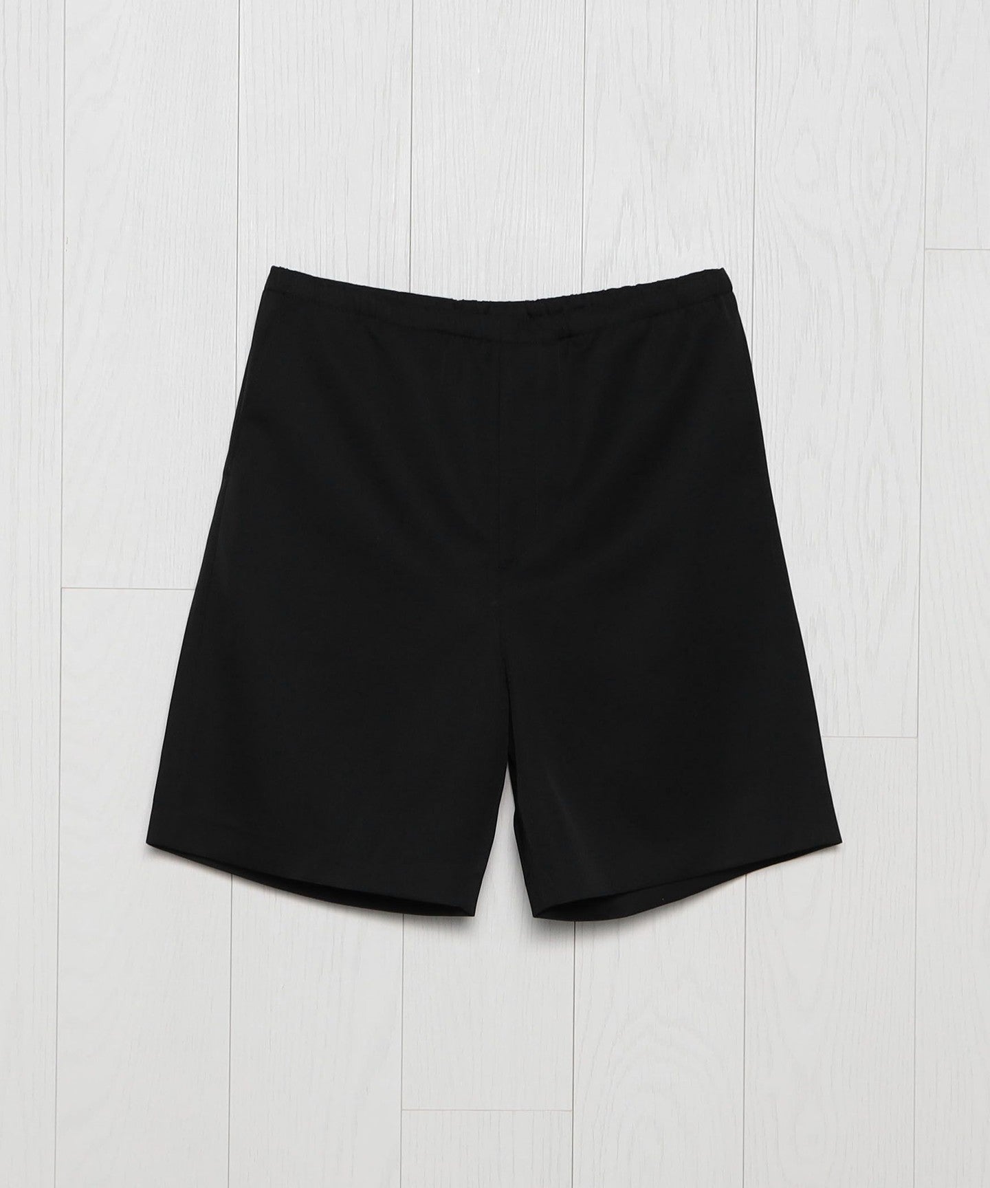 These easy shorts feature a minimalist design and a moderately loose, oversized silhouette. They are made from gabardine, woven with high-quality worsted yarn at a high density. Furthermore, by using an off-scale and impregnation process, the fuzz on the wool surface is eliminated, giving them a clear finish. They offer a comfortable balance that is appealing, even without a lining. The simple, easy cut and lightweight length made from elegant material make them easy to pair with a variety of tops, creating a casual style with an urban vibe.
