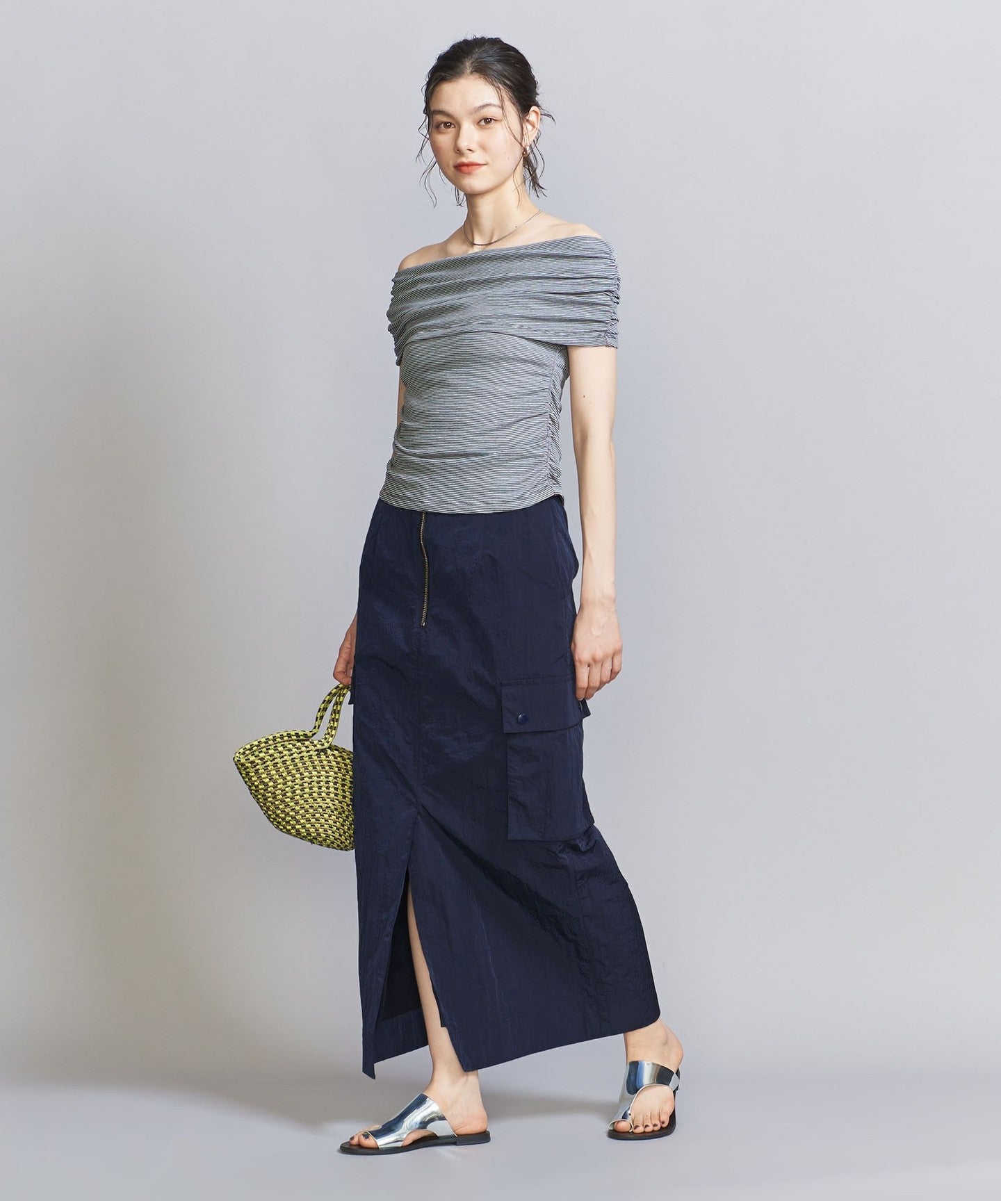We recommend wearing a short shirt or other style that incorporates a silhouette balance that is typical of this season.