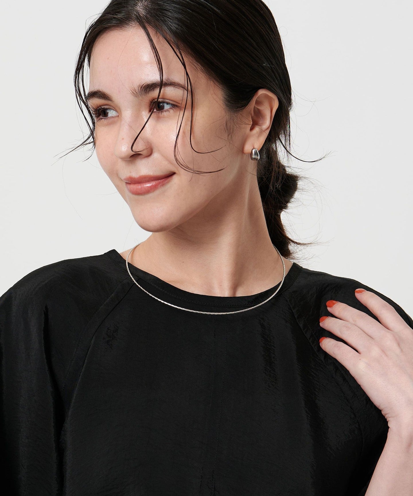 The design can be worn like a choker, but it gives a clean look to the neck and a refined impression around the face.