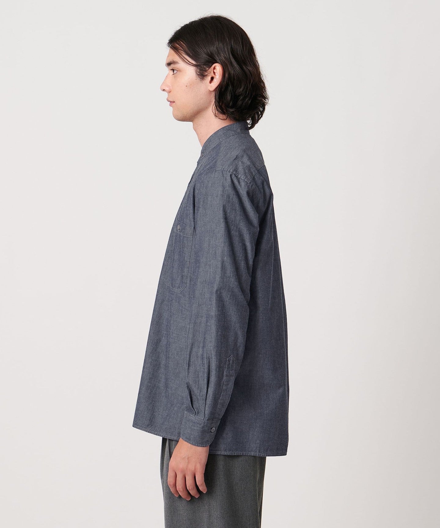 Denim band collar shirt