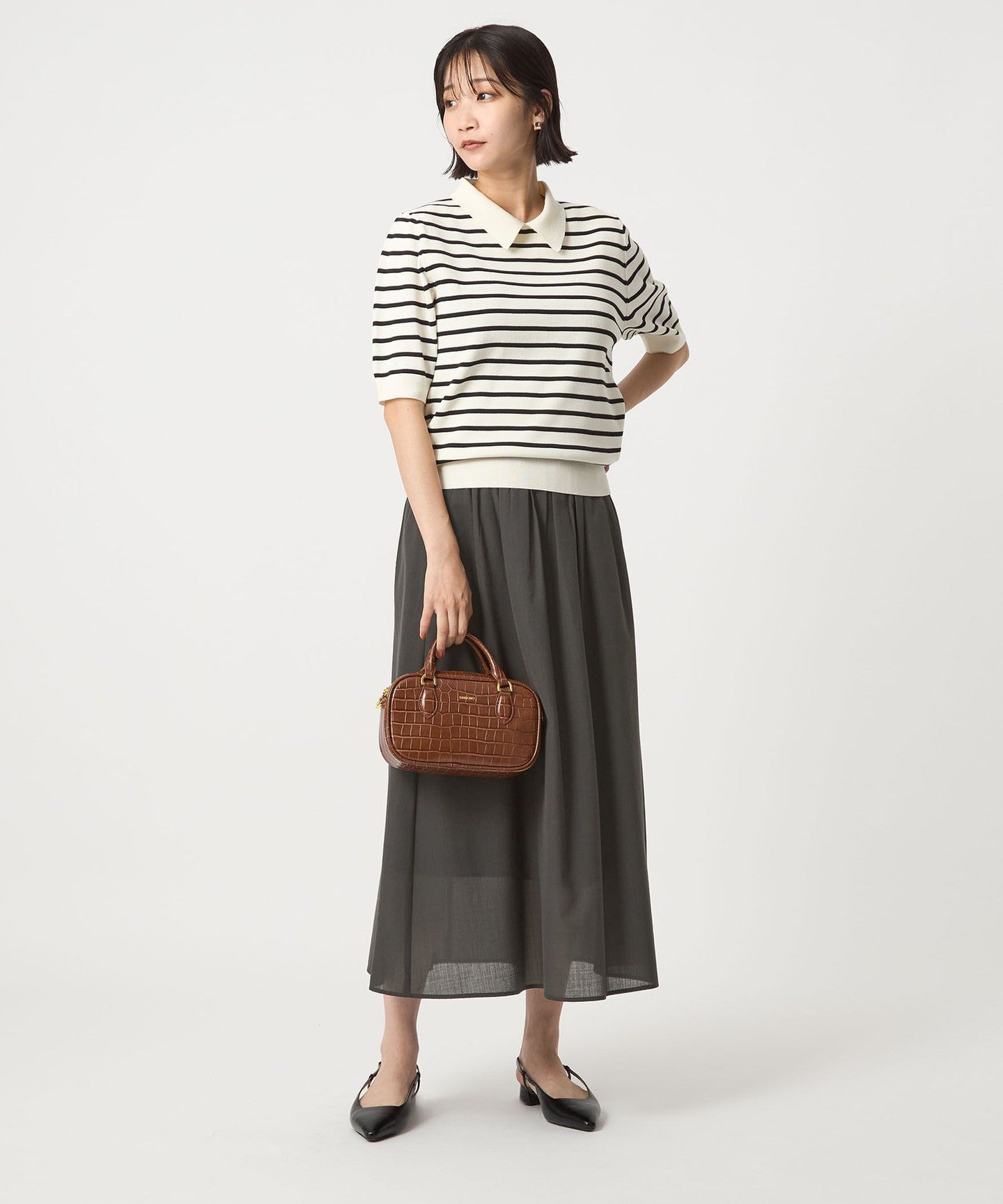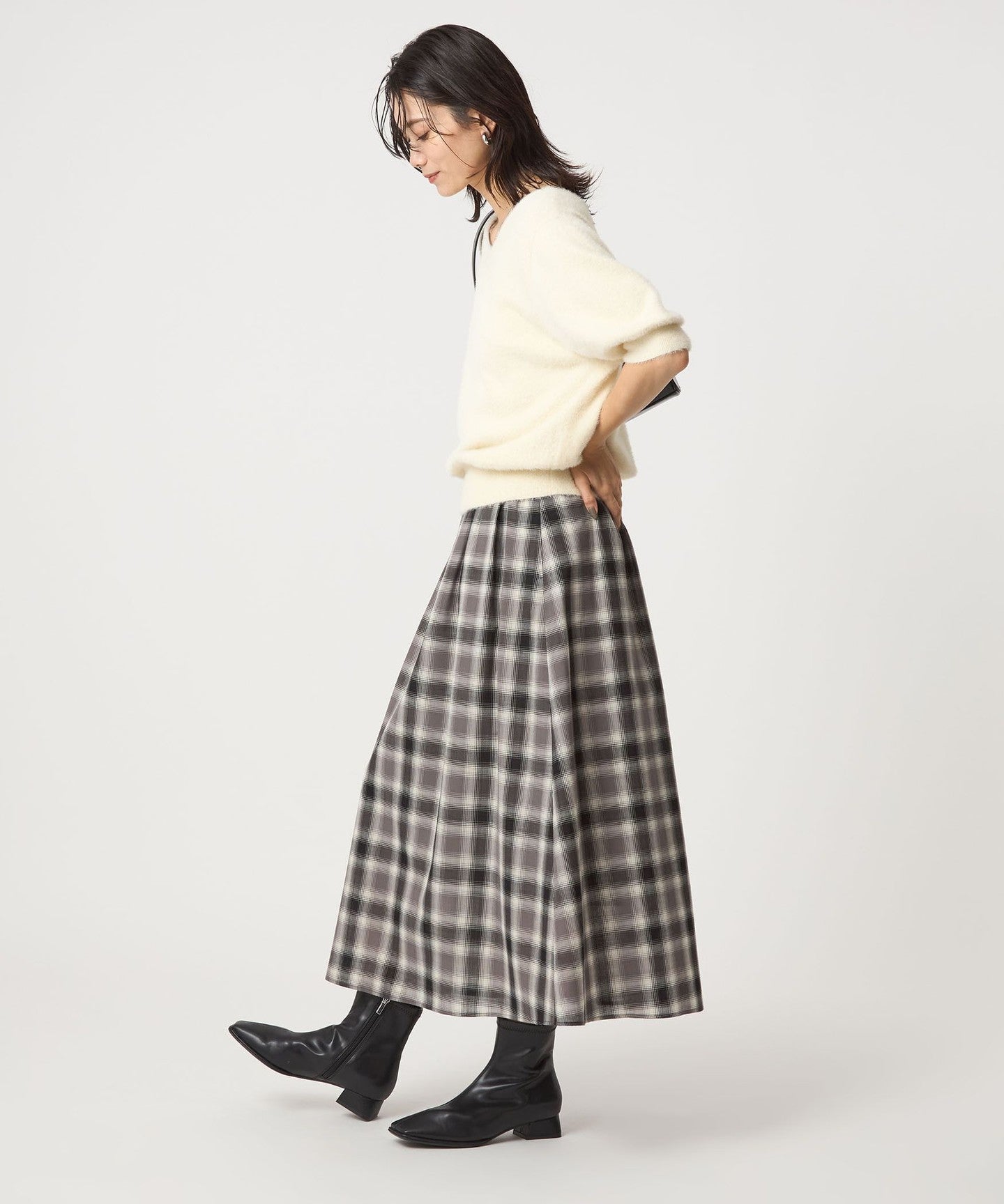 This is a versatile piece that can be worn throughout the seasons by pairing it with different items, from cut and sew tops to knitwear.