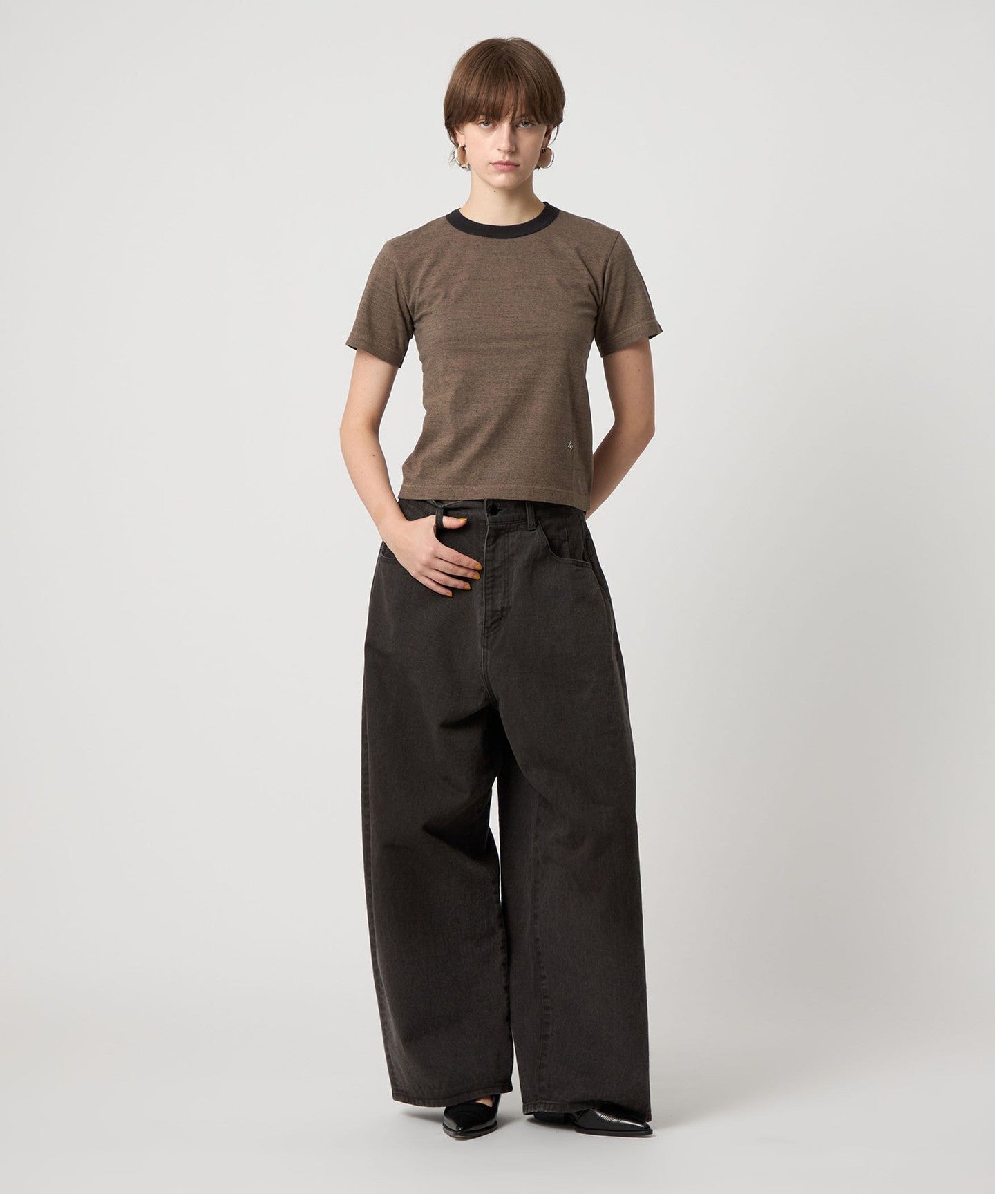 ワイドボトムの上にすっきりと着用できるリンガーTシャツ。