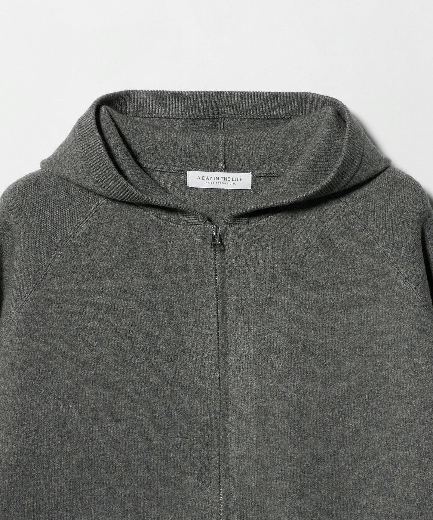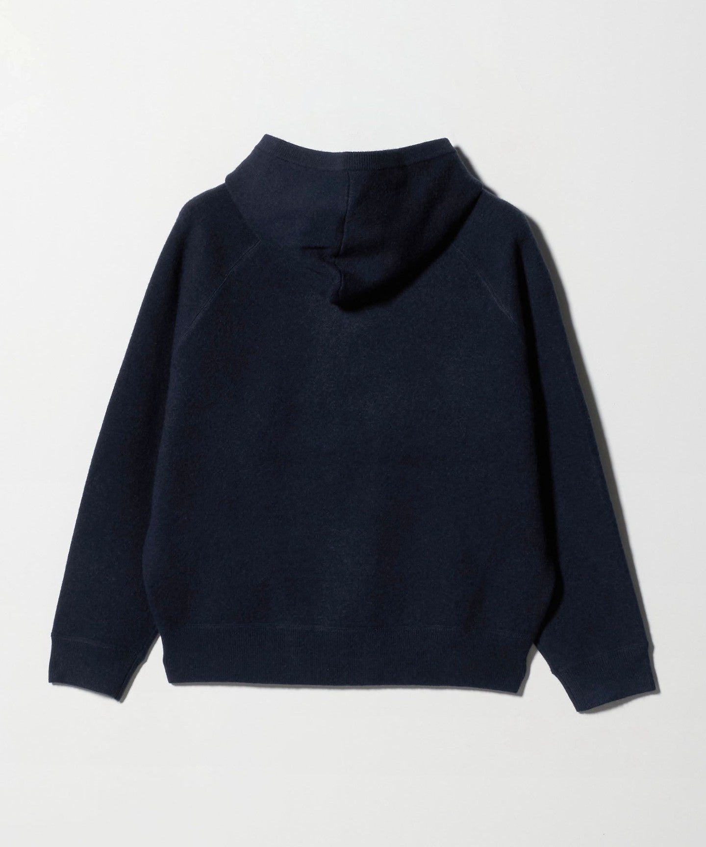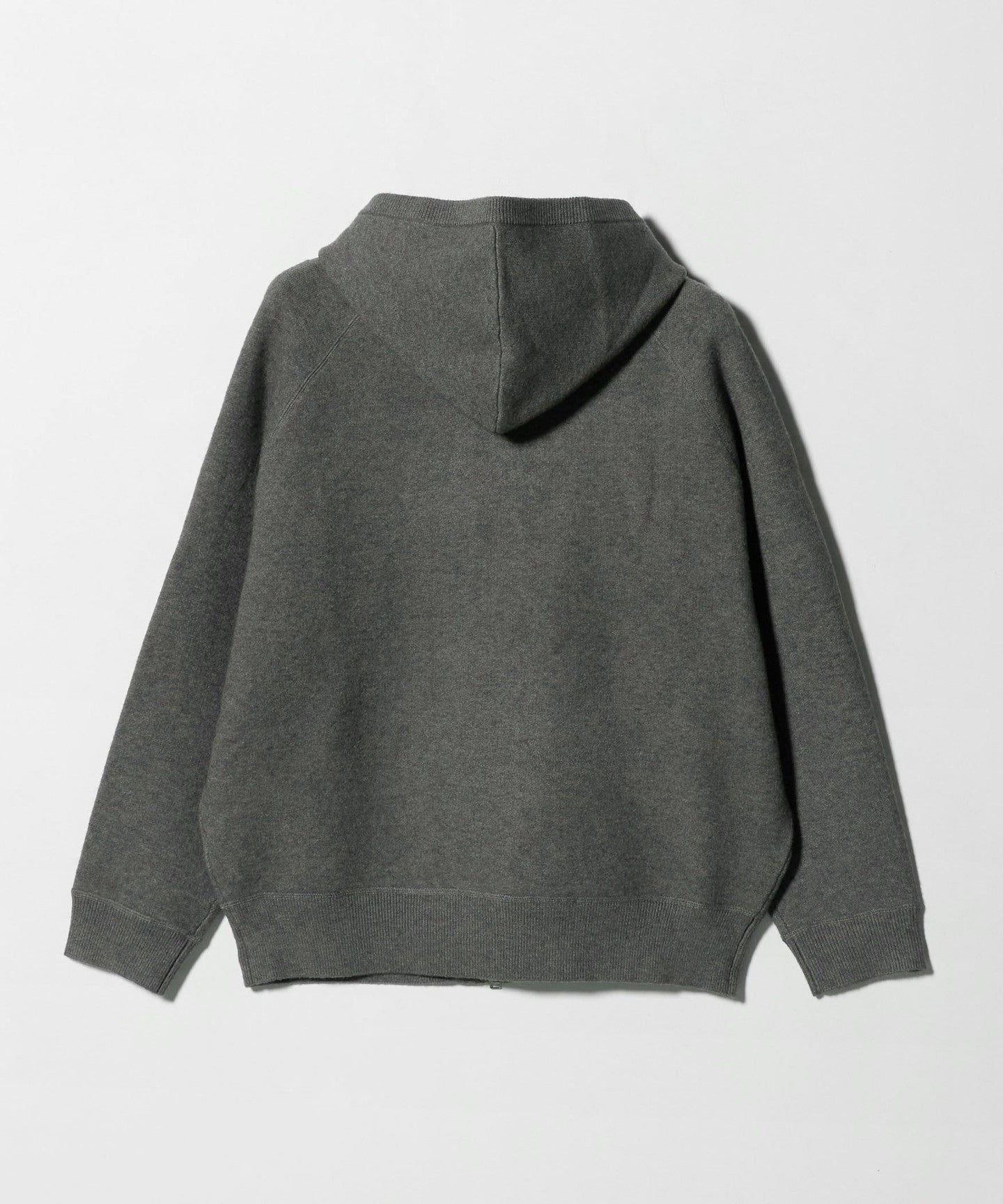 フードがダレないようにハリのあるダブルジャガードで編み立てました.