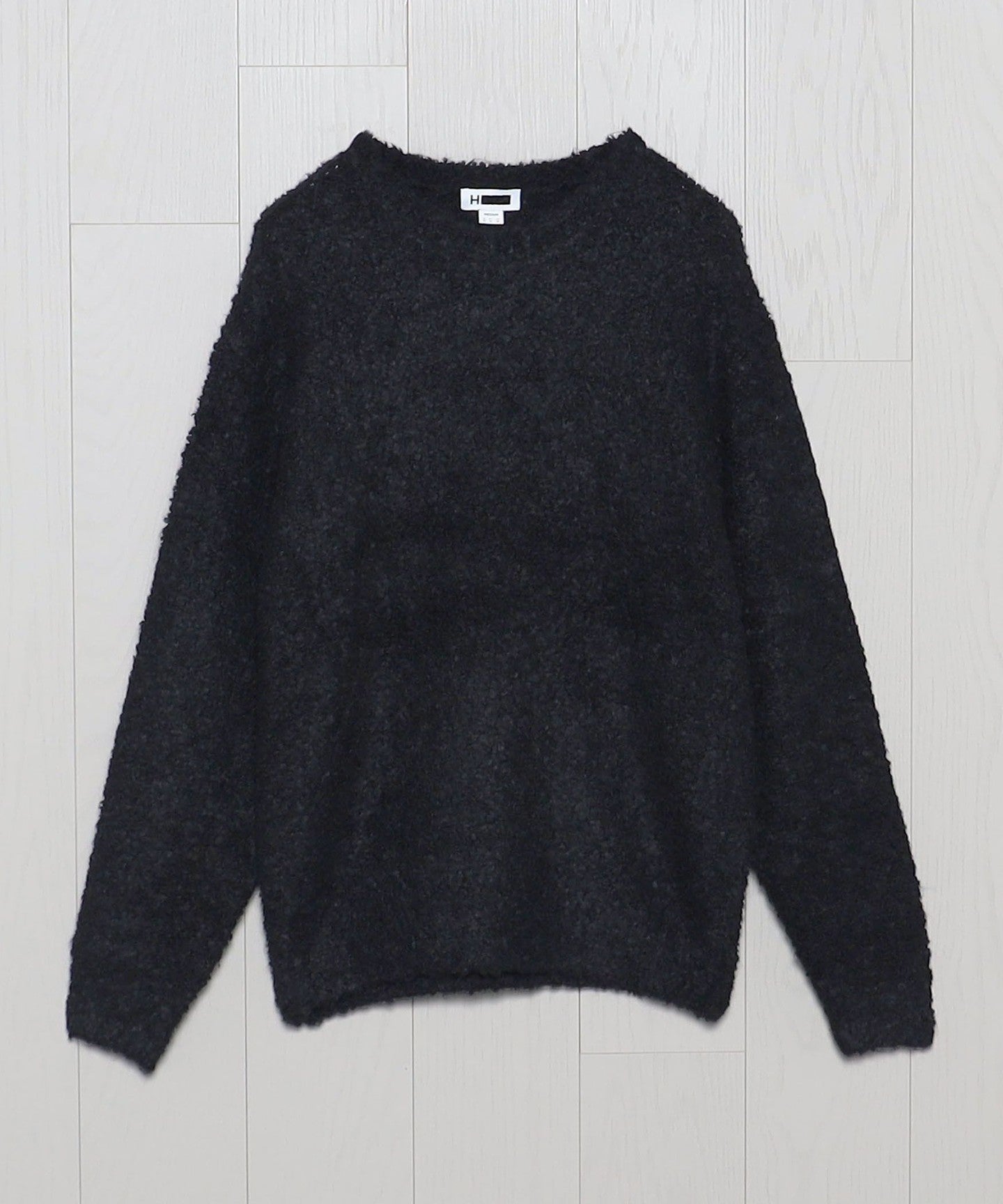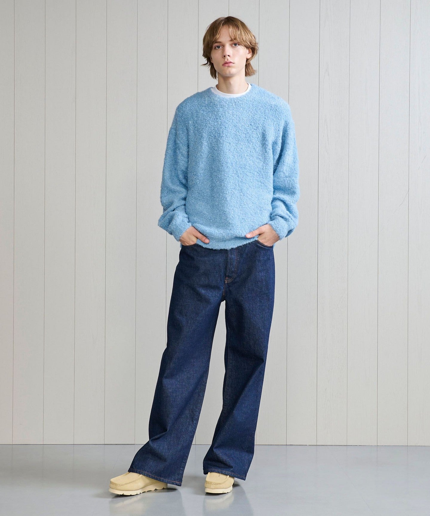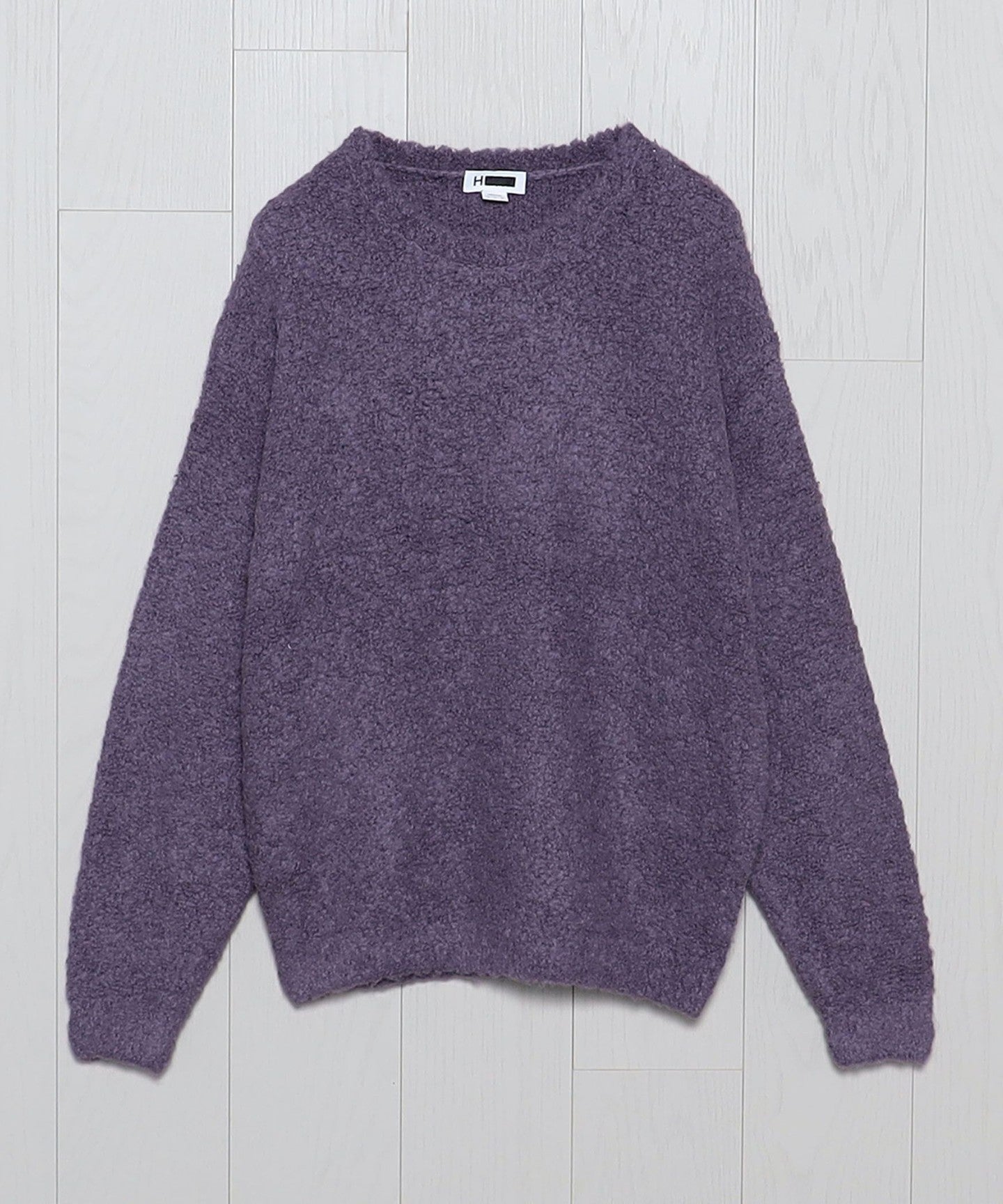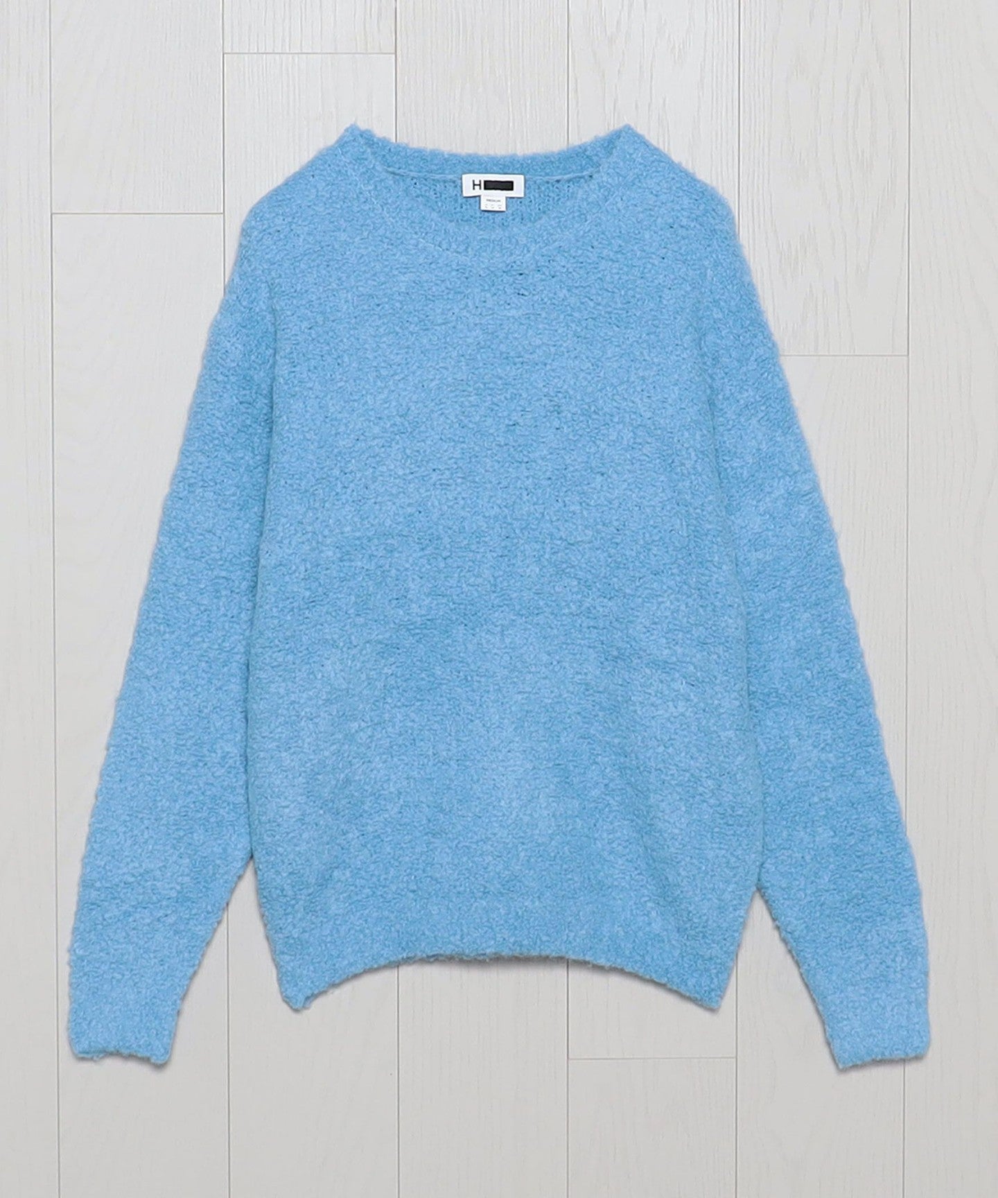 This crew neck knit boasts rich color and is crafted using yarn from the prestigious Italian company LINEAPIU. It features a three-dimensional surface texture, knitted with a poodle-like looped yarn. The fullness and lightness of the sleeves make it perfect for fall. Available in three sizes, it offers a range of classic and eye-catching colors that will add a touch of style to any outfit. While creating an impressive look, its relaxed, unpretentious feel makes it a recommended piece for a playful style.