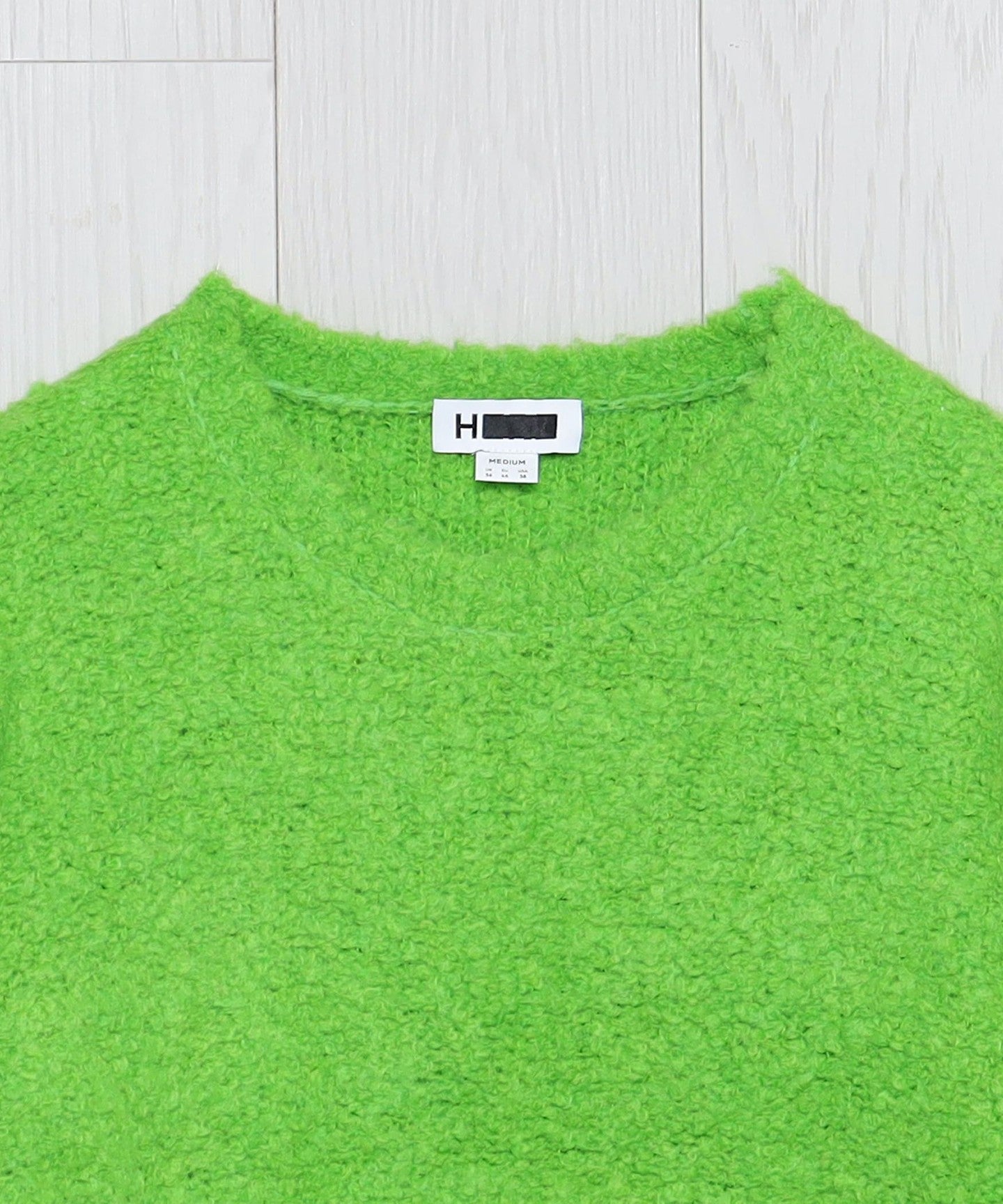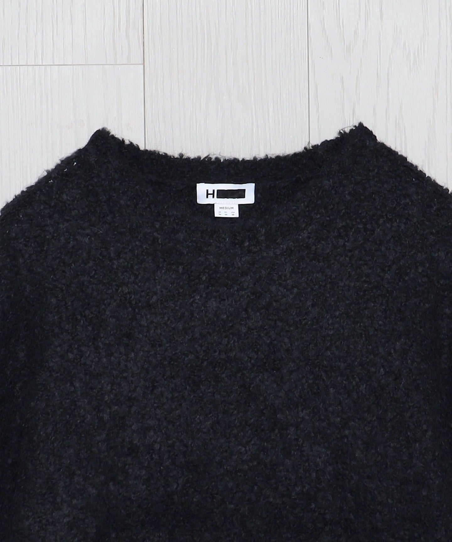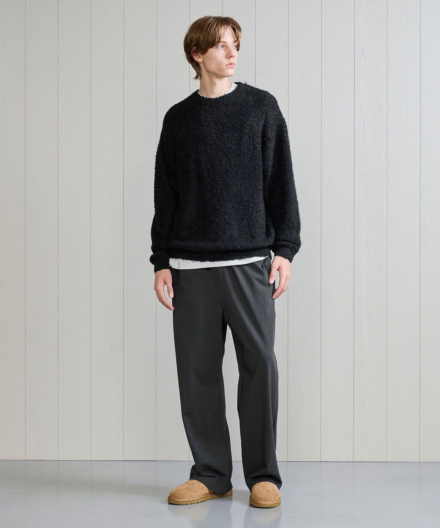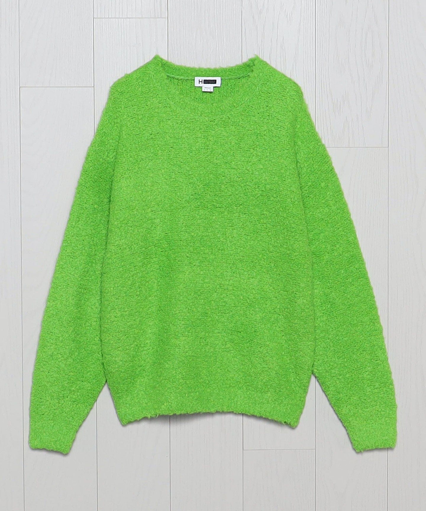 This crew neck knit boasts rich color and is crafted using yarn from the prestigious Italian company LINEAPIU. It features a three-dimensional surface texture, knitted with a poodle-like looped yarn. The fullness and lightness of the sleeves make it perfect for fall. Available in three sizes, it offers a range of classic and eye-catching colors that will add a touch of style to any outfit. While creating an impressive look, its relaxed, unpretentious feel makes it a recommended piece for a playful style.