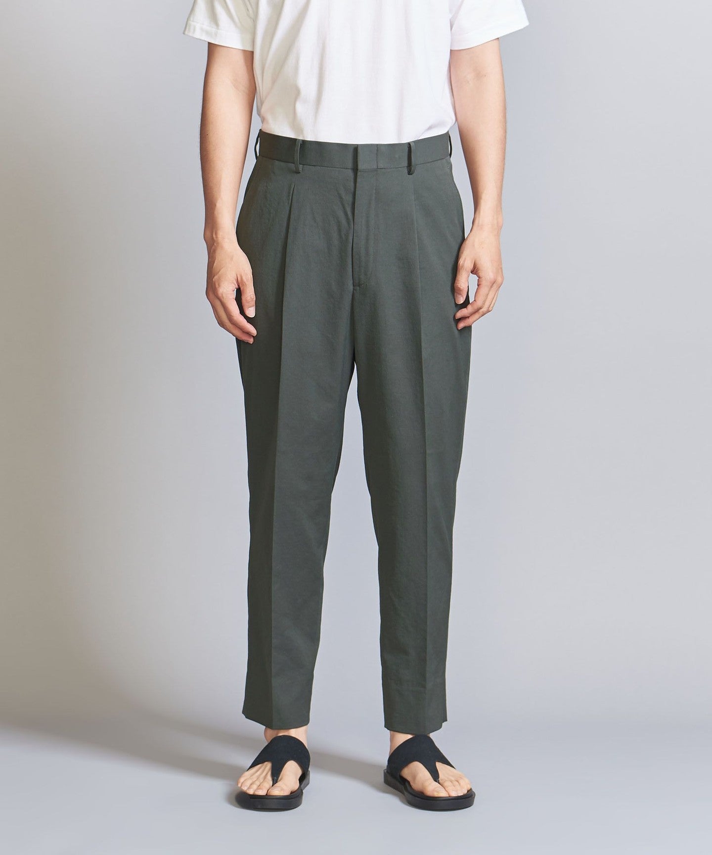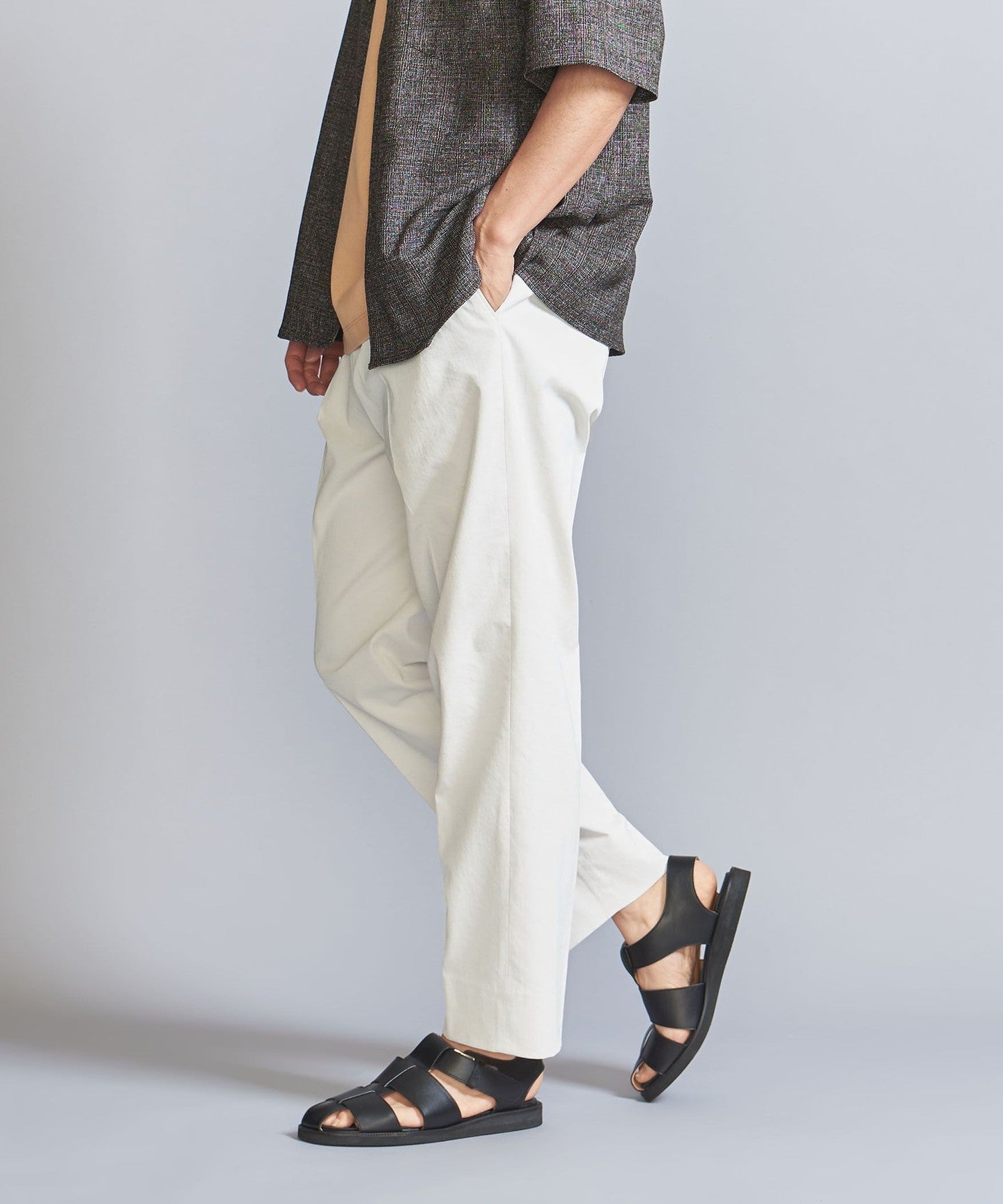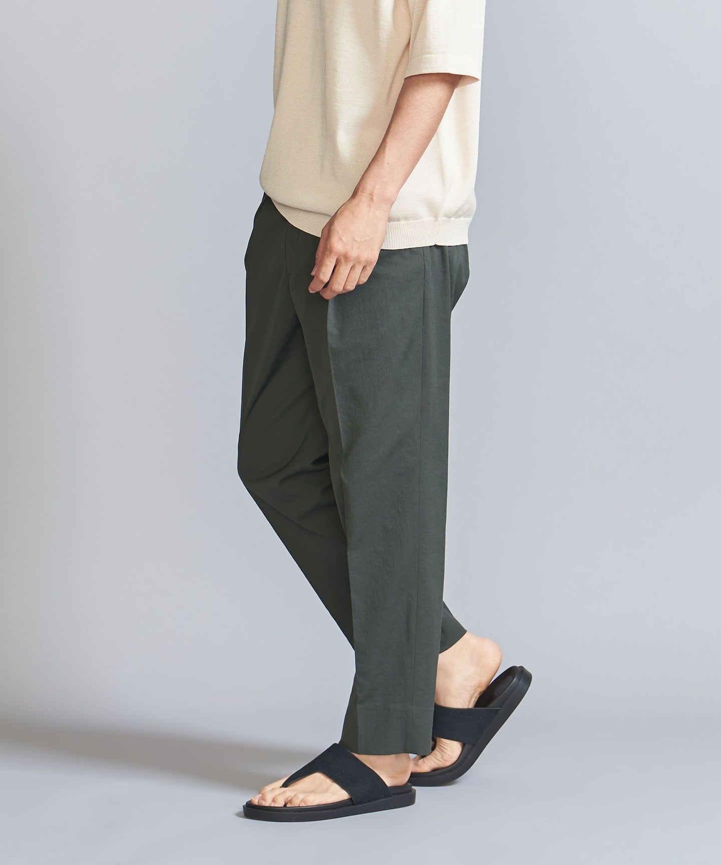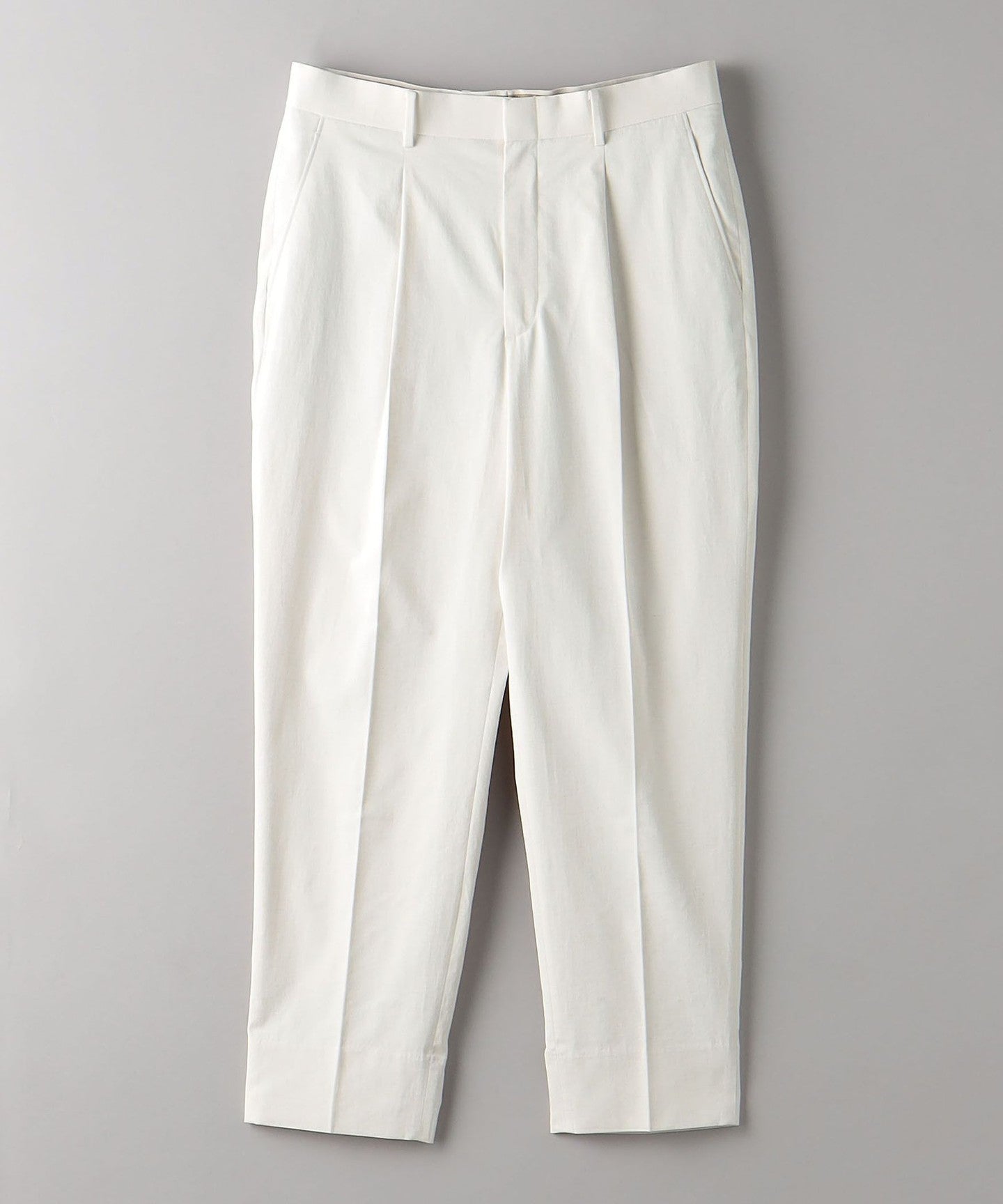 These tapered slacks have a simple design and are made from a refreshing summery material, making them suitable for both formal and casual wear.