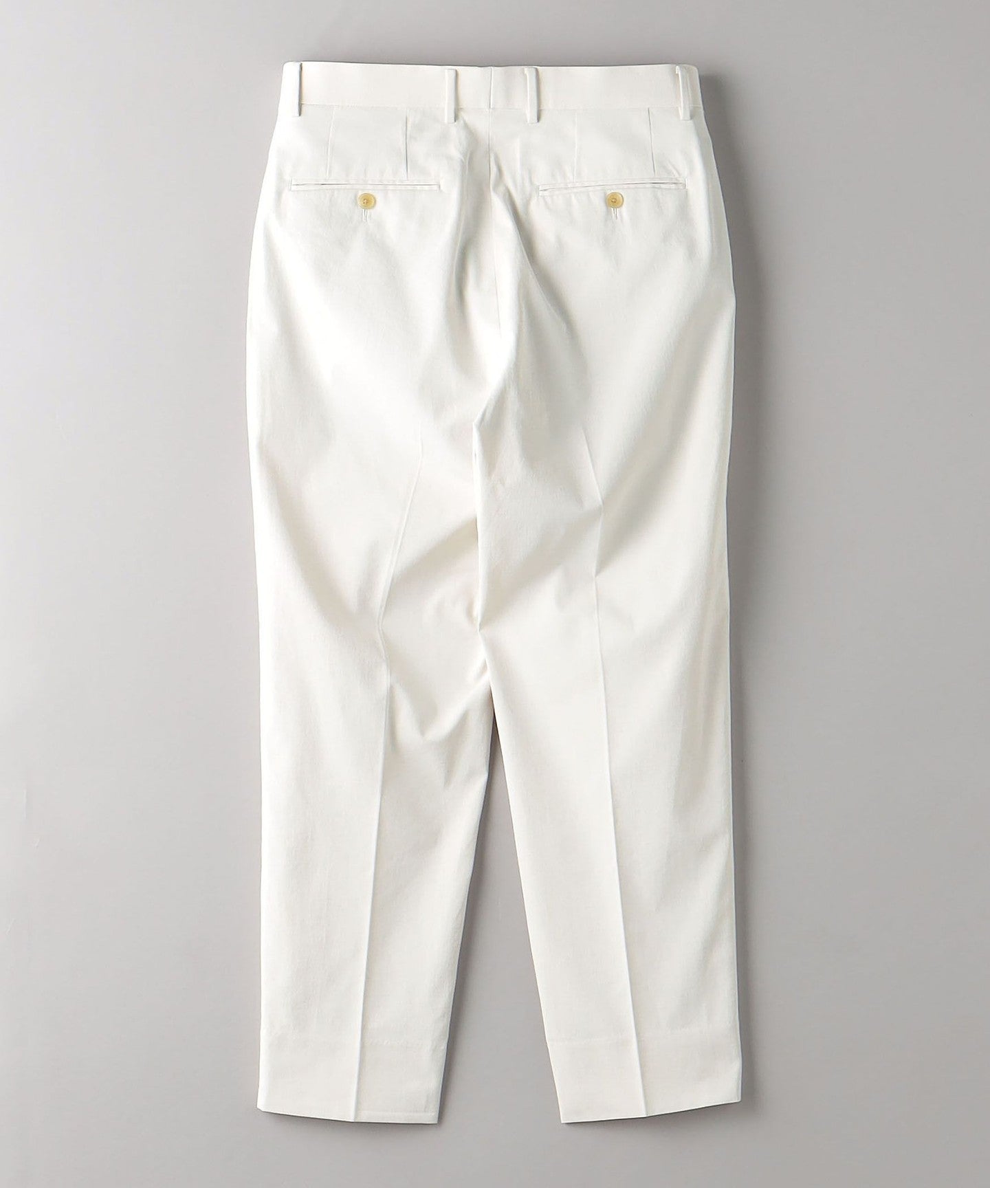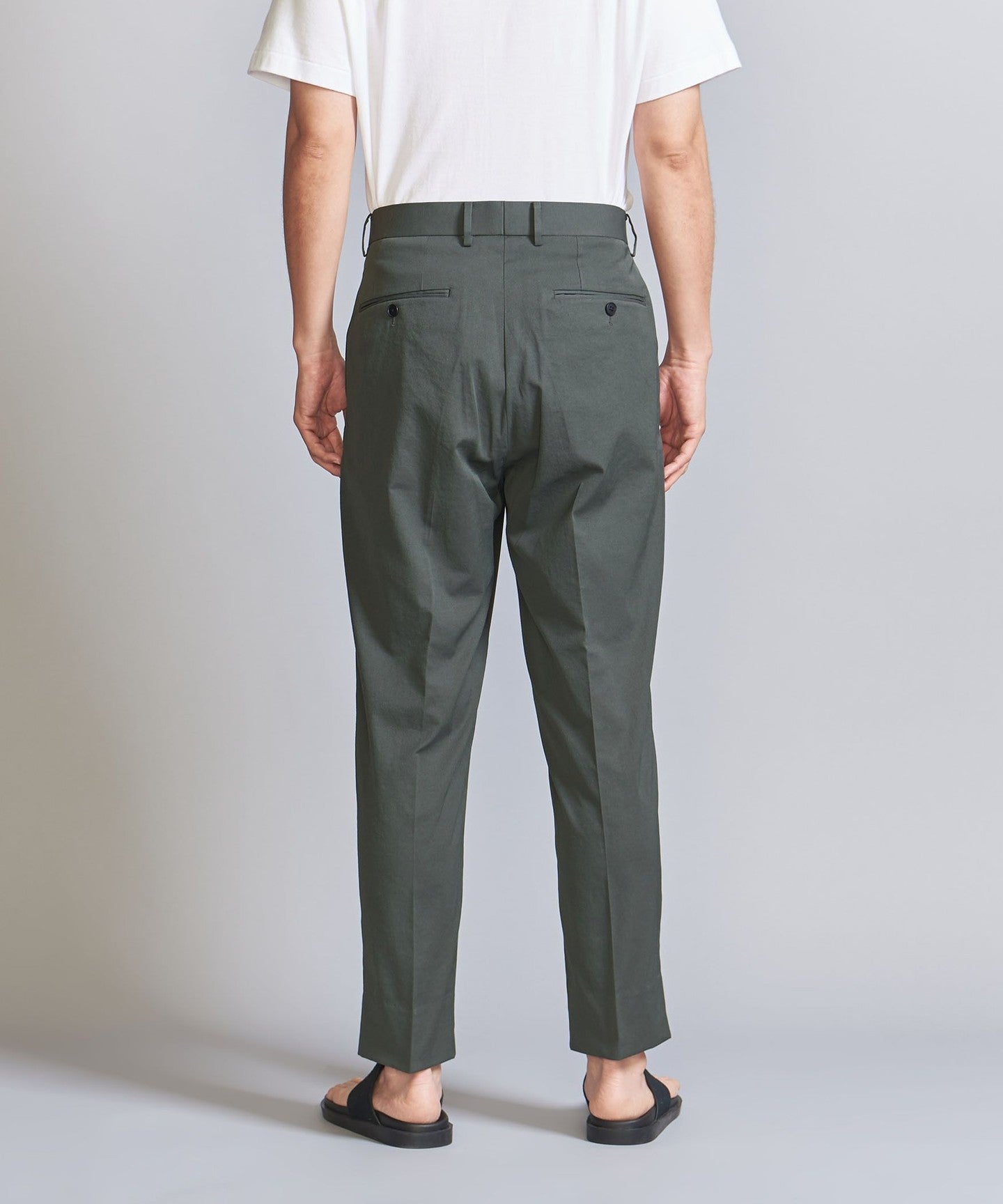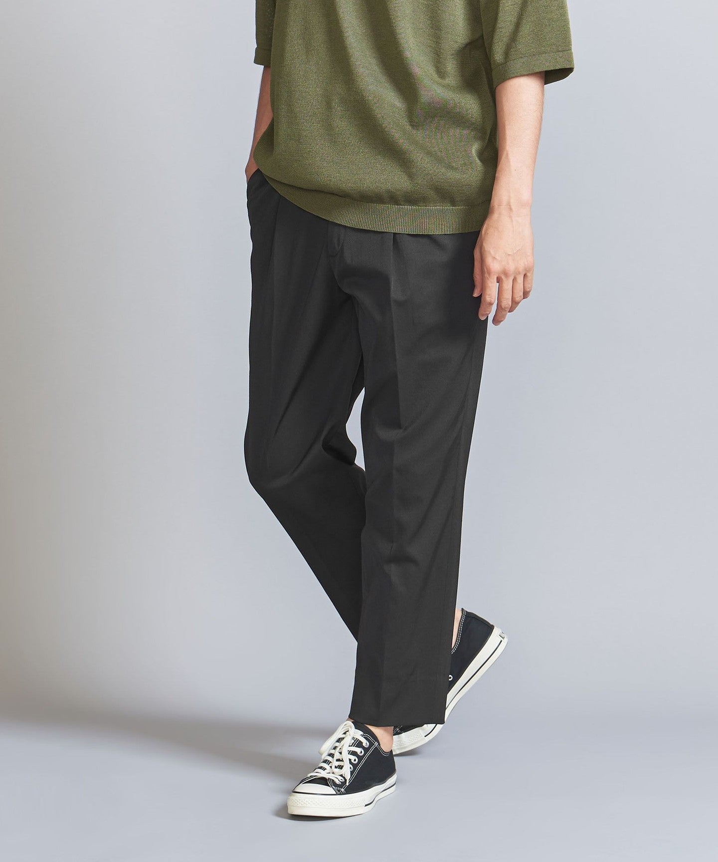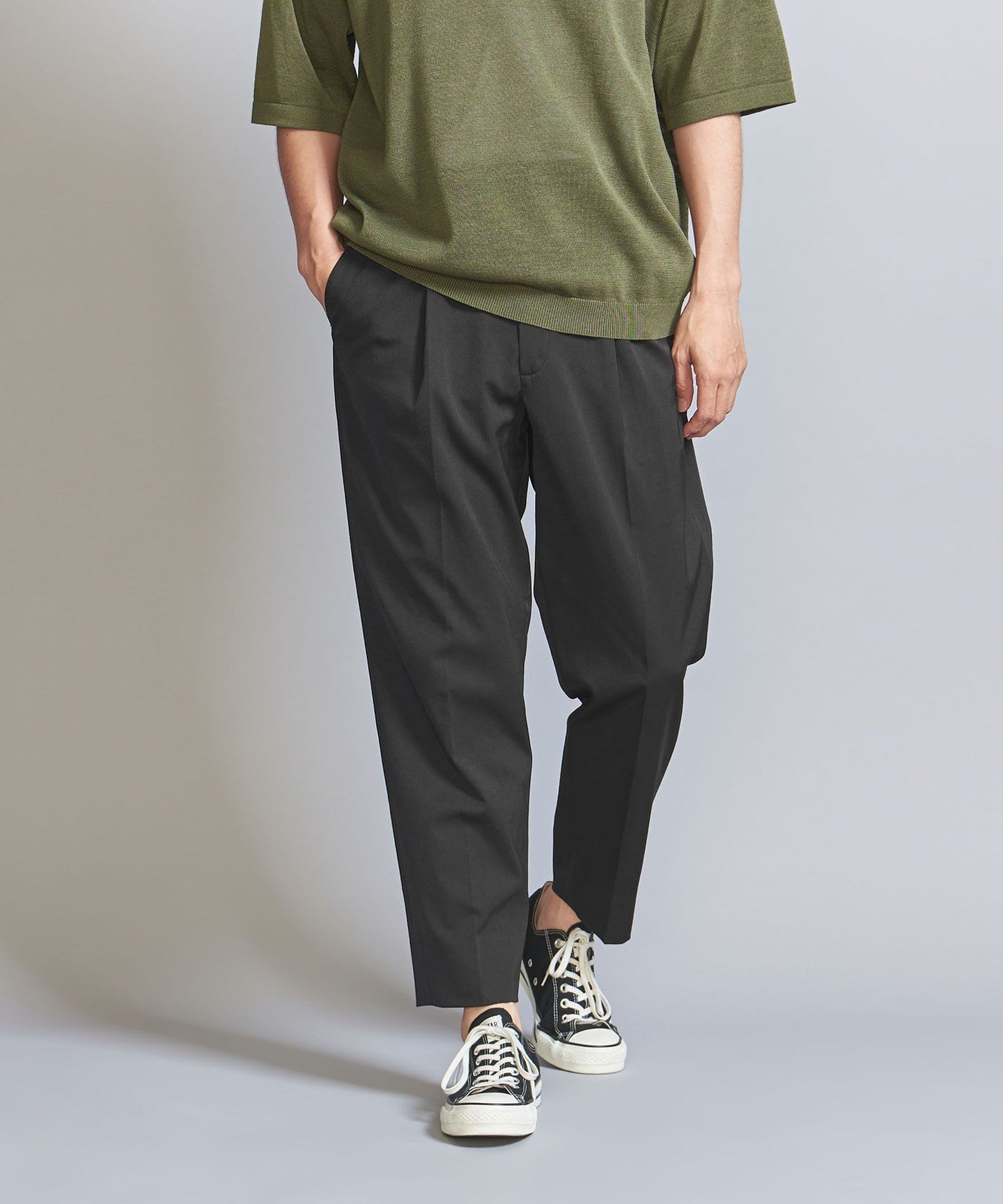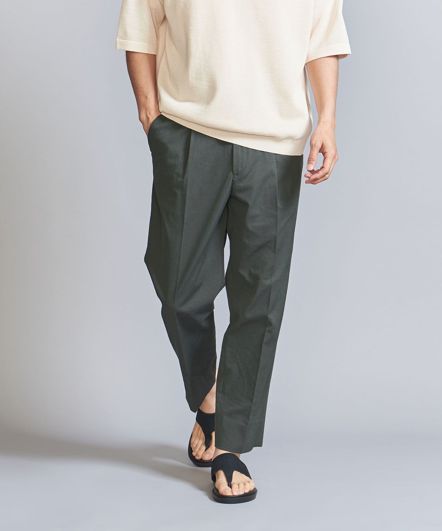 These tapered slacks have a simple design and are made from a refreshing summery material, making them suitable for both formal and casual wear.
