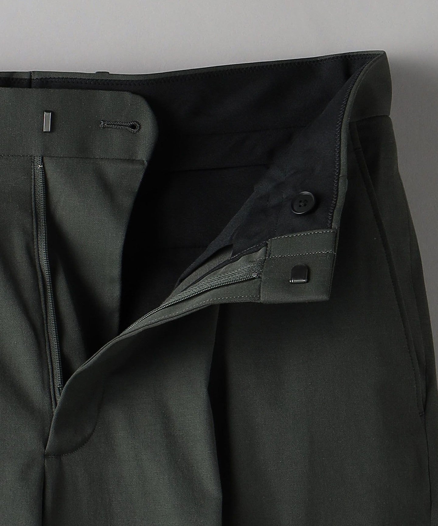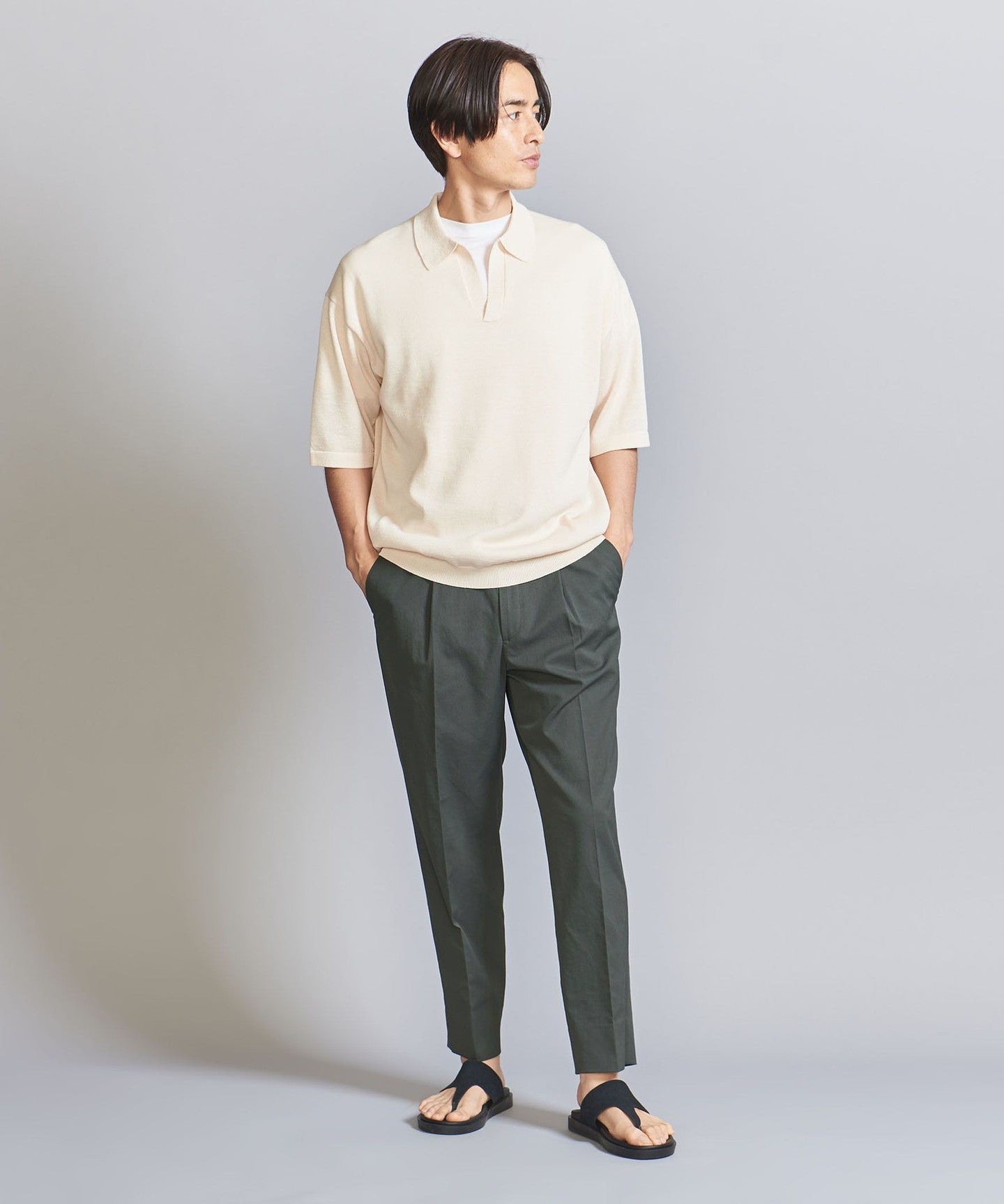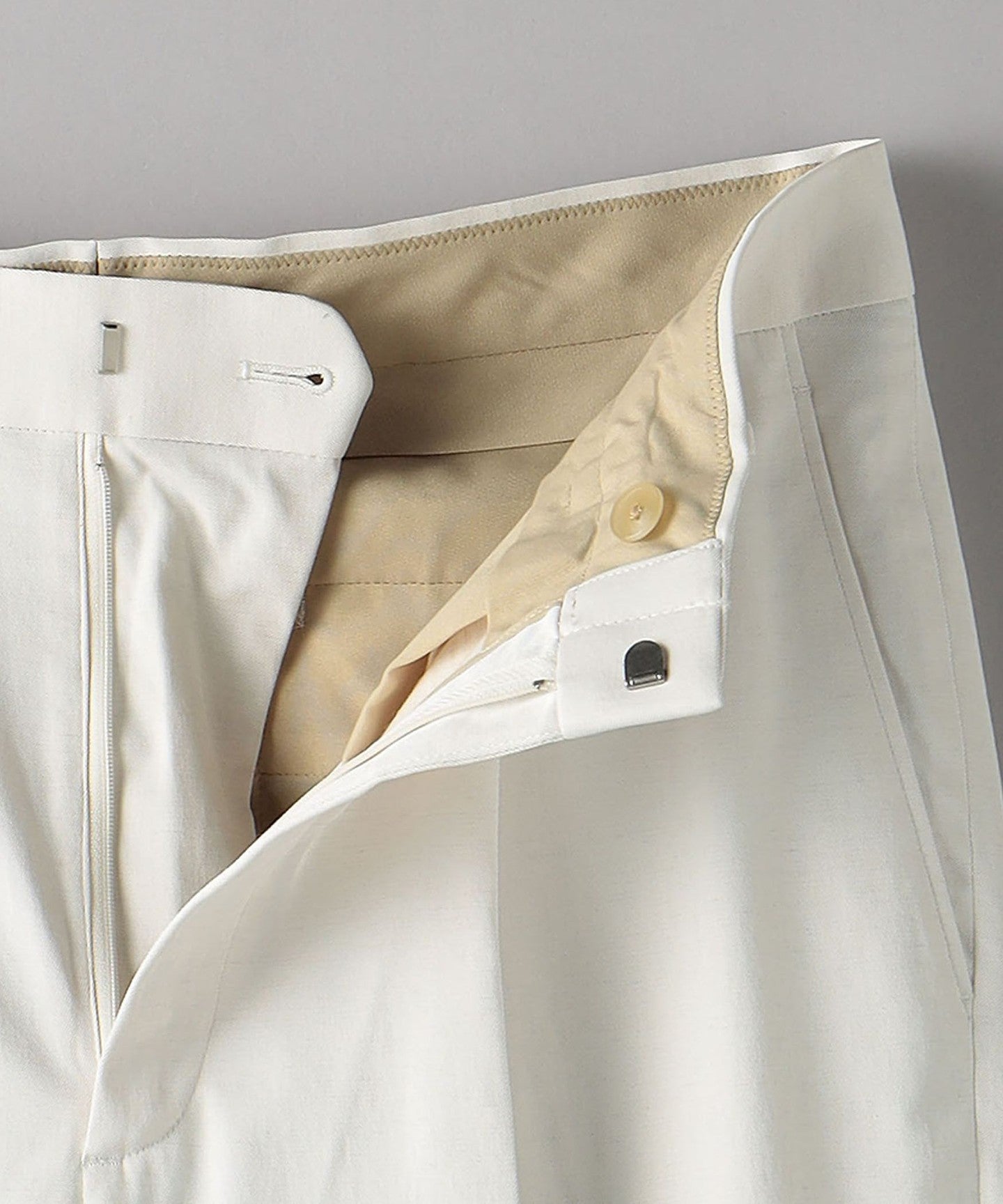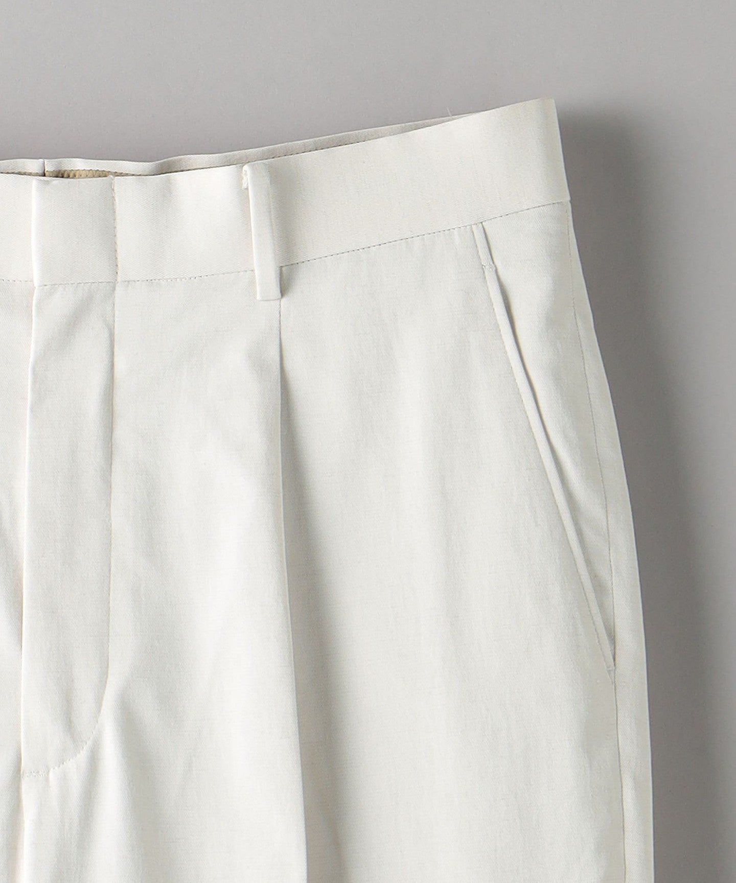These tapered slacks have a simple design and are made from a refreshing summery material, making them suitable for both formal and casual wear.