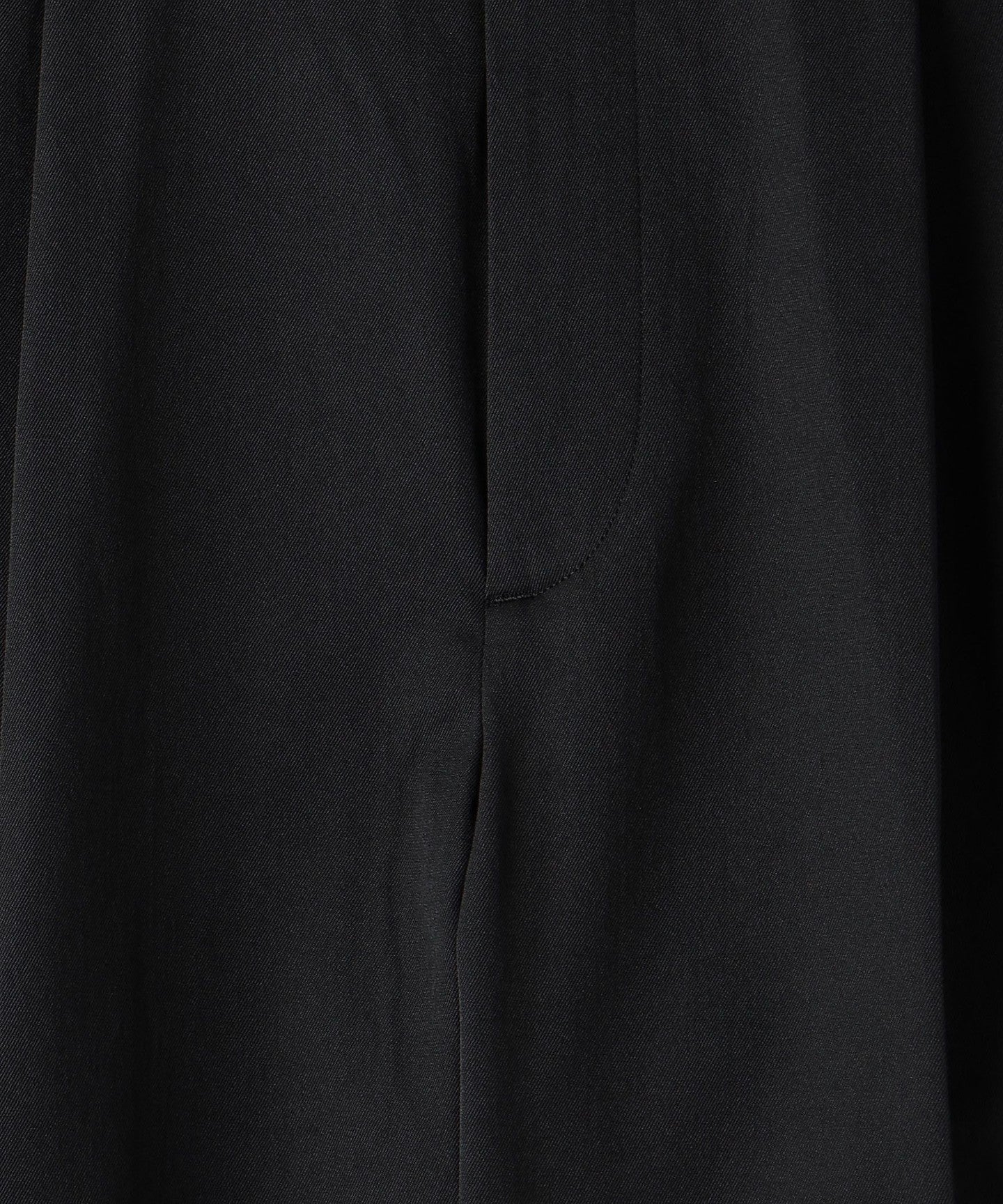 There are tucks around the waist, giving room from the hips to the thighs, and the silhouette gradually tapers towards the hem.