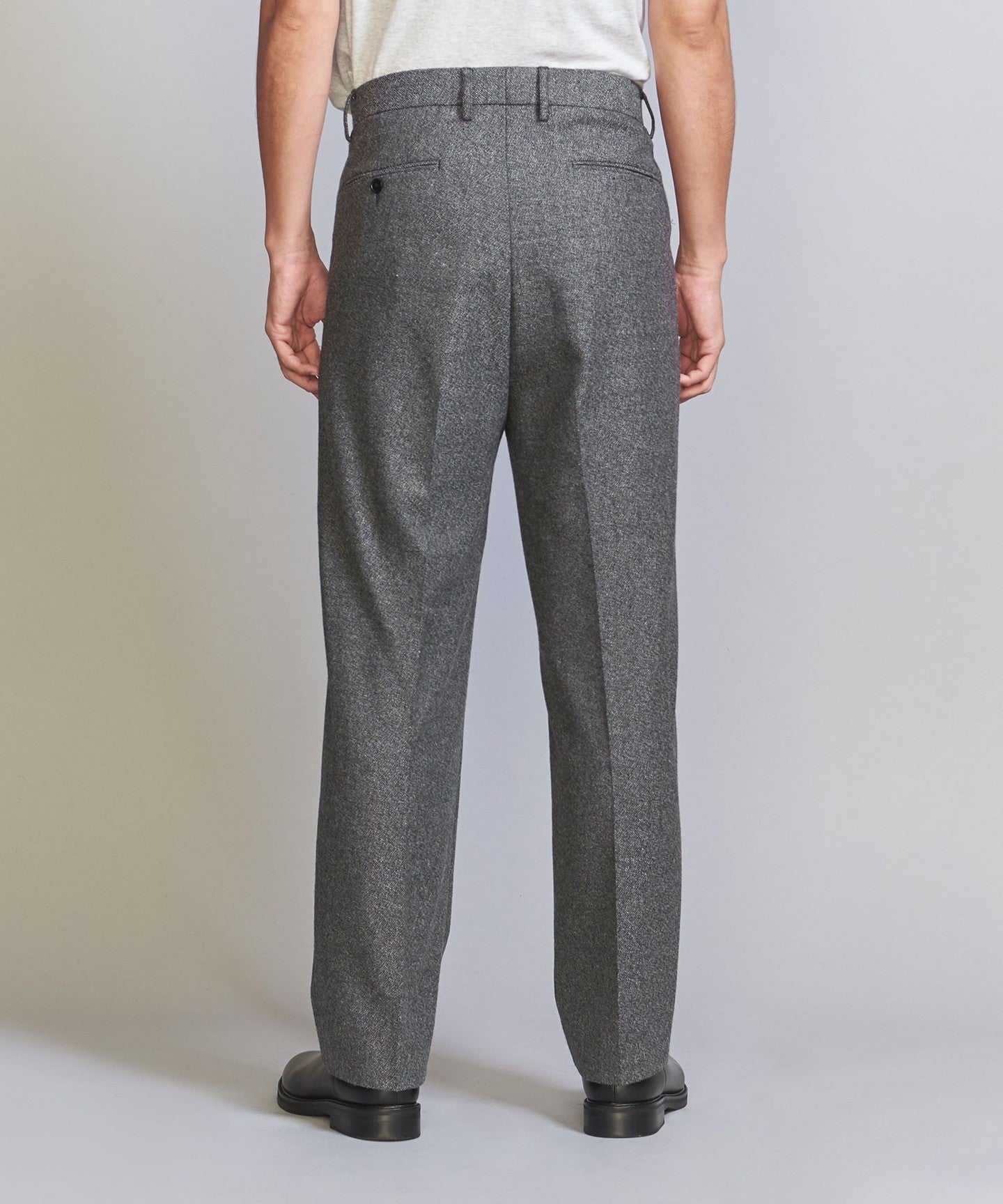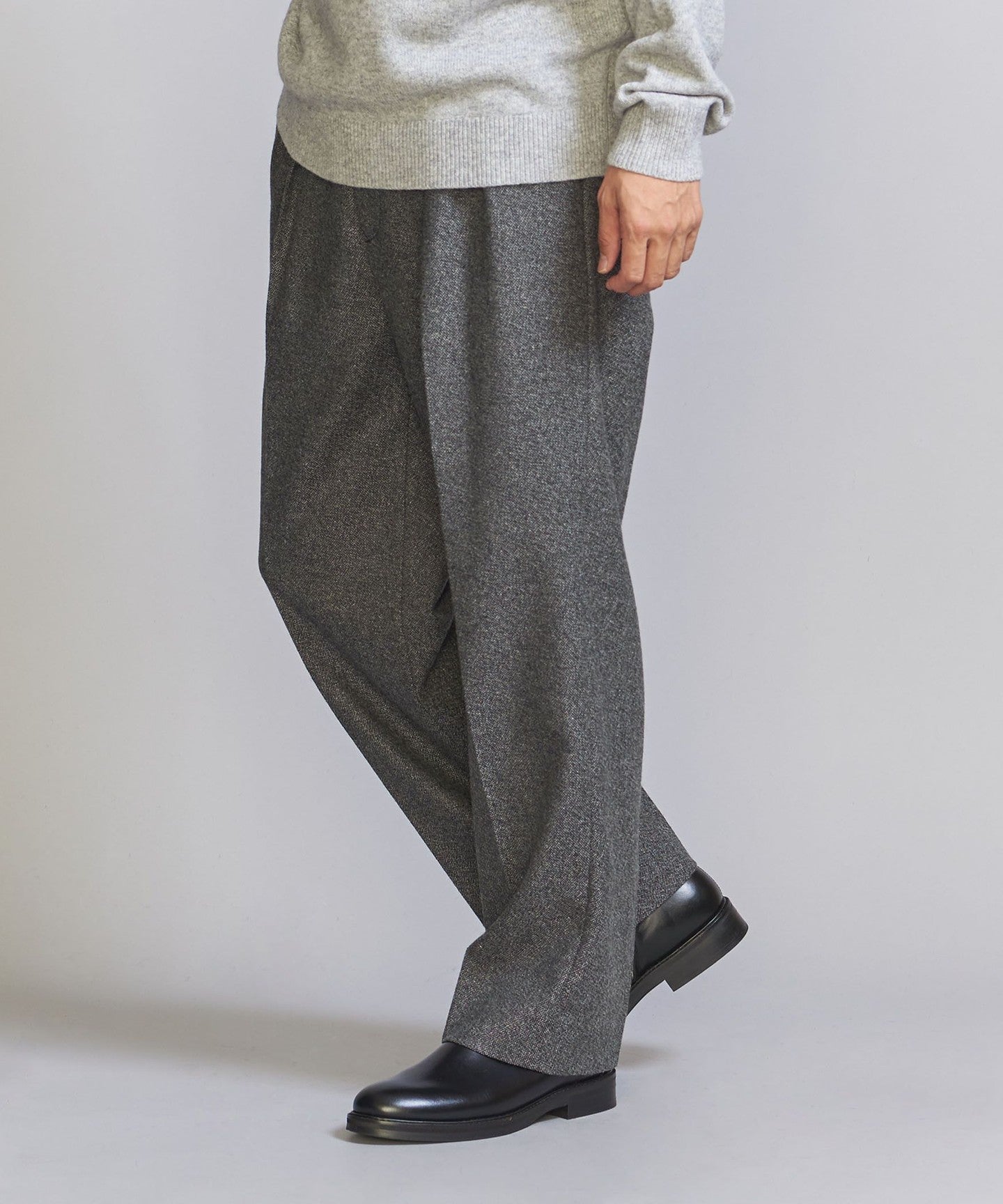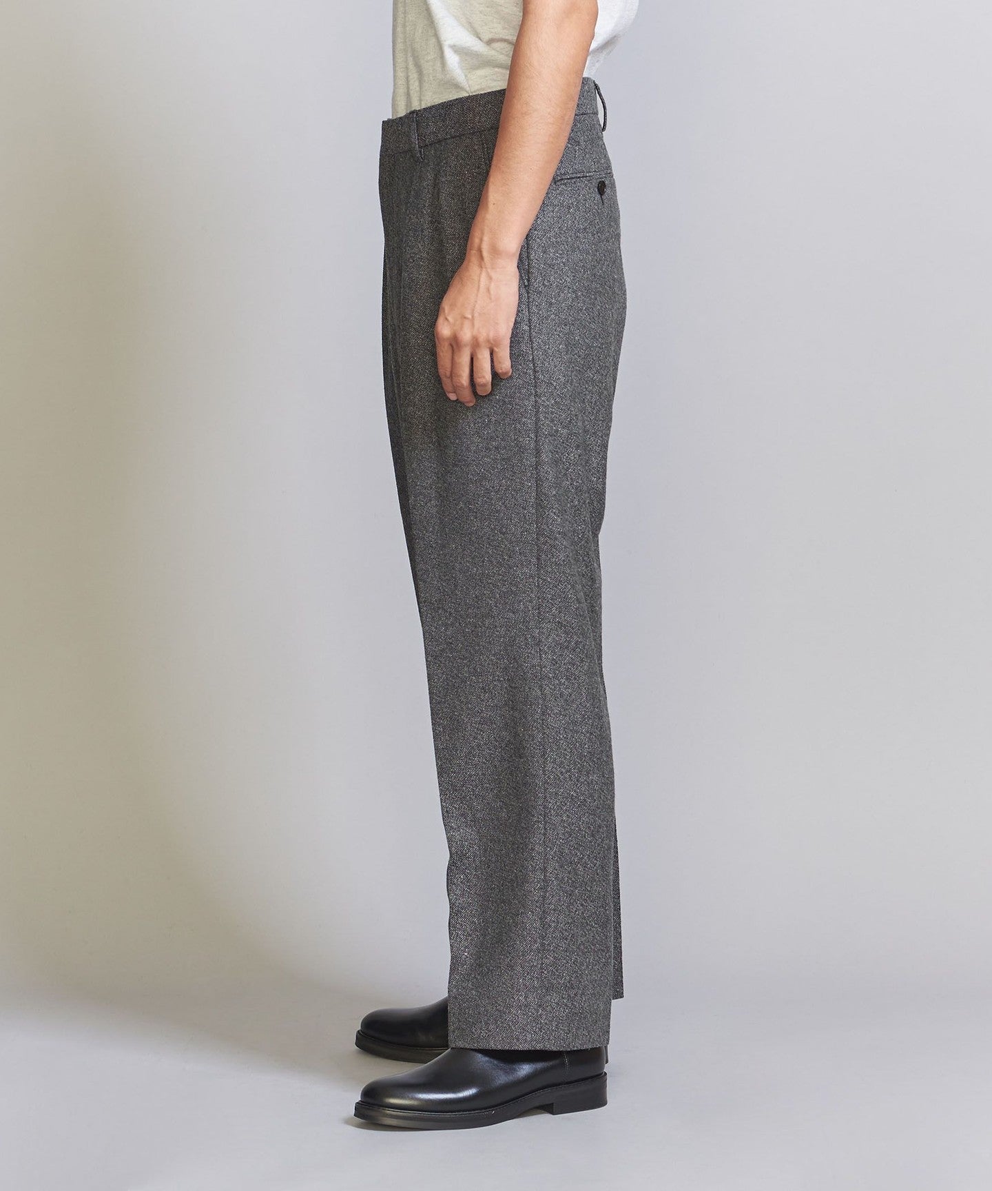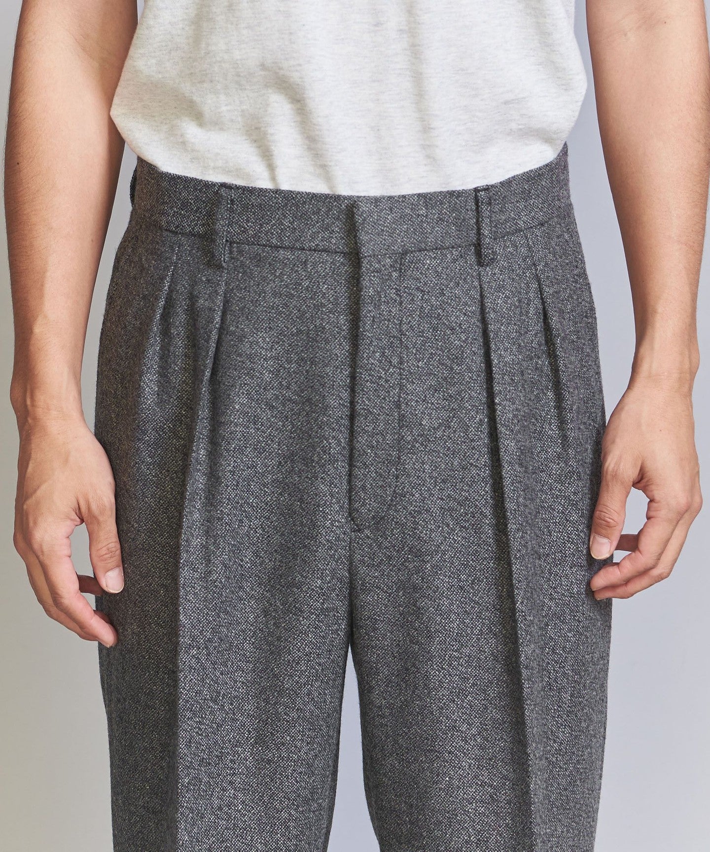 Tweed with a traditional feel FABRIC Wide slacks made with fabric.