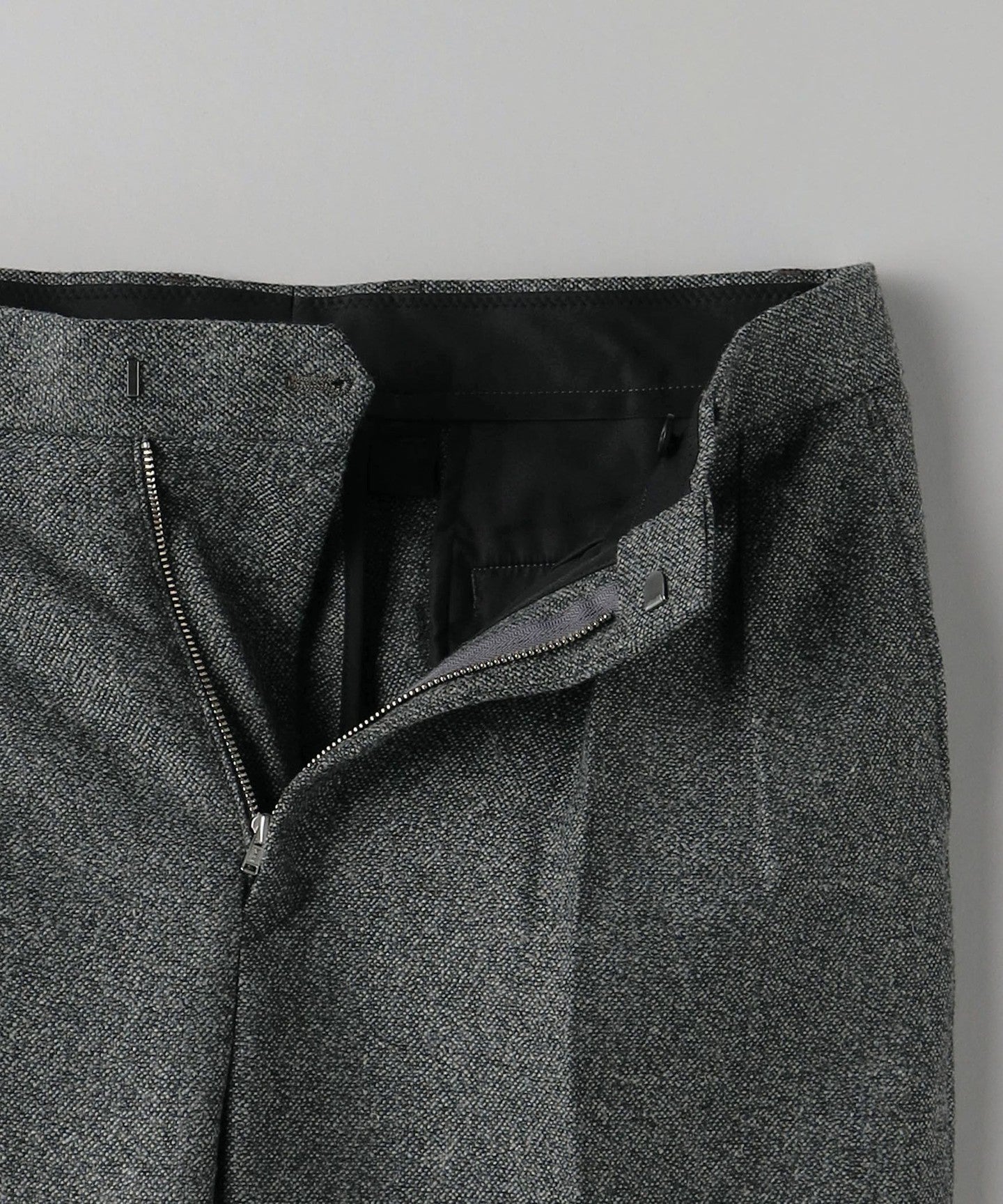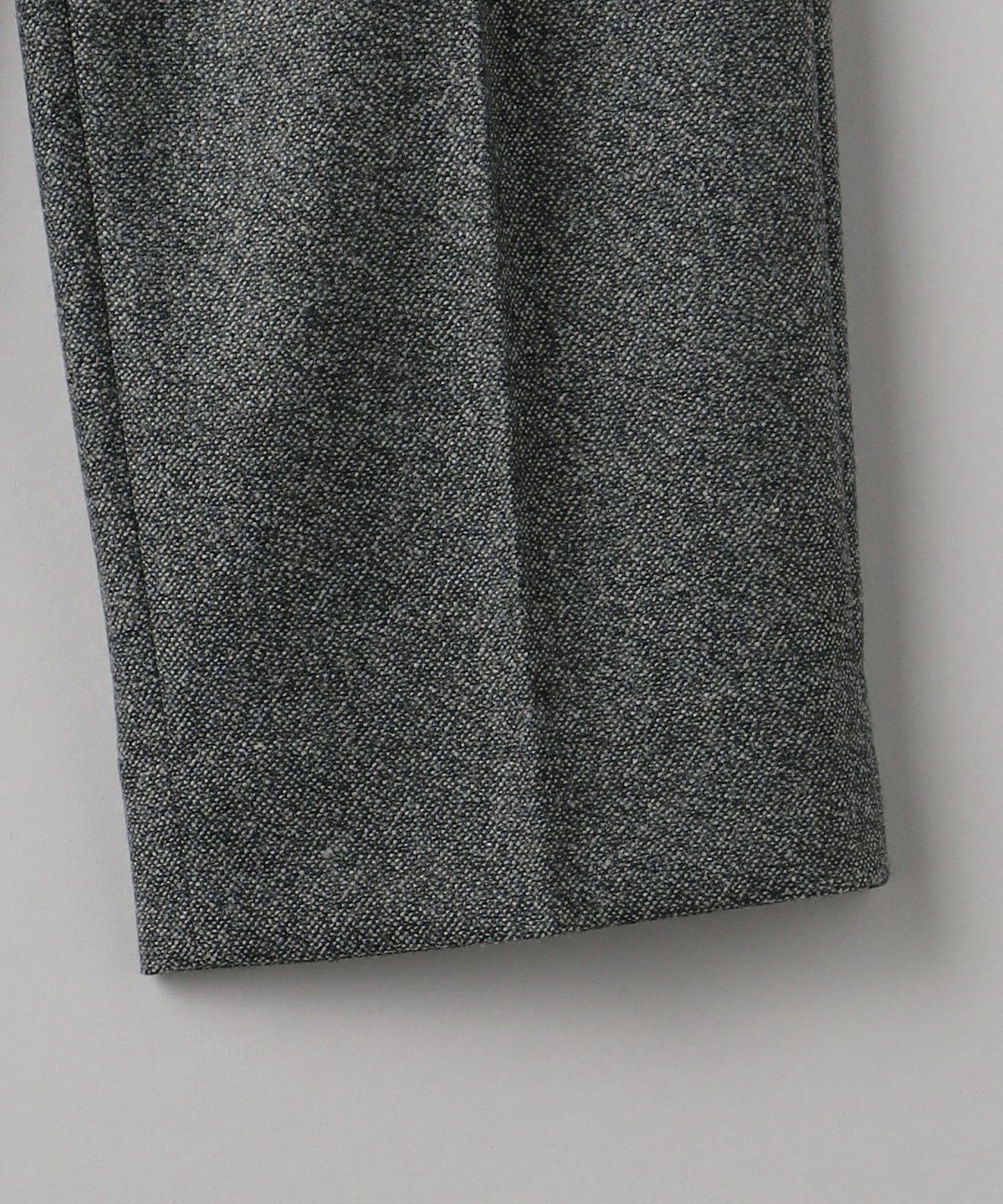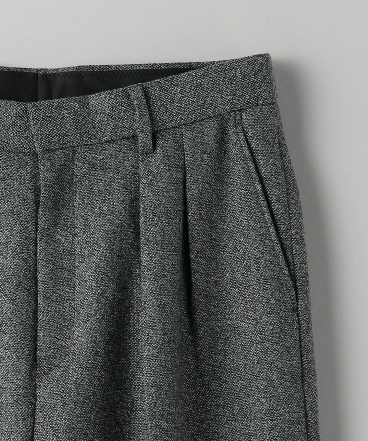 Tweed with a traditional feel FABRIC Wide slacks made with fabric.