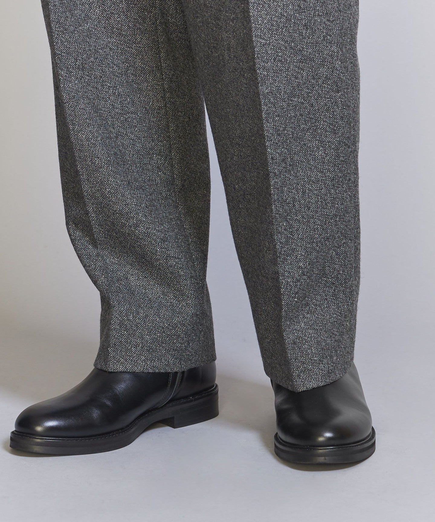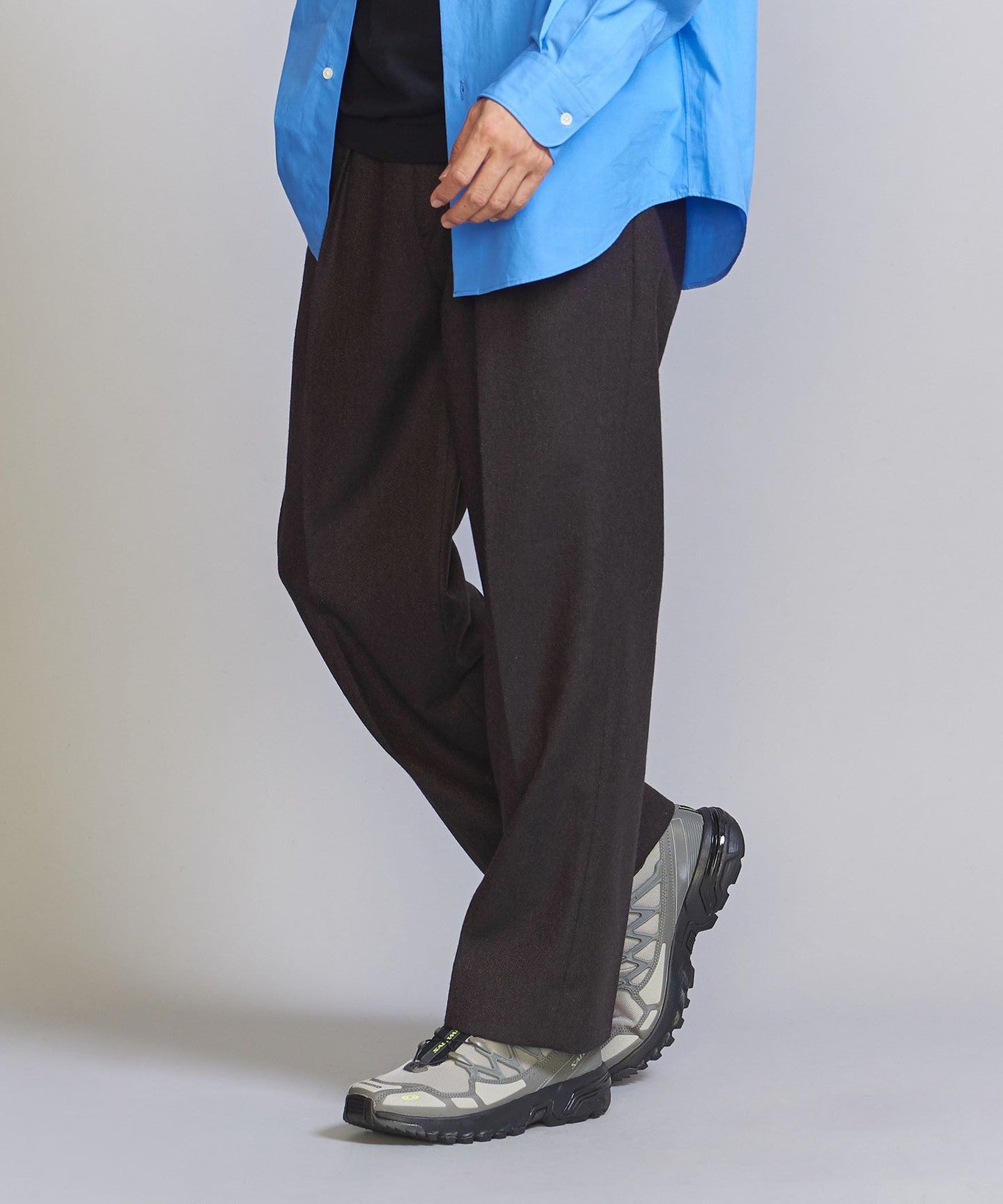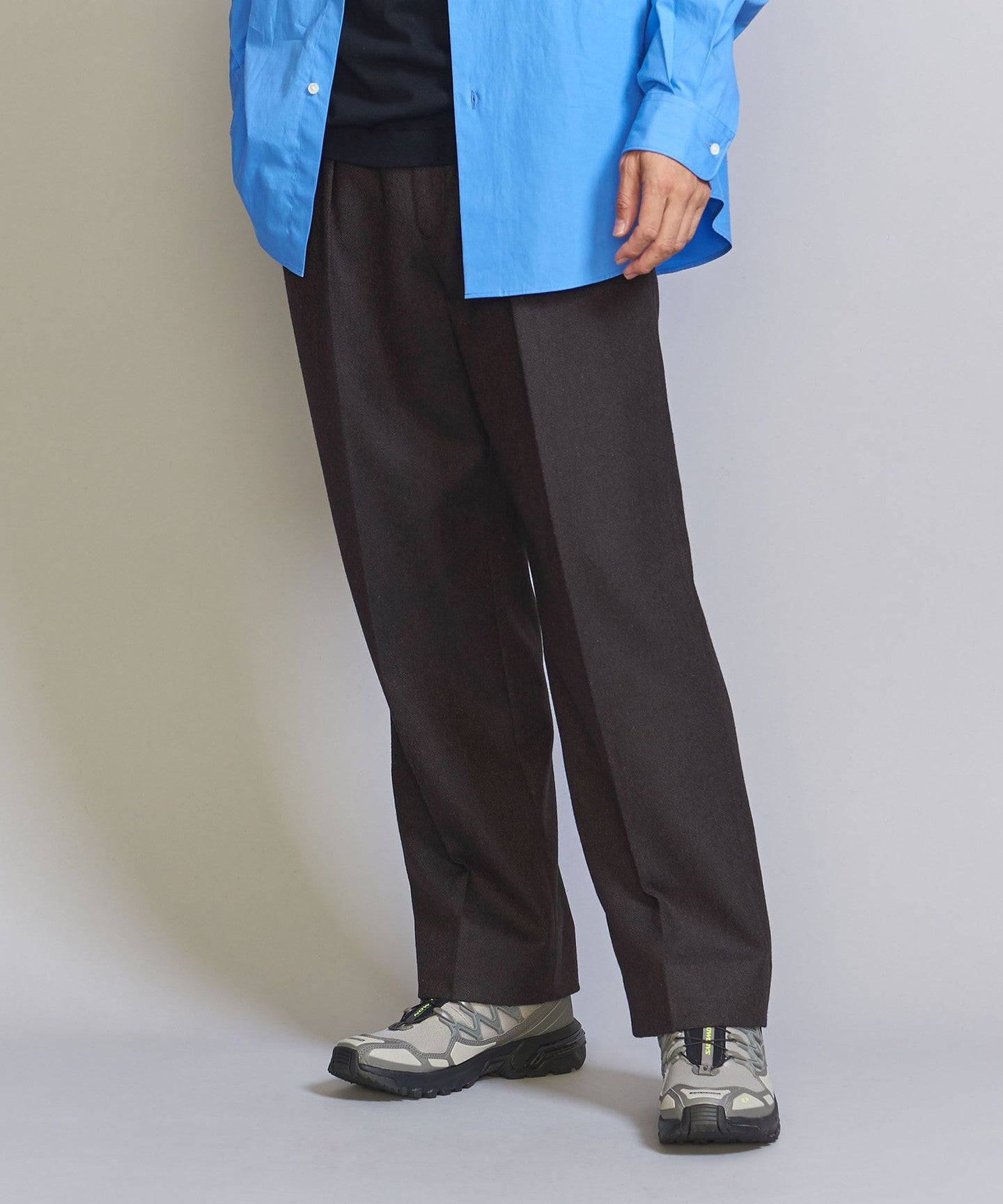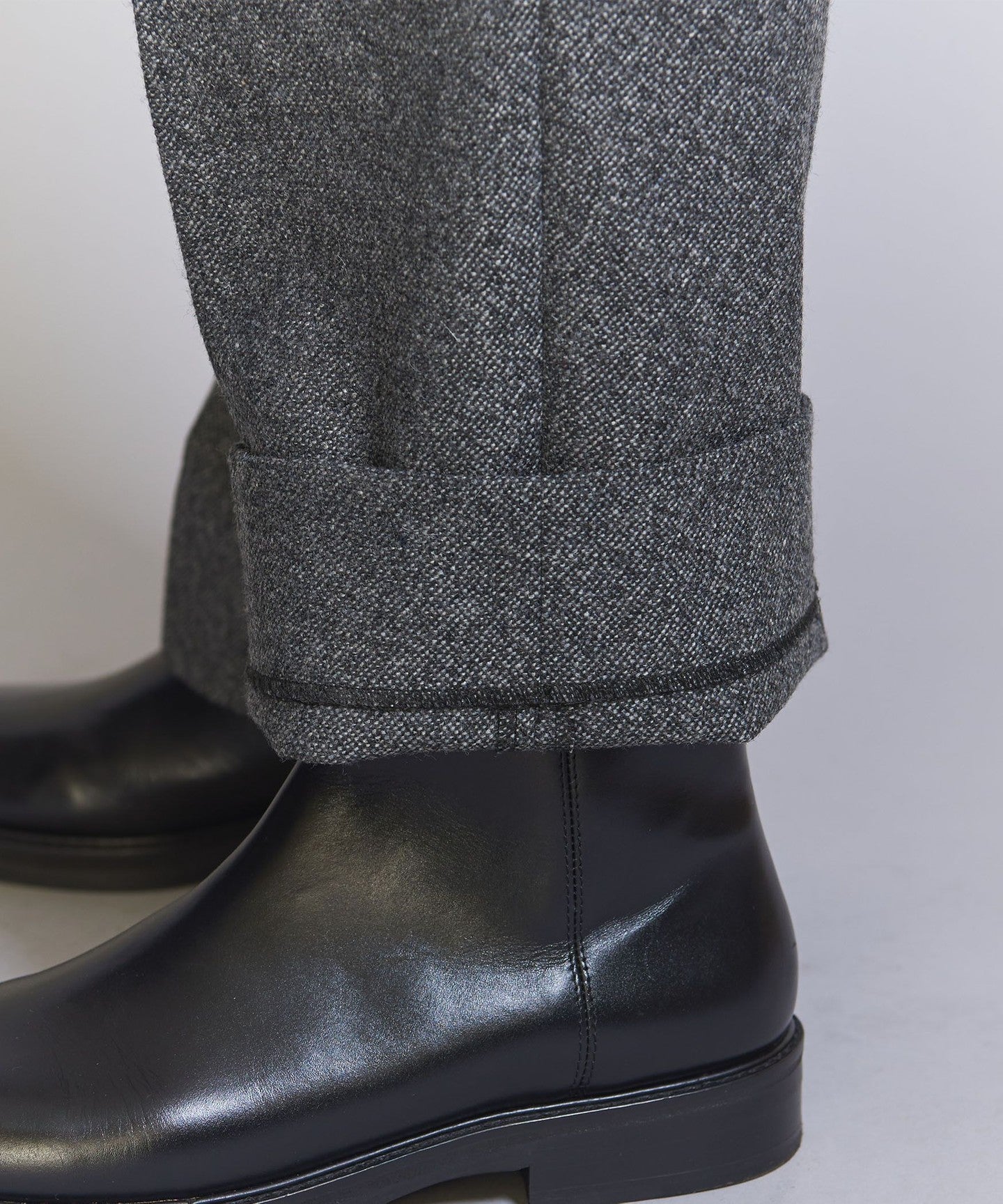 Tweed with a traditional feel FABRIC Wide slacks made with fabric.