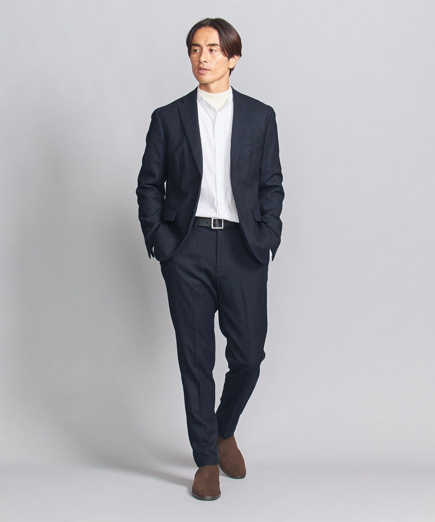 This is a custom-made fabric woven from a mix of worsted and spun wool, which combines warmth with a clear, sharp look.