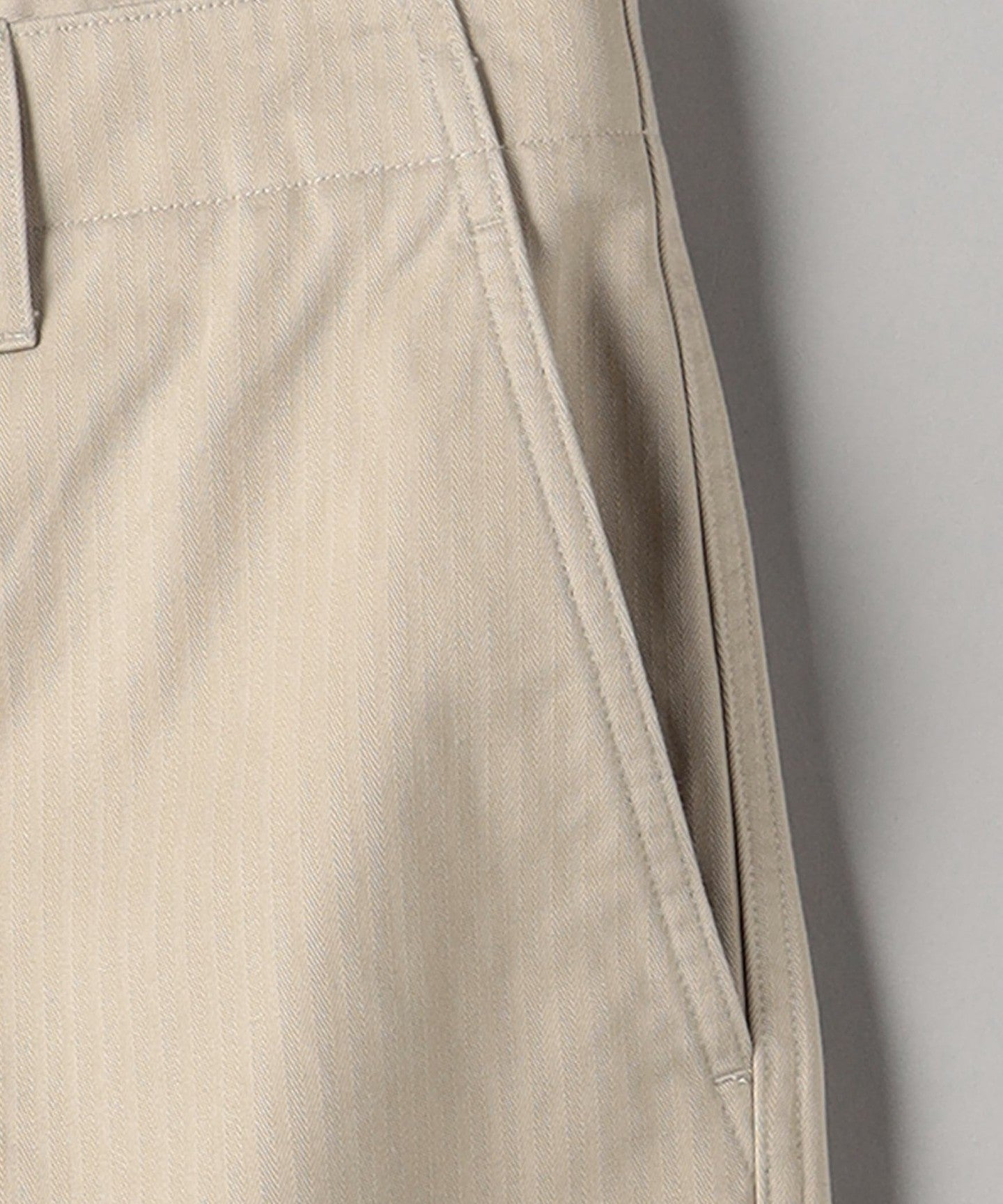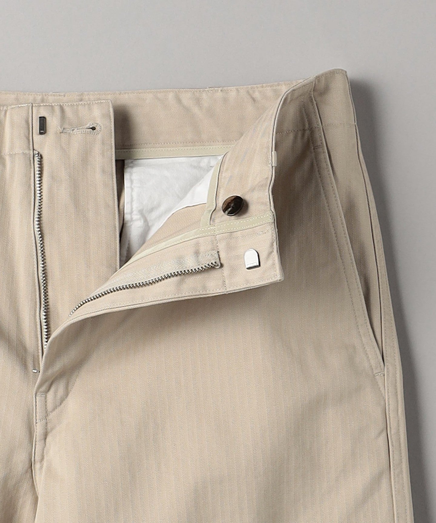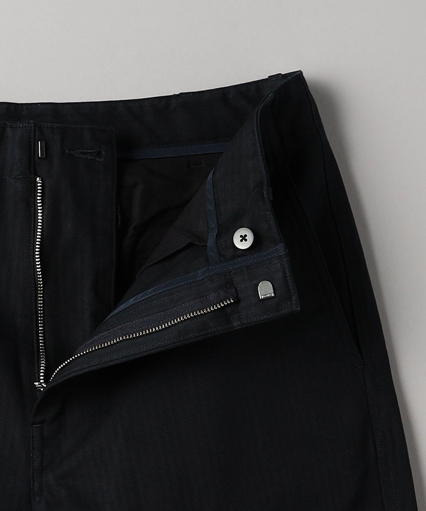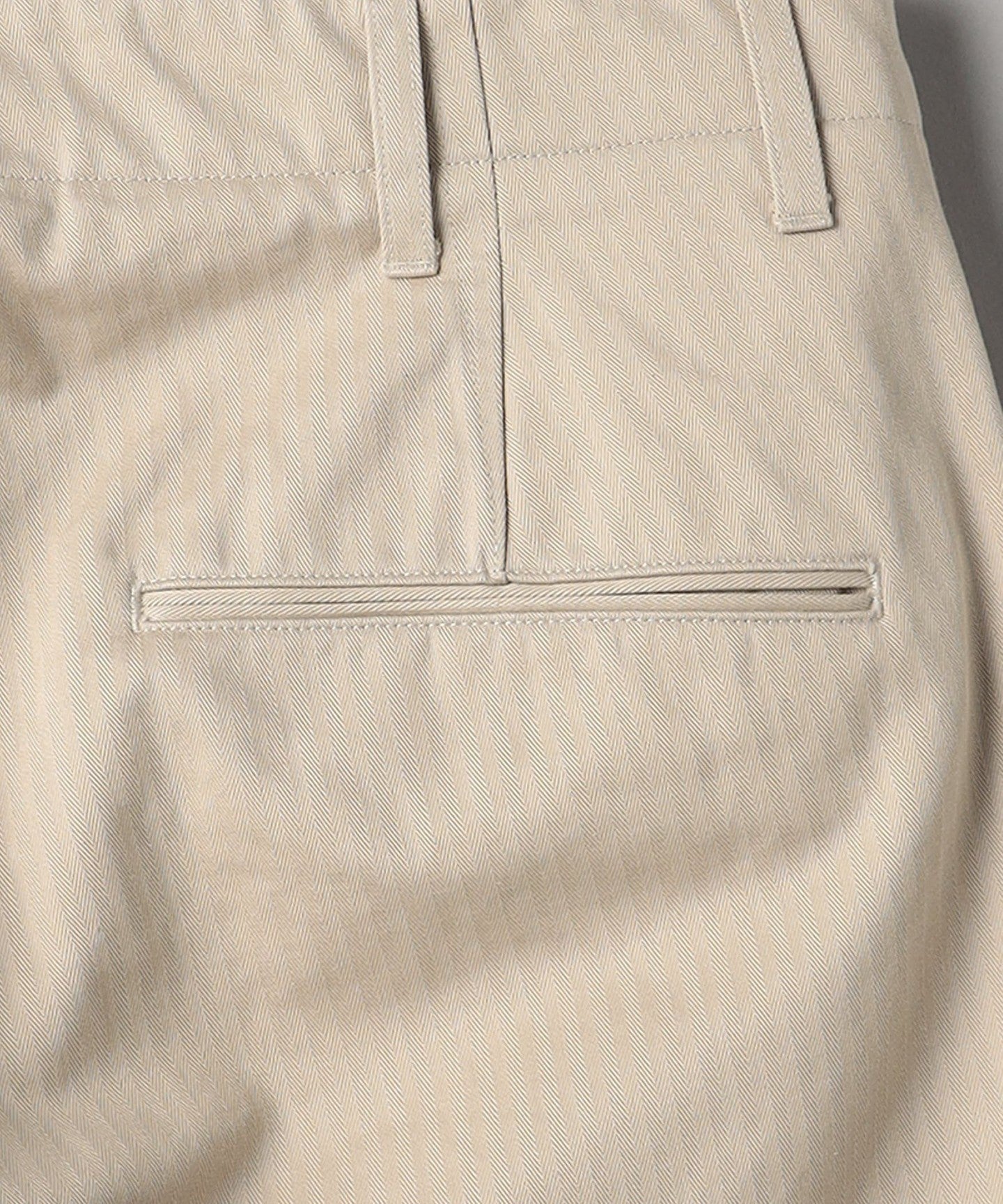 Wide straight chinos with an eye-catching mini herringbone weave pattern.
