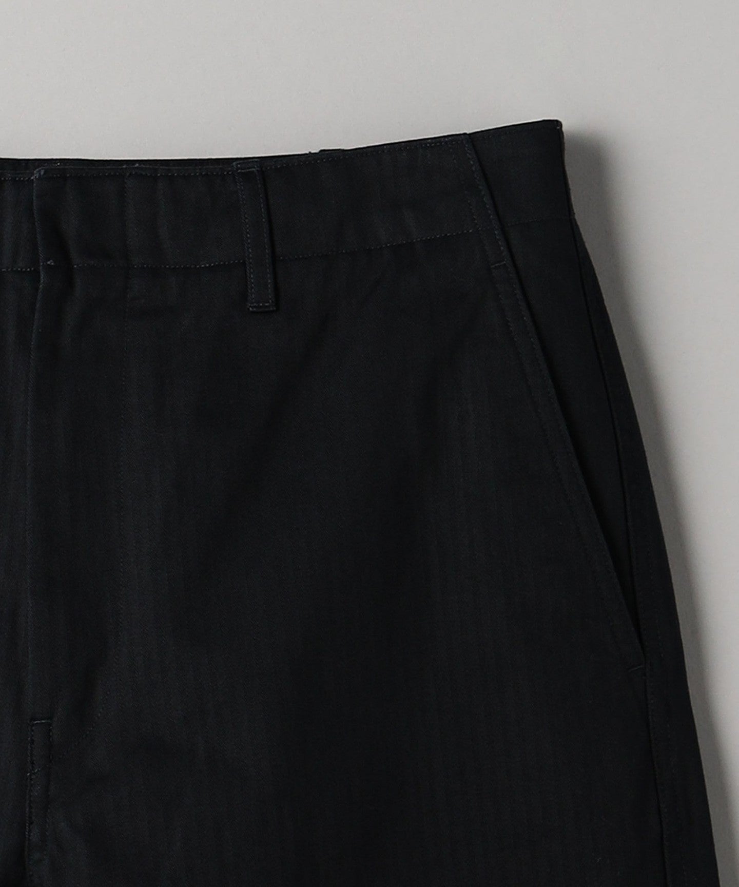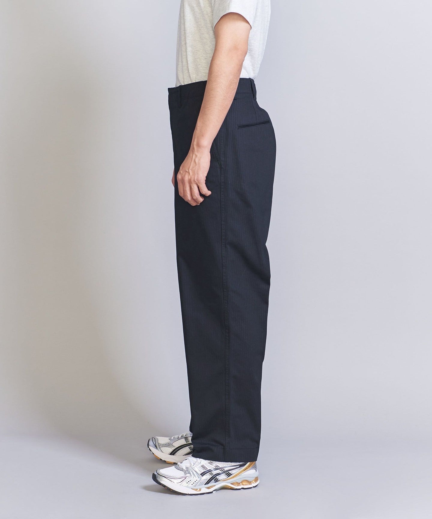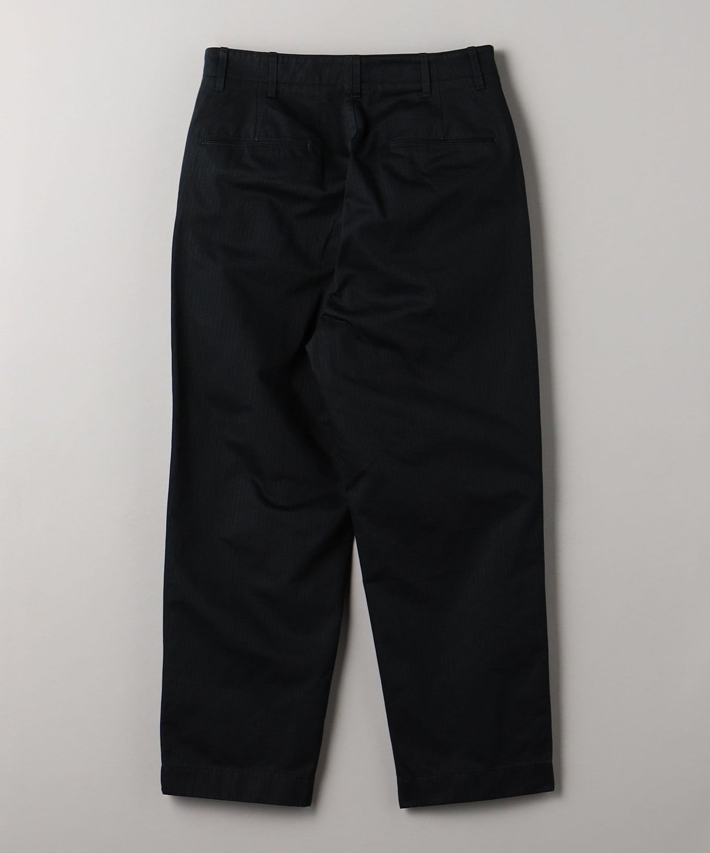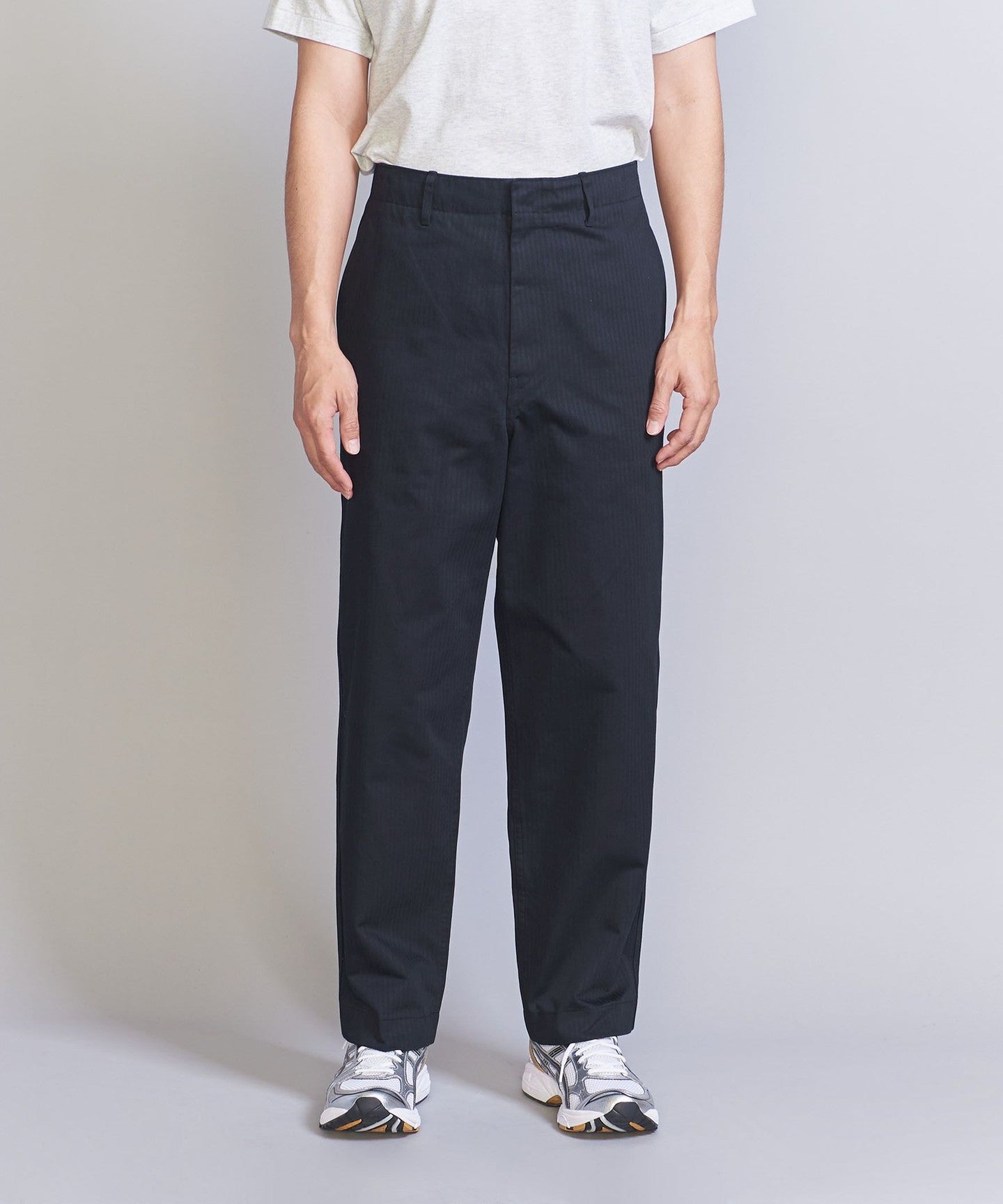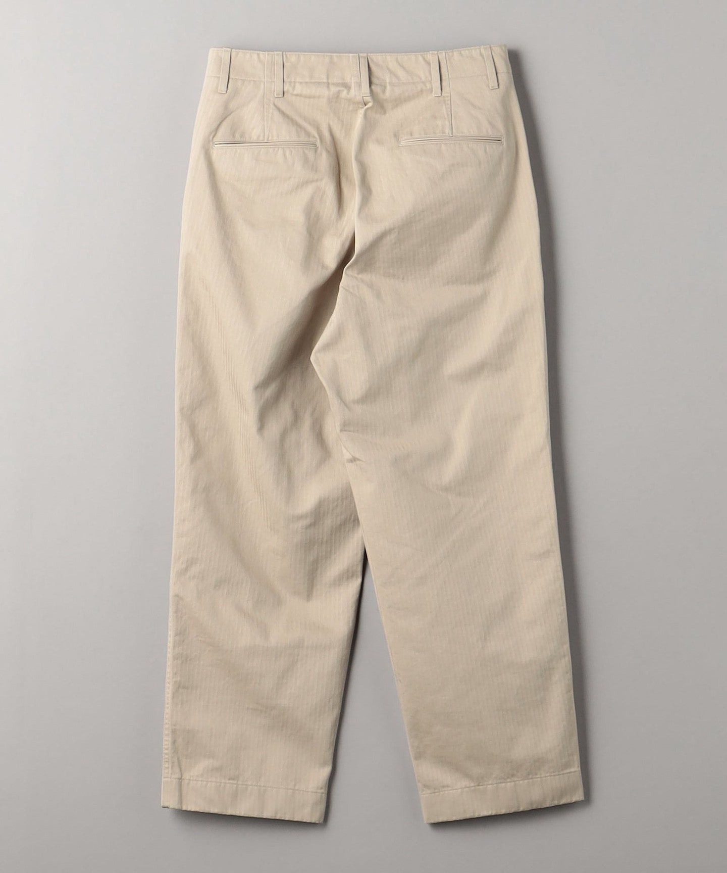 Wide straight chinos with an eye-catching mini herringbone weave pattern.