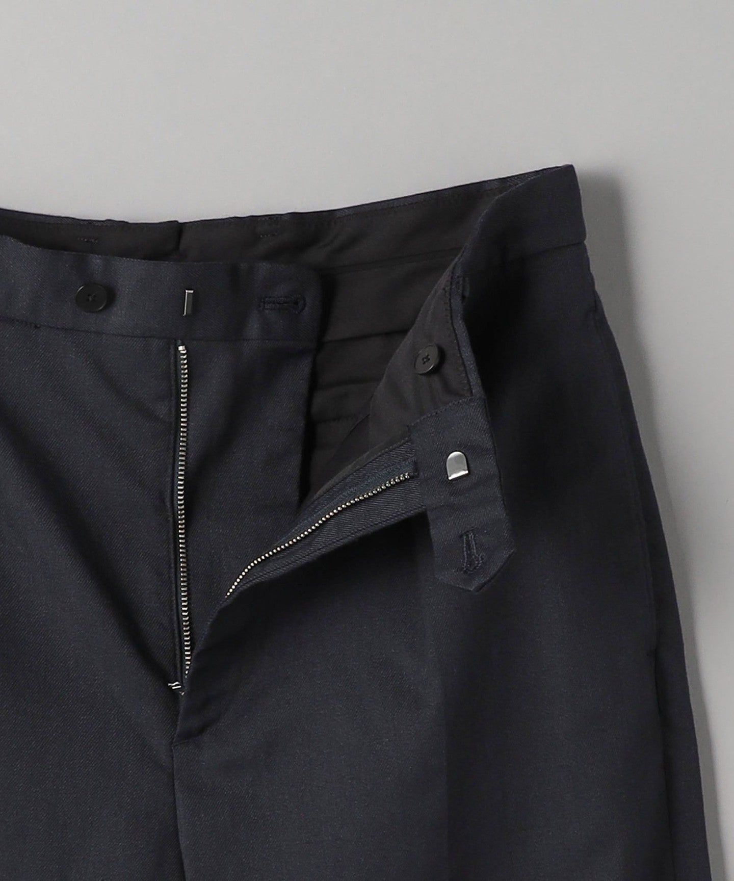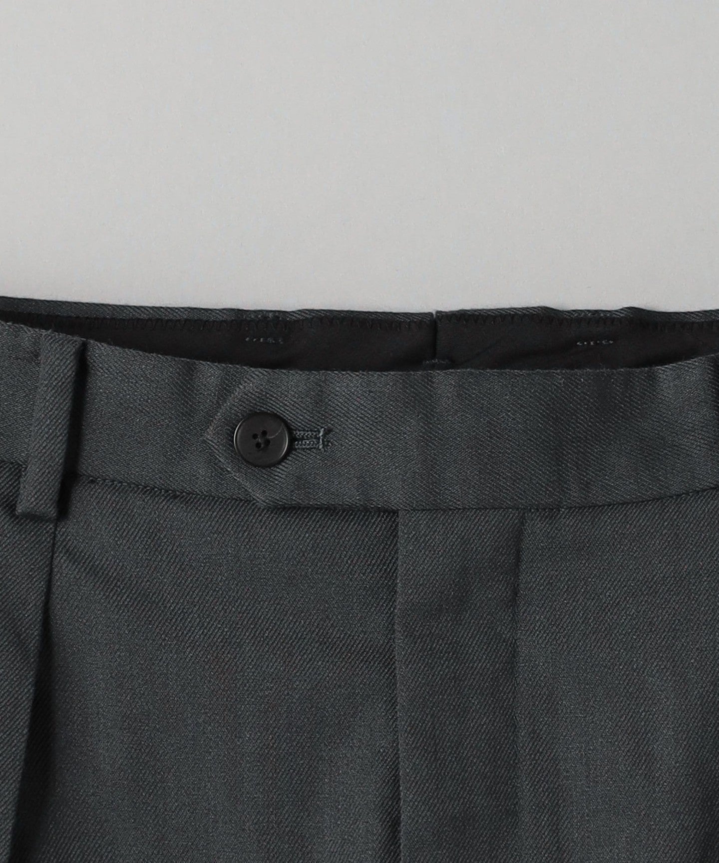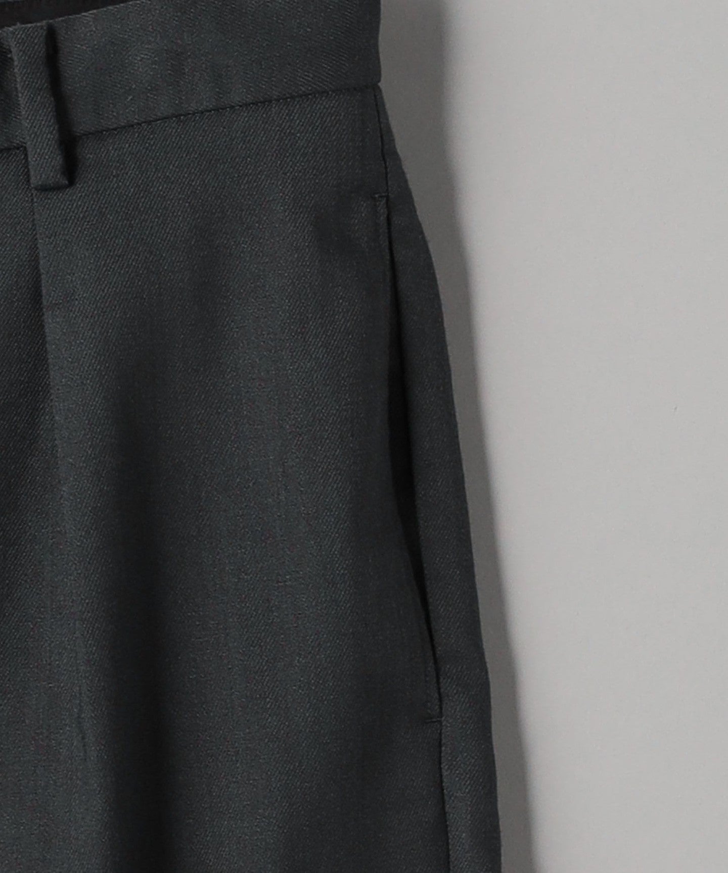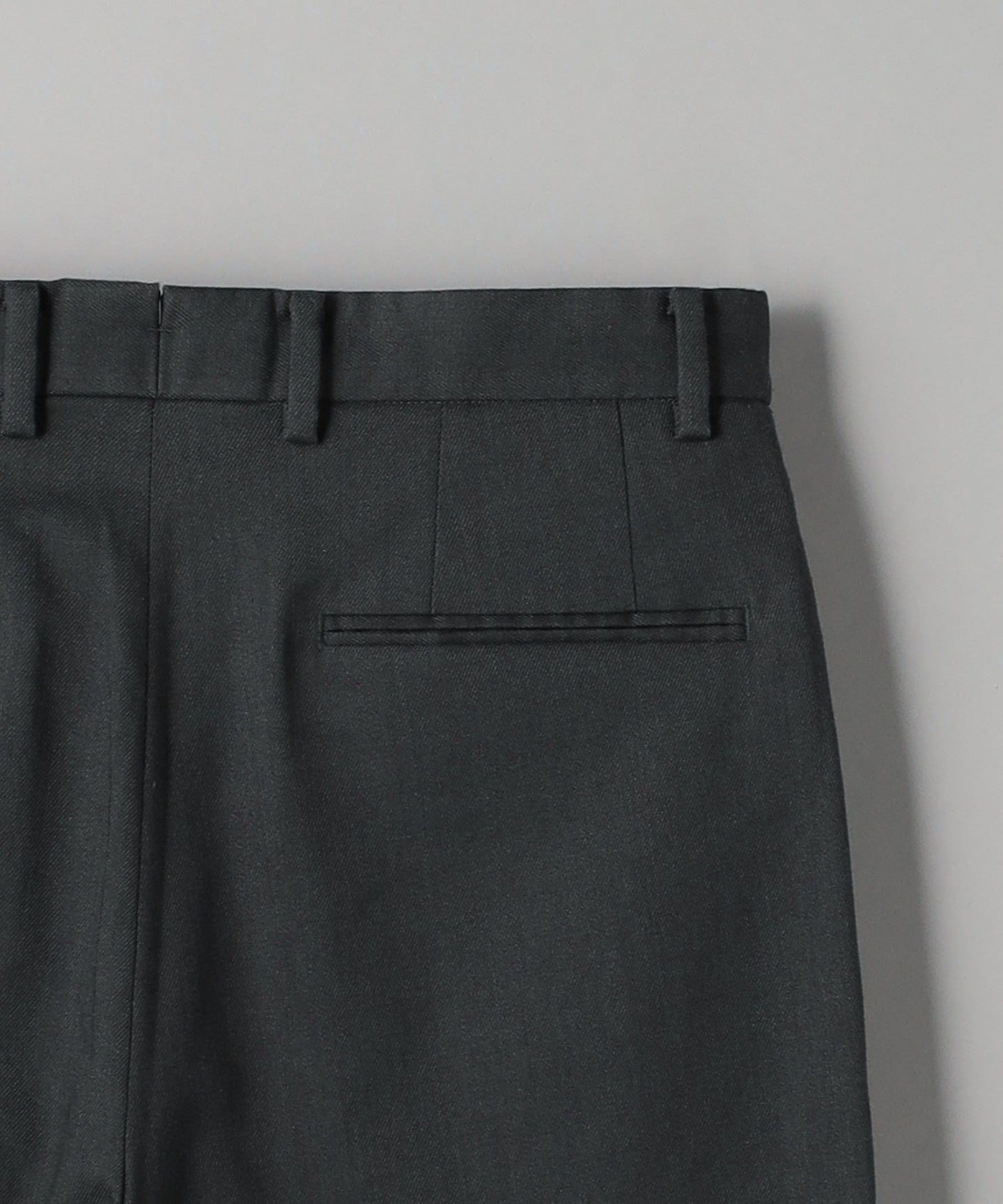 Tucks around the waist give room from the hips to the thighs, creating a tapered silhouette that gradually narrows towards the hem.