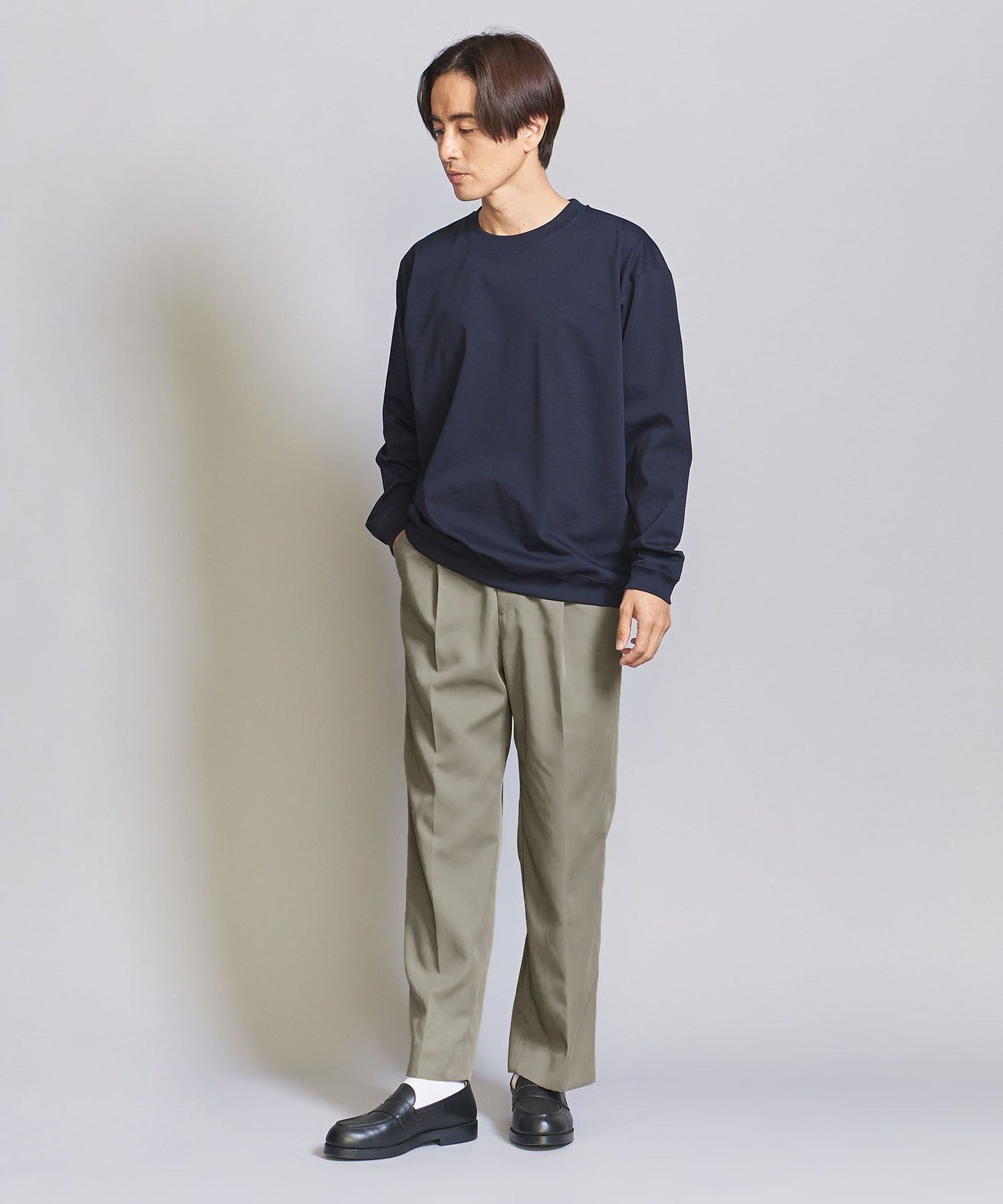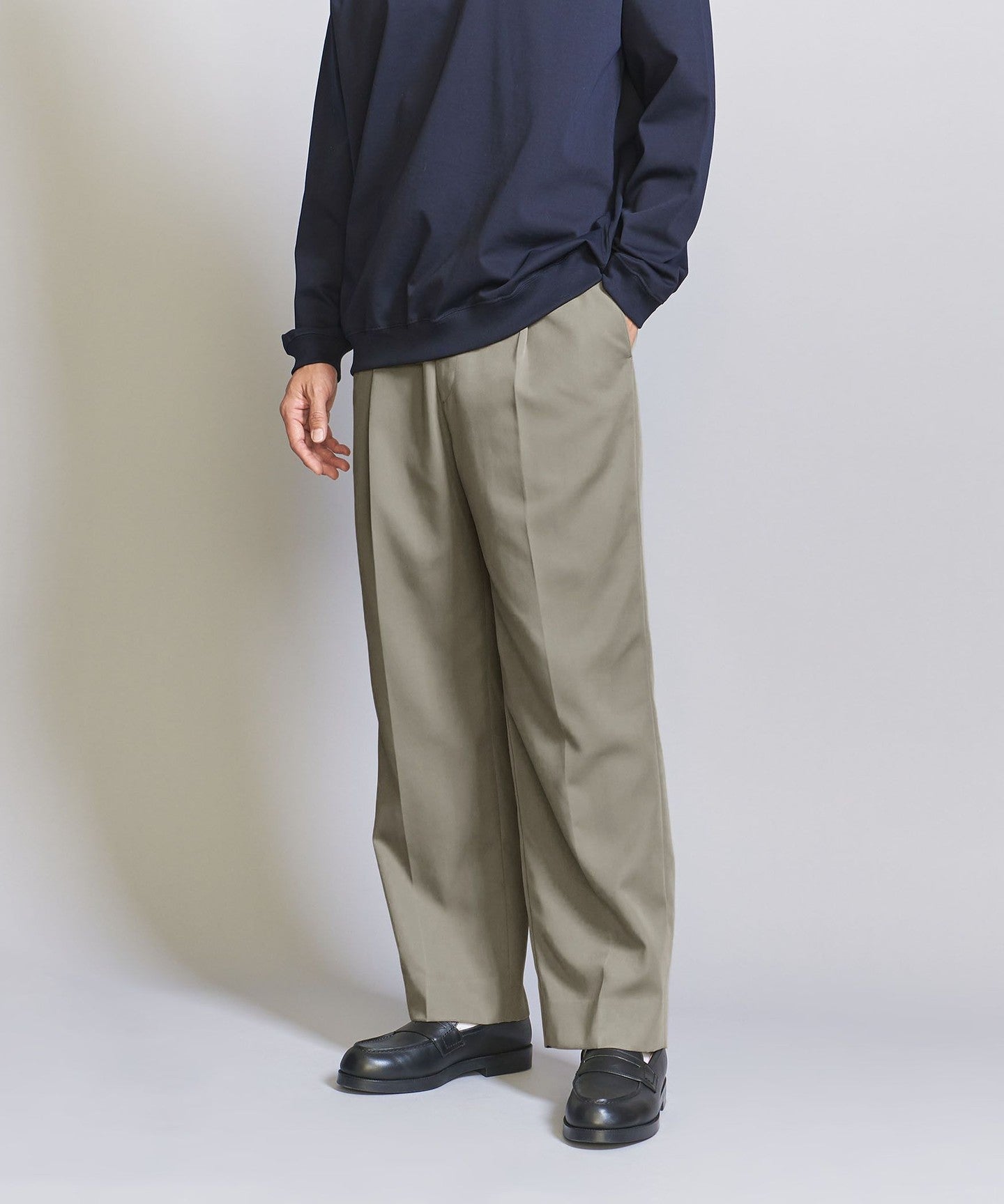 A pair of one-push slacks with a somewhat relaxed feel.