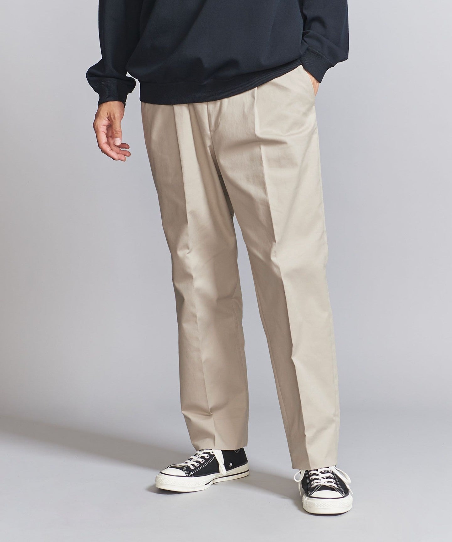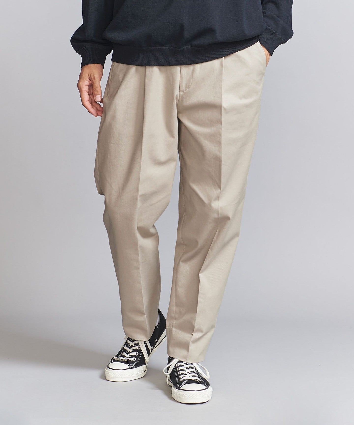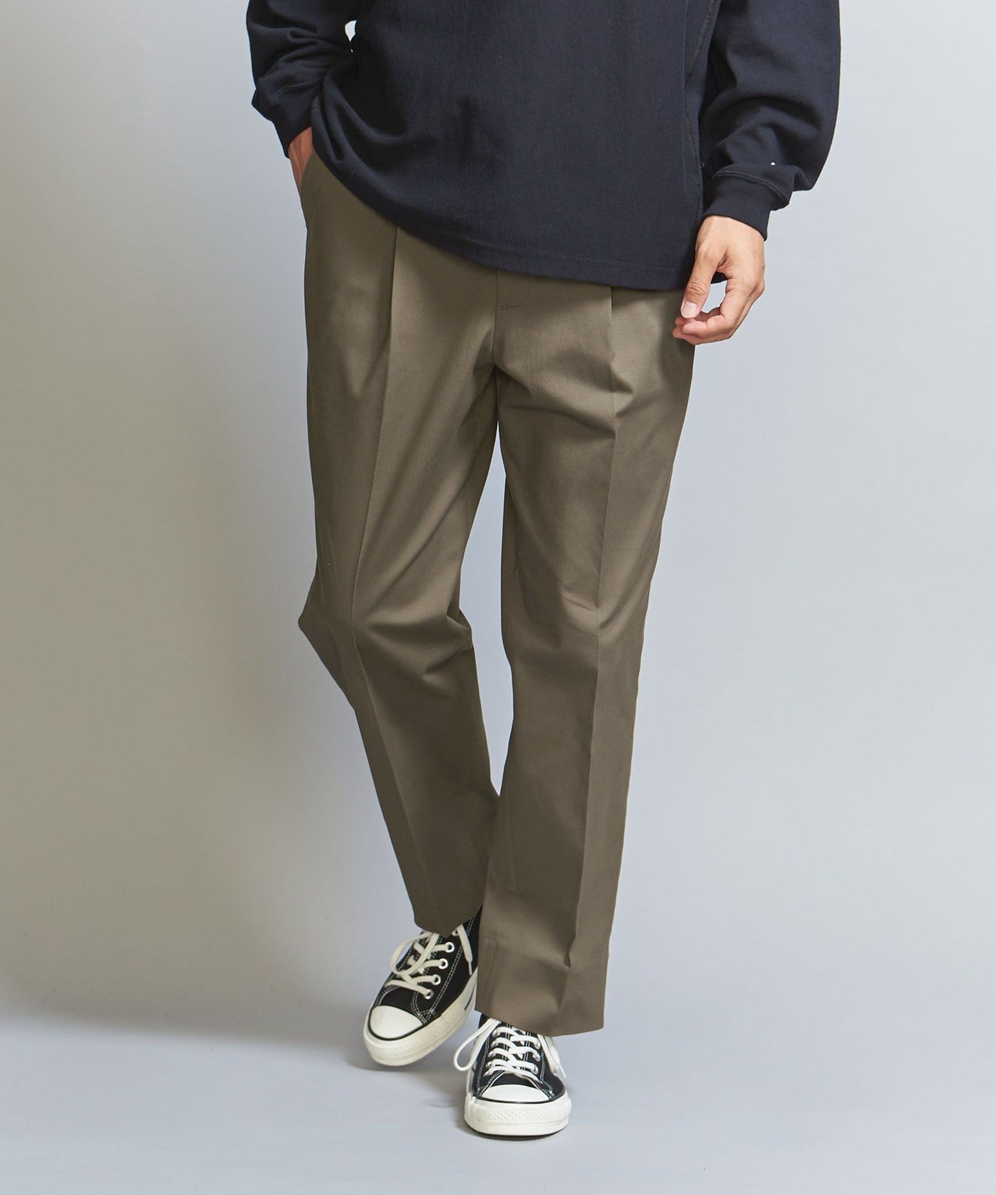 Micro PCH Chino 1-pleat Tapered PANTS -Hand washable-