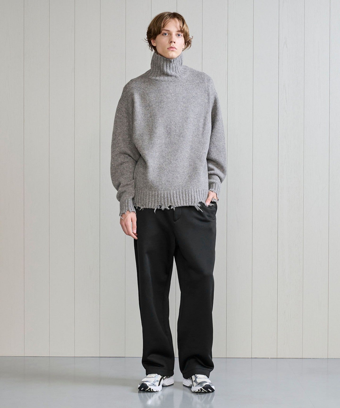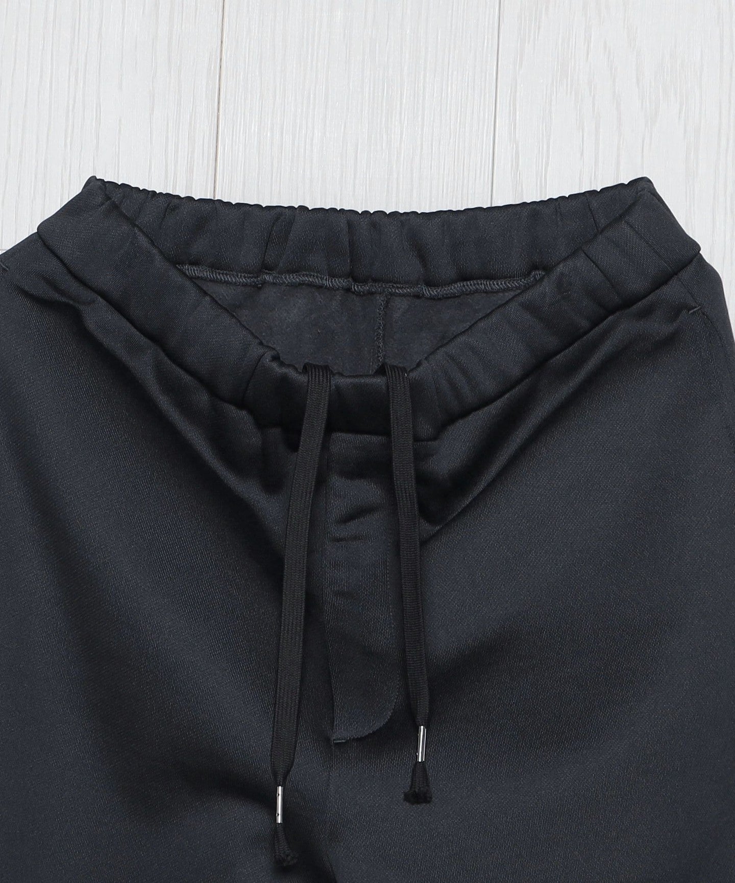 These sweatpants feature brightly textured nylon on the outside and brushed cotton on the inside. Unlined, the smooth, brushed cotton feels great against the skin, making them a comfortable item. The side seams have a slight outward curve, creating a slightly tapered silhouette that appears almost straight when worn. The waist has an easy spindle design. These pants offer a relaxed feel, making them a smart addition to any casual autumn/winter style.
